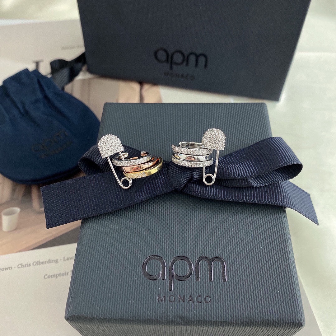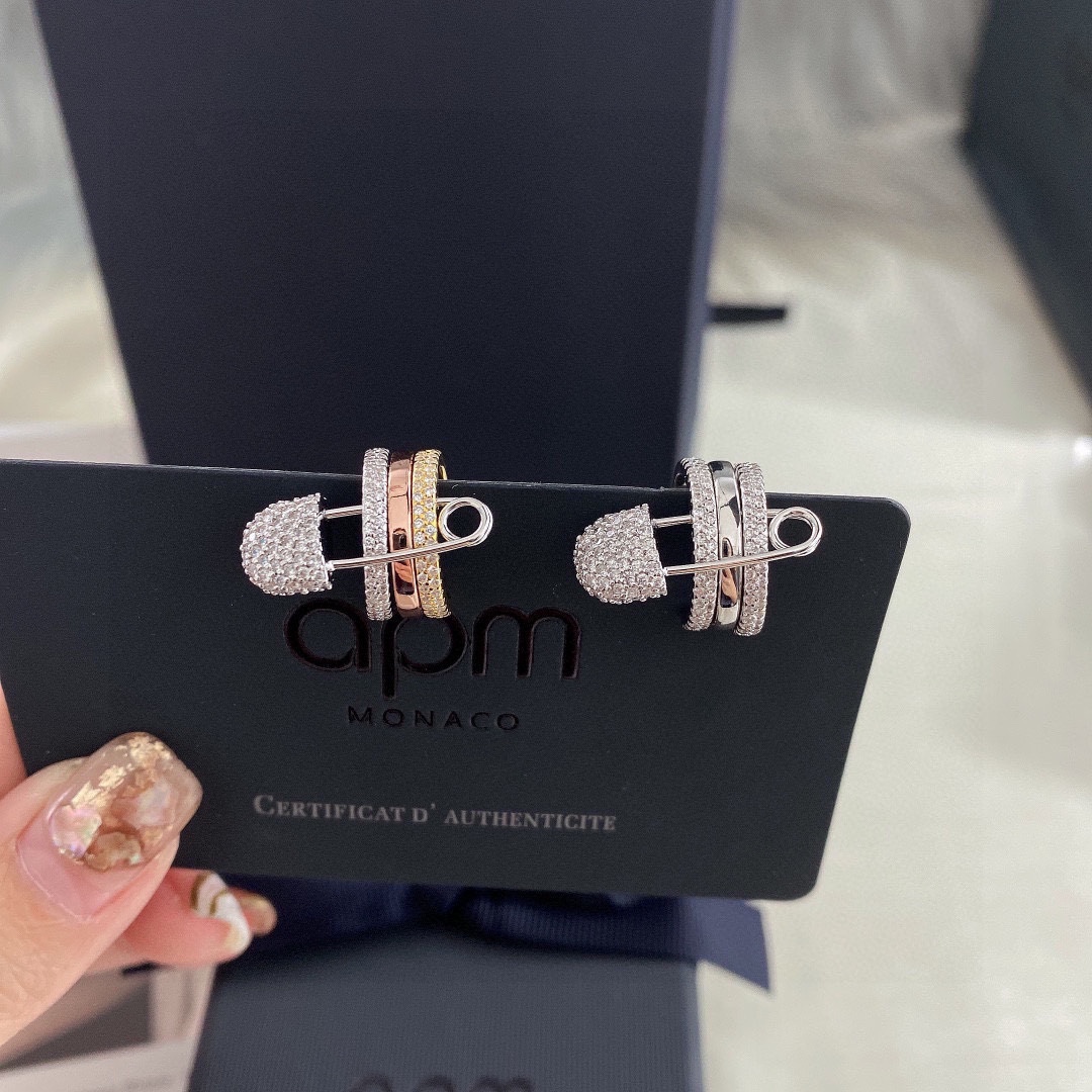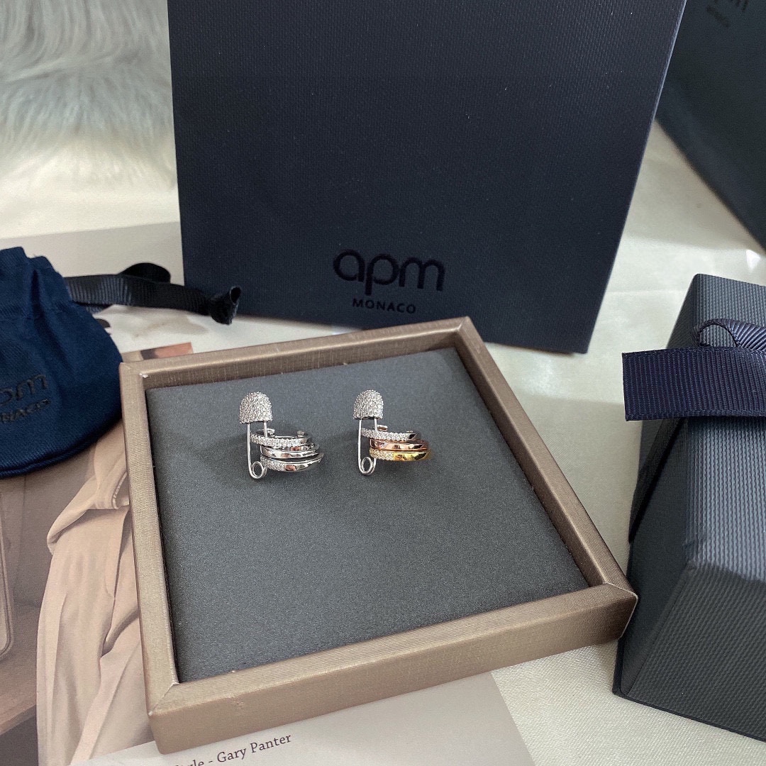 Apm monaco單只白鑽別針耳夾!真的太好看了!!!三個小圈疊在一起也太美了吧,別針設計很精緻,不誇張,但也能體現出自己獨特的一面。