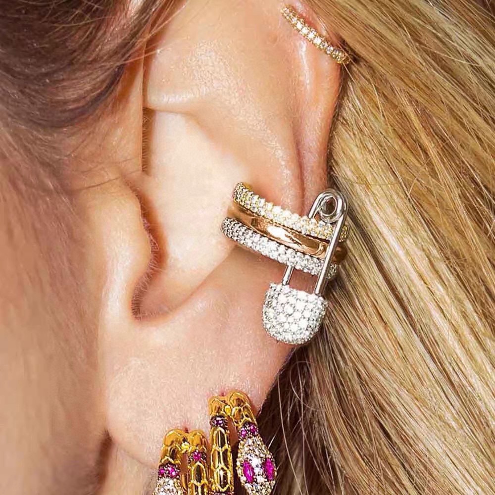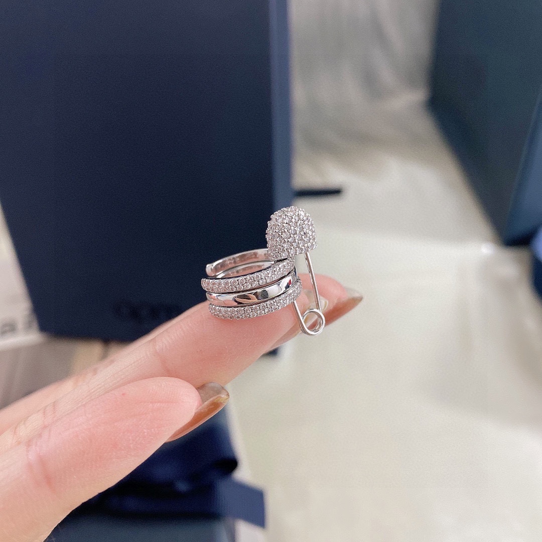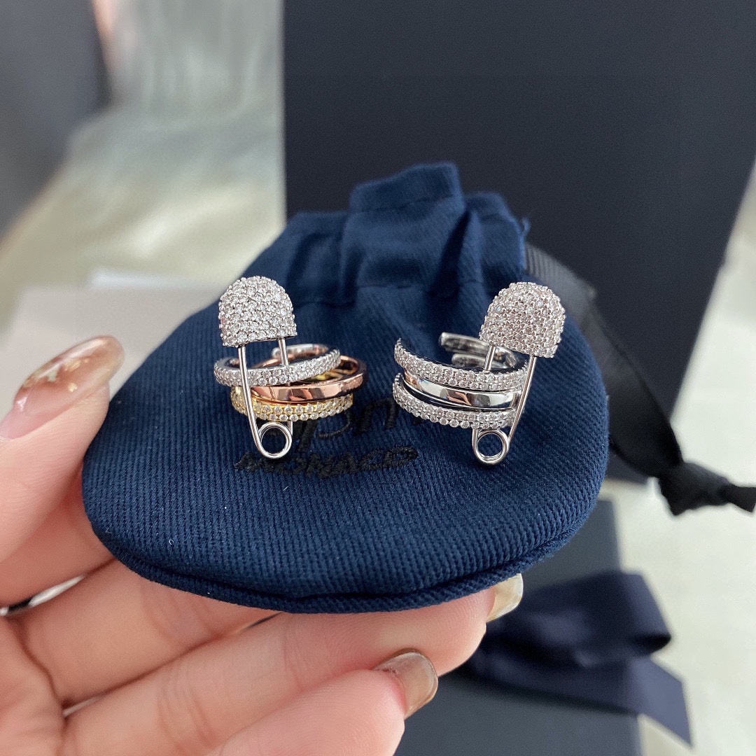 Apm monaco單只白鑽別針耳夾!真的太好看了!!!三個小圈疊在一起也太美了吧,別針設計很精緻,不誇張,但也能體現出自己獨特的一面。