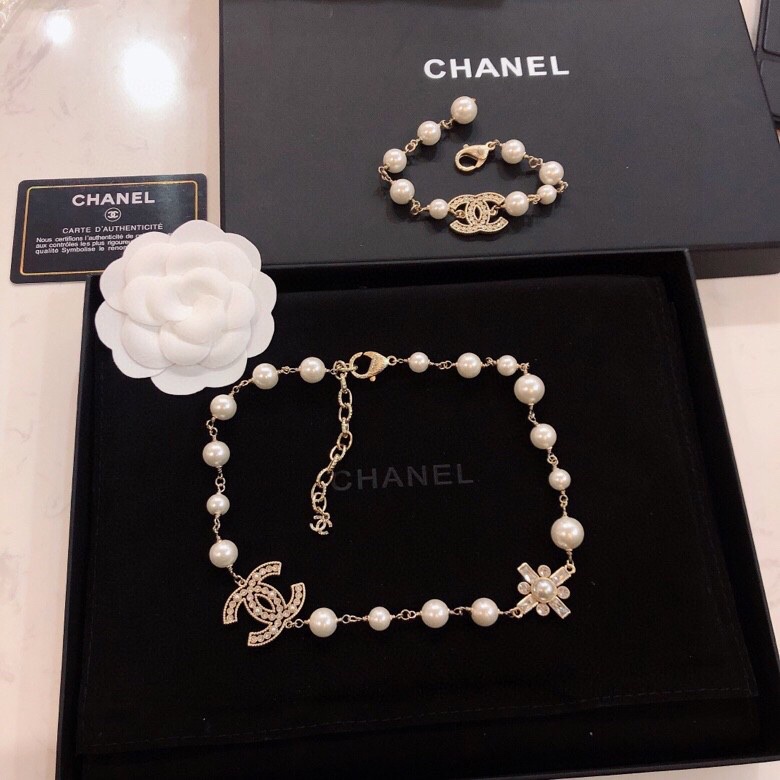 CH*NEL 小香 高顏值chanel chocker 新款香奈兒珍珠頸鏈。手鏈珍珠給人留下一種優雅高貴的感覺 獨家正品定制 專櫃黃銅材質看得出有多可貴項鏈140、手鏈