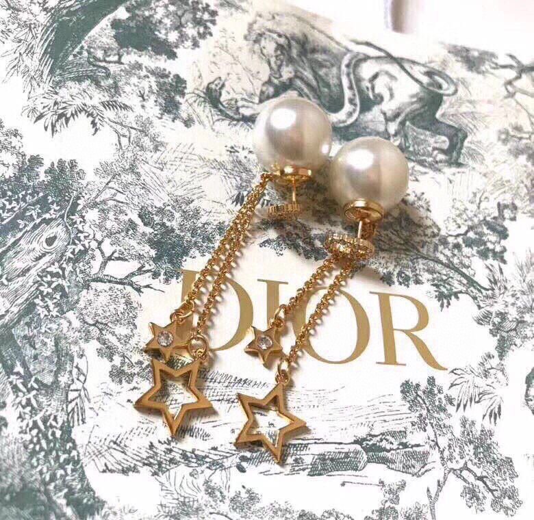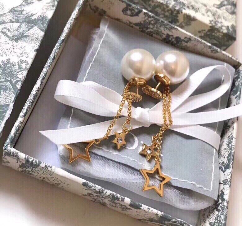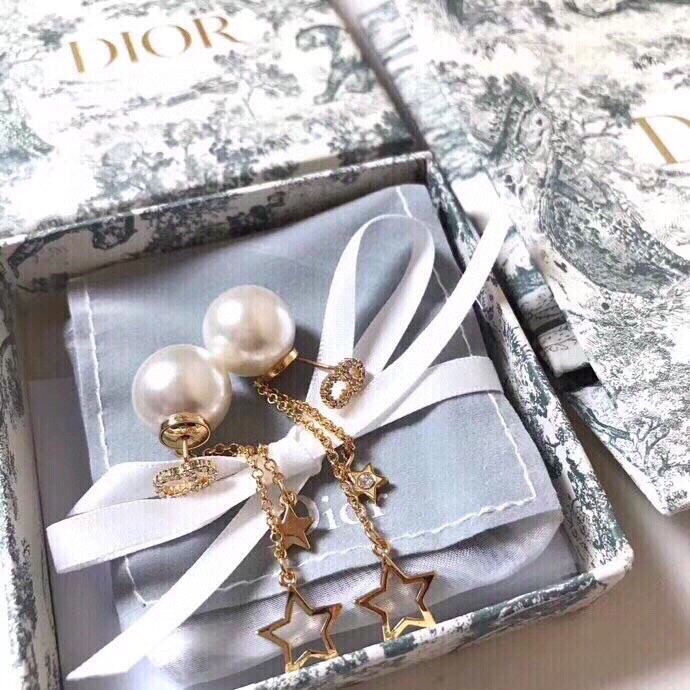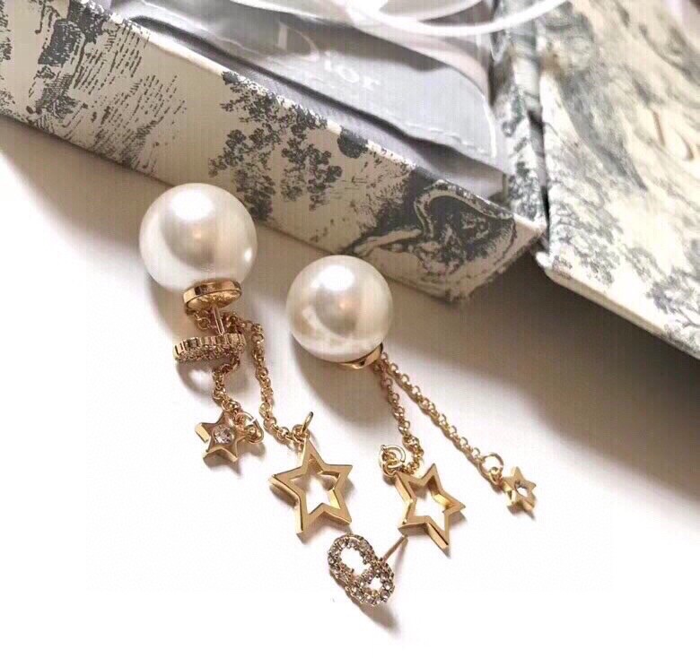 迪奧Dior 兩用款 cd 珍珠 五角星 流蘇 耳釘 耳環 以充滿樂趣的方式重新演繹品牌標誌 在珍珠邊緣點綴流蘇、金色珠子 耳間穿梭幾何美感優雅大方中帶一絲時尚小心機