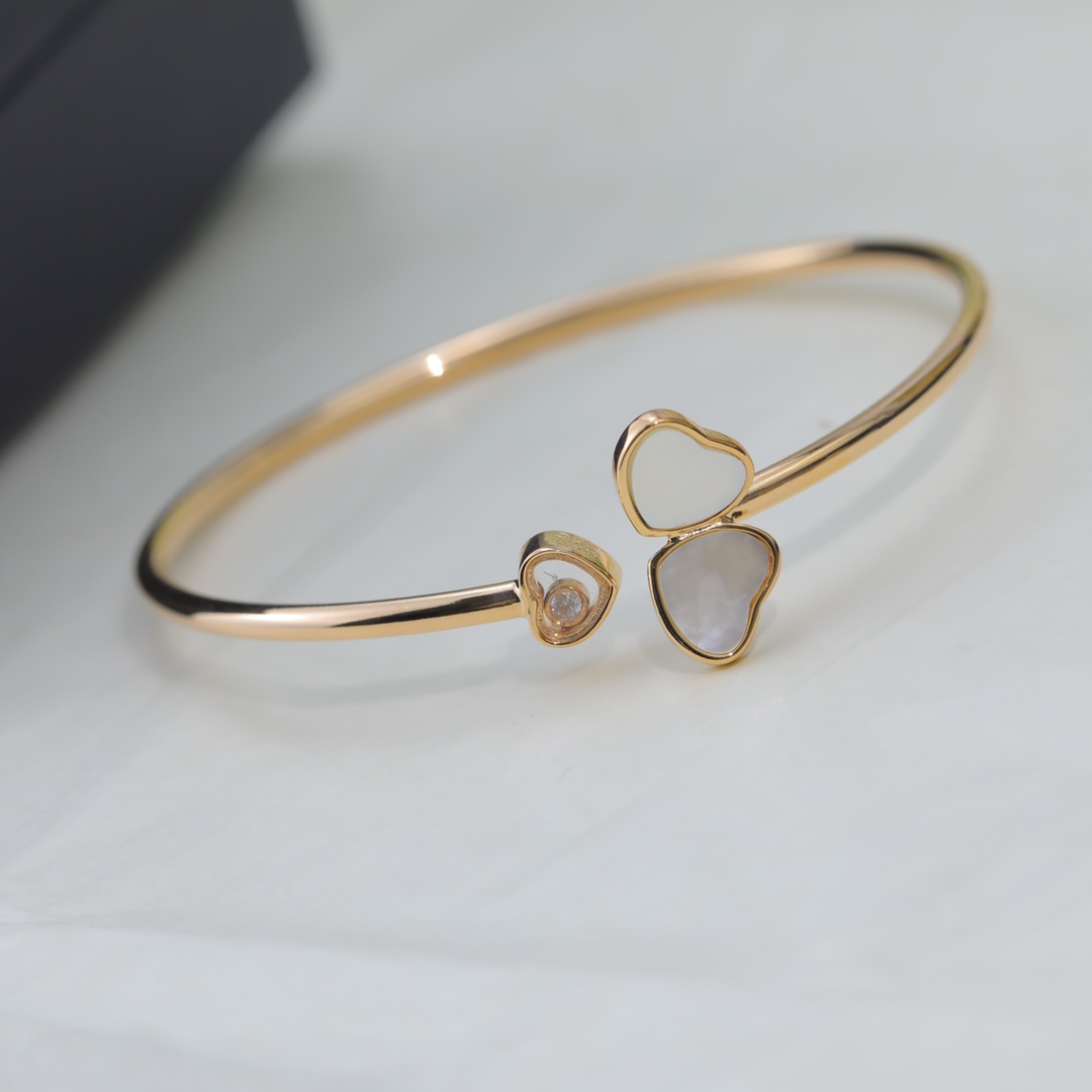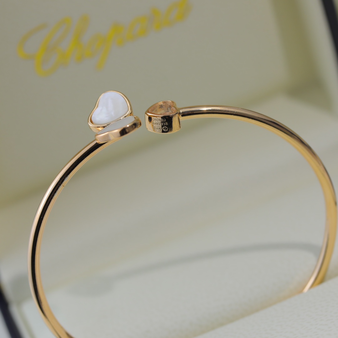 蕭邦 Chopard 蕭邦手鐲 蕭邦的幸運與品牌最具標誌性的靈動鑽石完美融合,亞金材質。18k玫瑰金 帶logo 蕭邦愛心手鐲