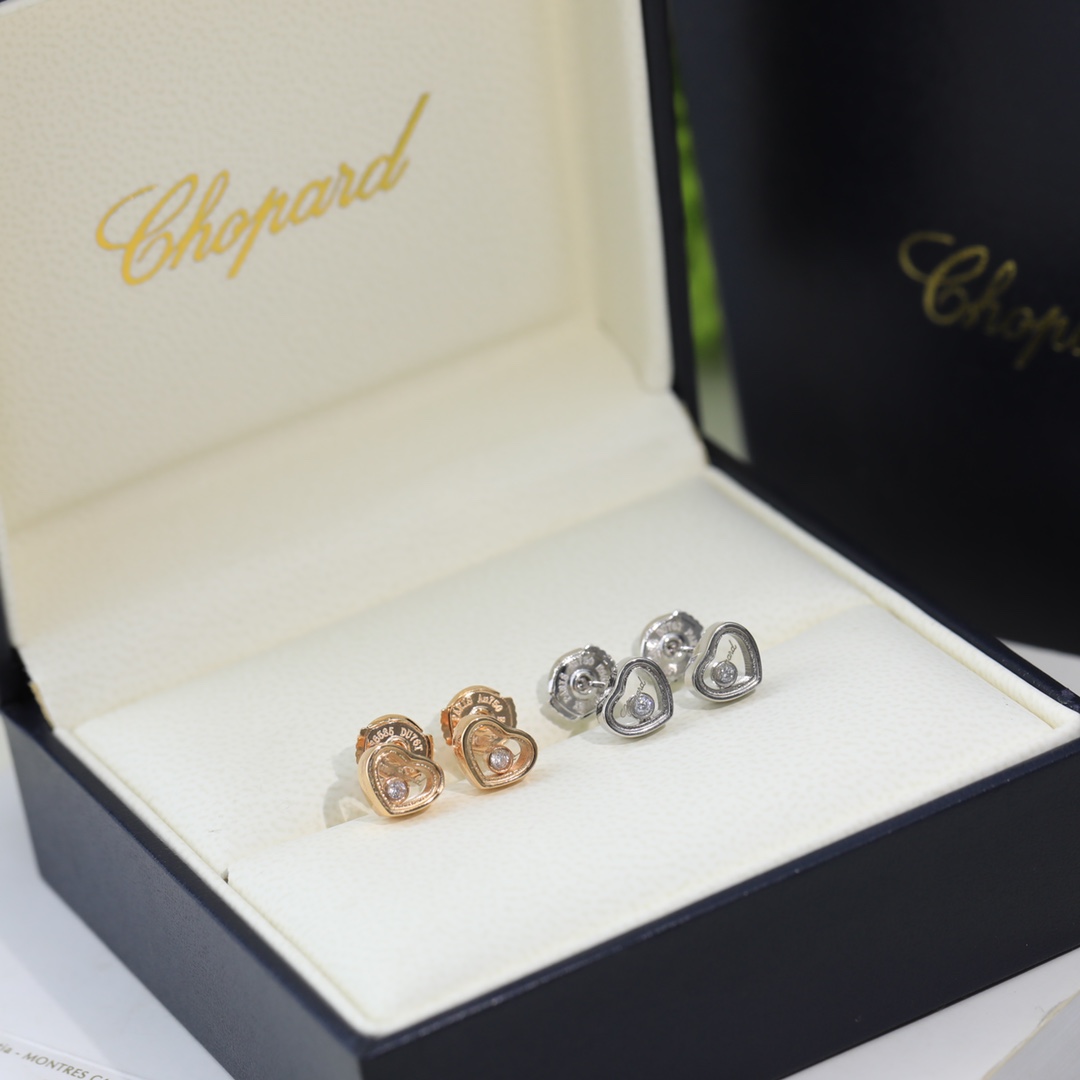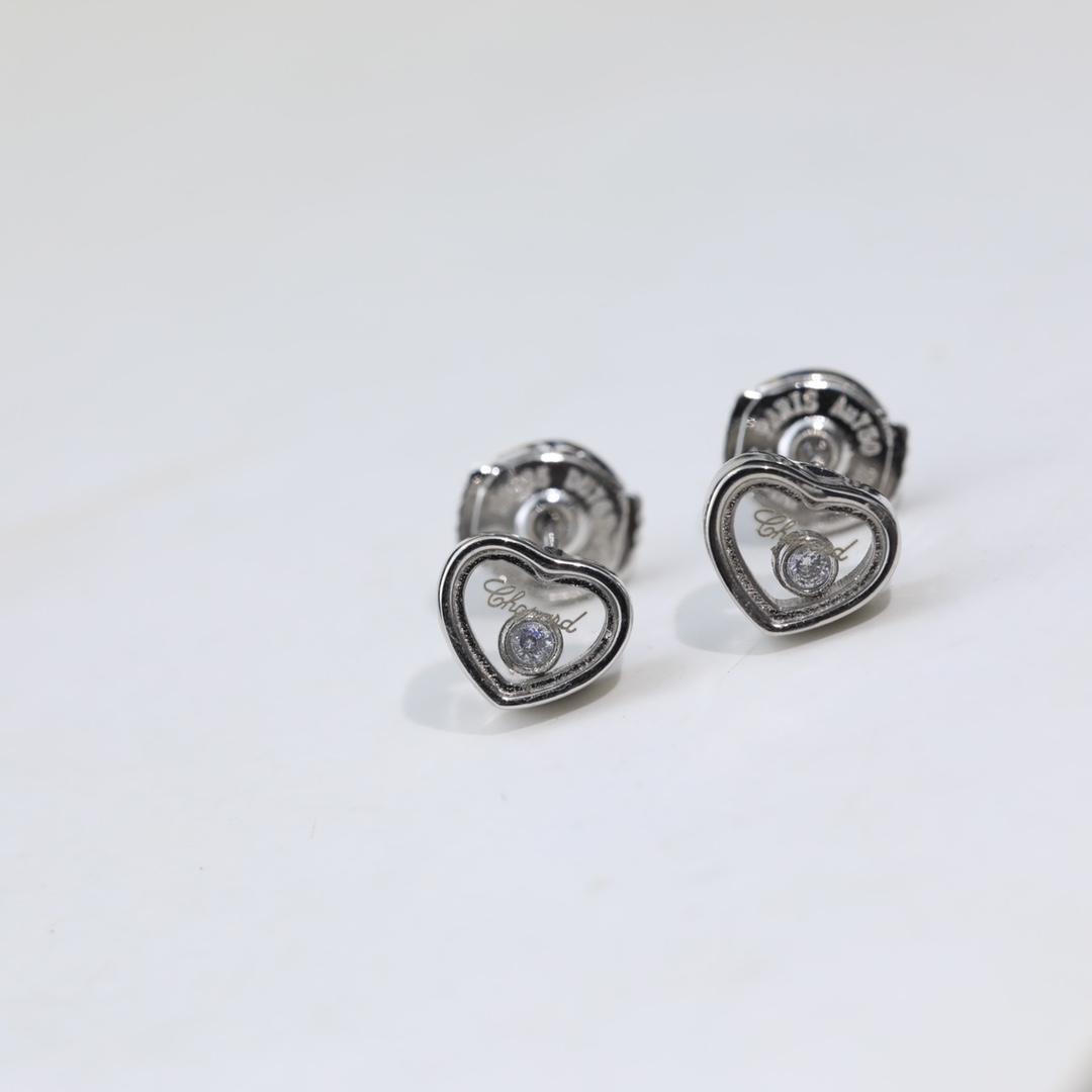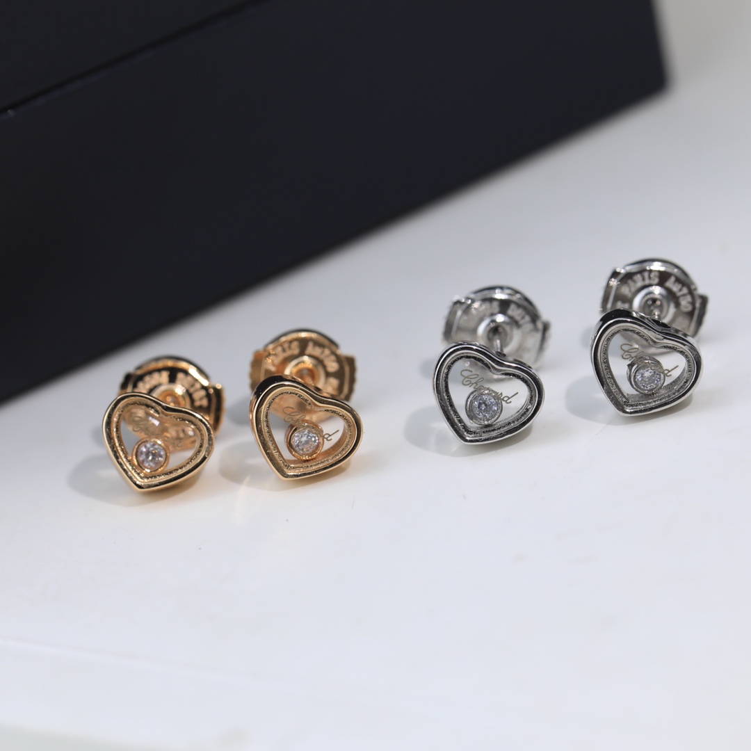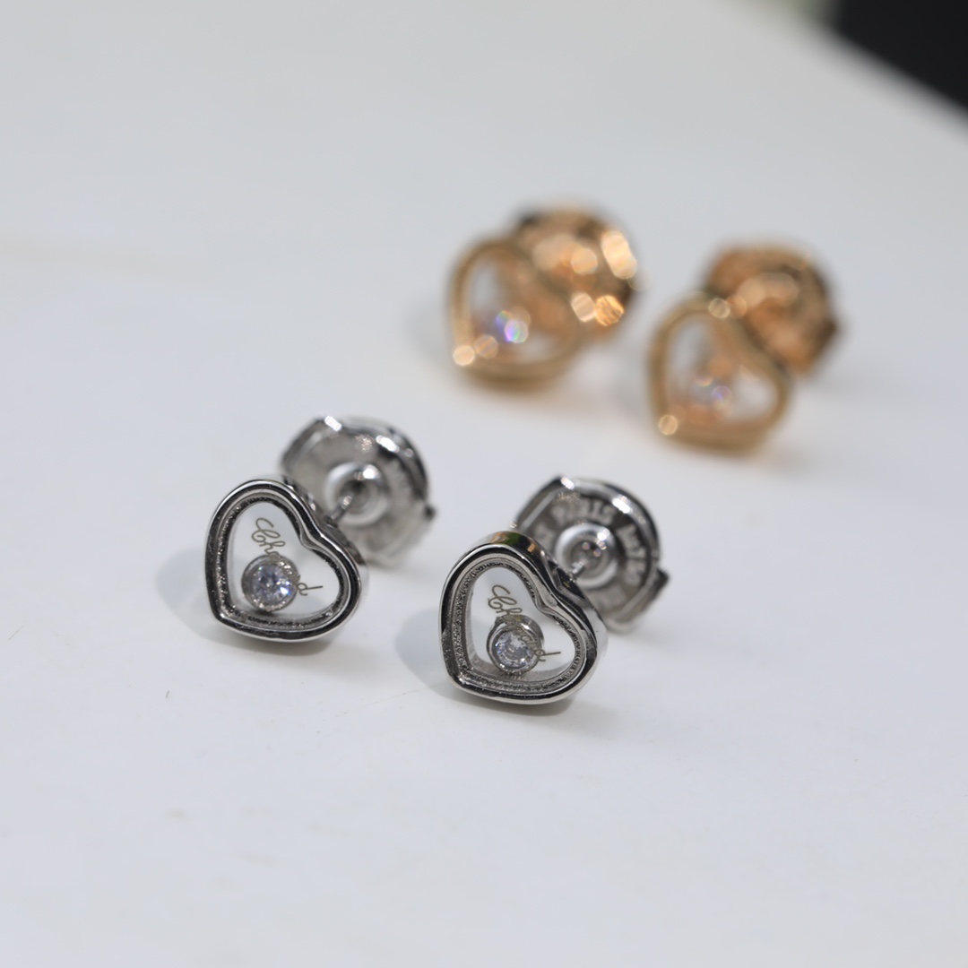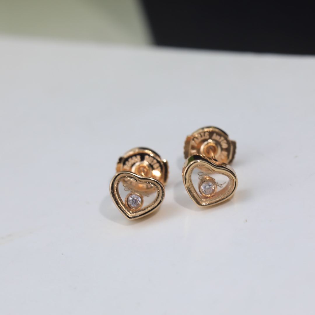 蕭邦 Chopard 高版本 蕭邦耳釘 鑽在玻璃裏面將蕭邦的幸運與品牌最具標誌性的靈動鑽石完美融合,亞金材質+銀針防過敏18k玫瑰金 白金。愛心耳釘 玻璃上帶有logo 。