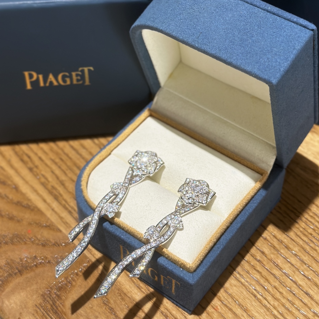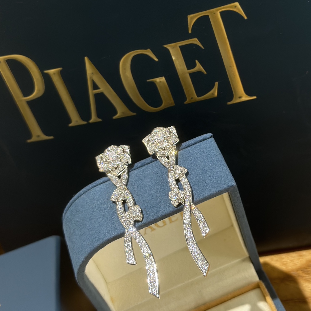 C388 PIAGET 23C新款 玫瑰花 流蘇 耳環 高端奢華自帶氣質 進口鋯鑽微鑲哦!!魅惑的山茶花 採用進口V金材質電鍍18K金鑲嵌~防過敏,氣質優雅~鉑金 耳環