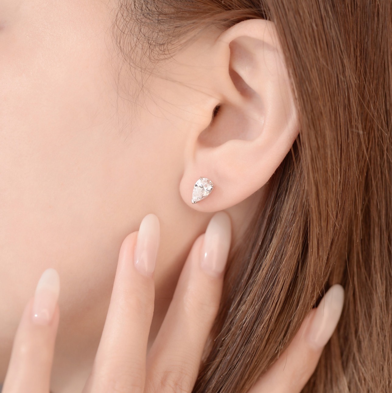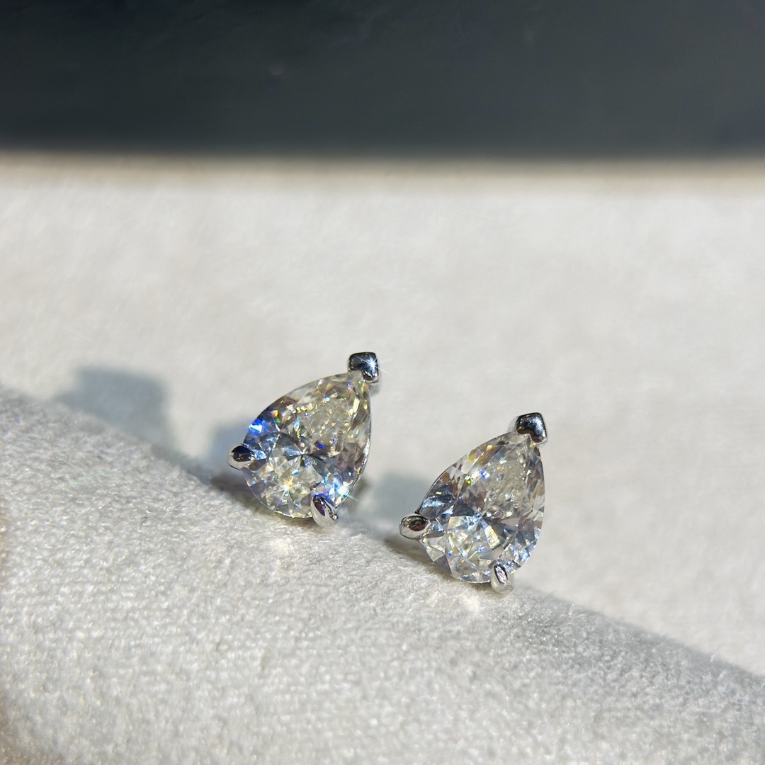 C389 【仿真鑽】GRAFF 0.5CT 水滴 耳釘 通體925純銀 用鑽石的切割工藝來切割人工鑽,完全就是媲美鑽石啊! 50分水滴鑽 純銀耳釘