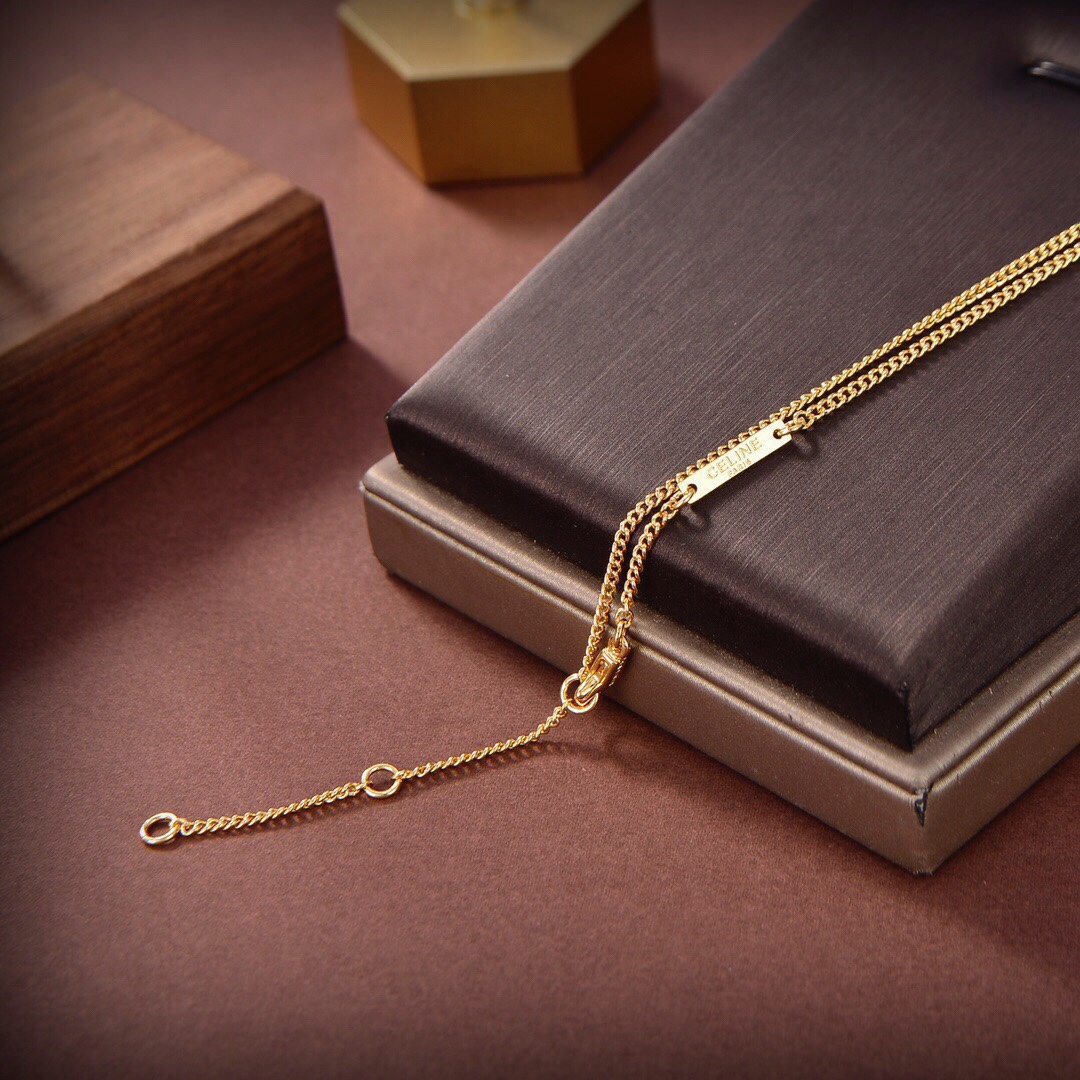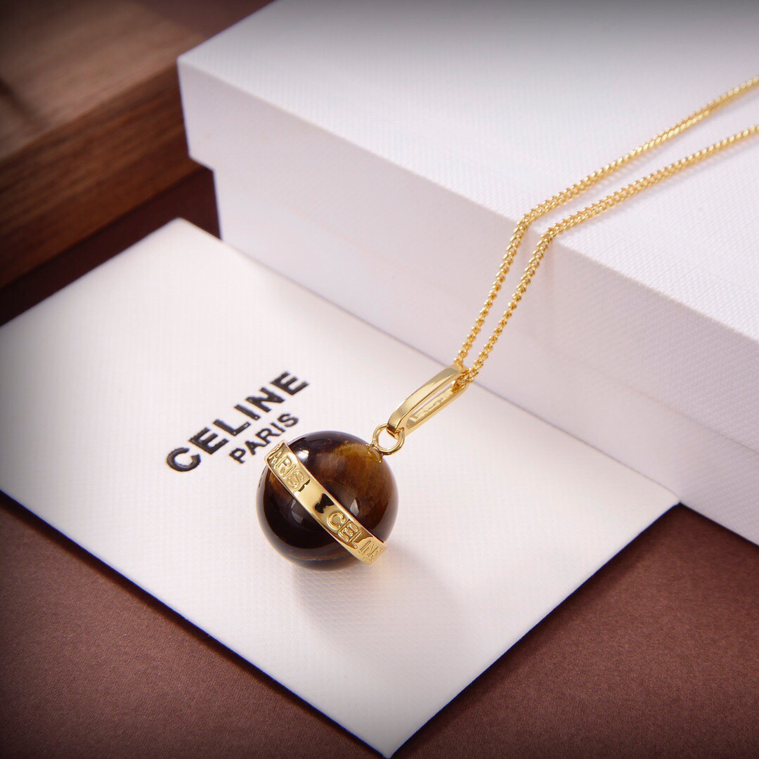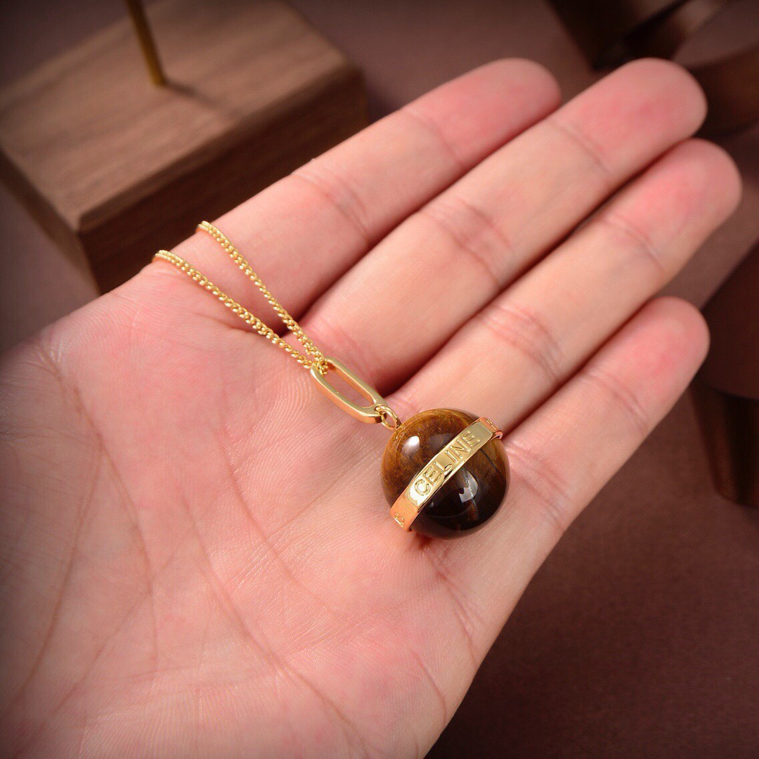 Celine新款藝術感十足虎眼石項鏈 黃銅材質雕刻圖案!超炸Chic感 ,簡潔百搭、文藝個性,帶給你時髦體驗 牆裂推薦!