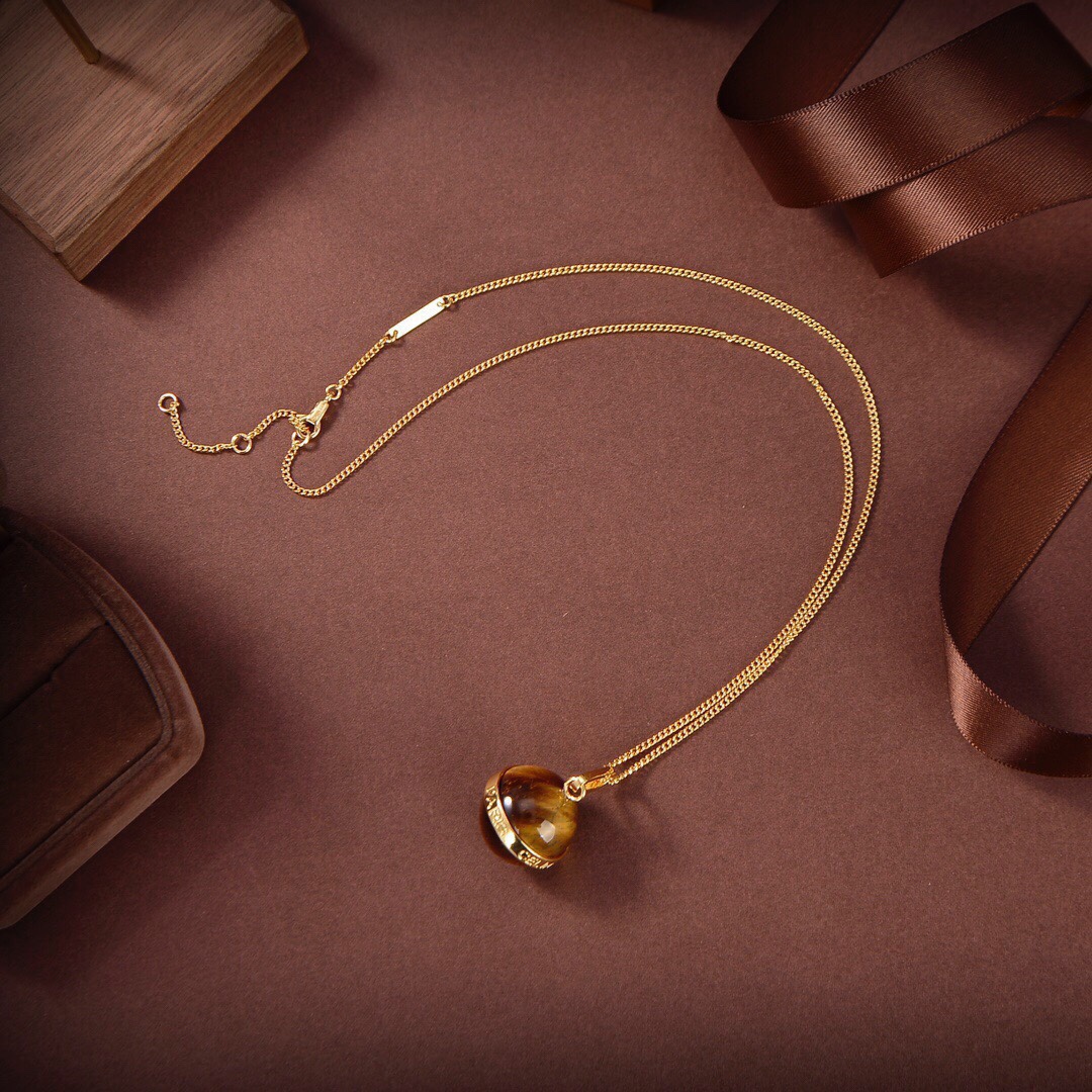 Celine新款藝術感十足虎眼石項鏈
