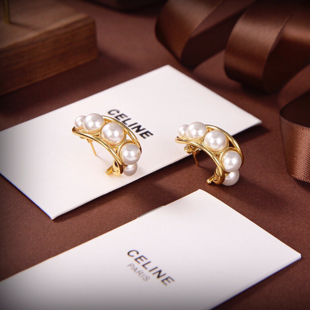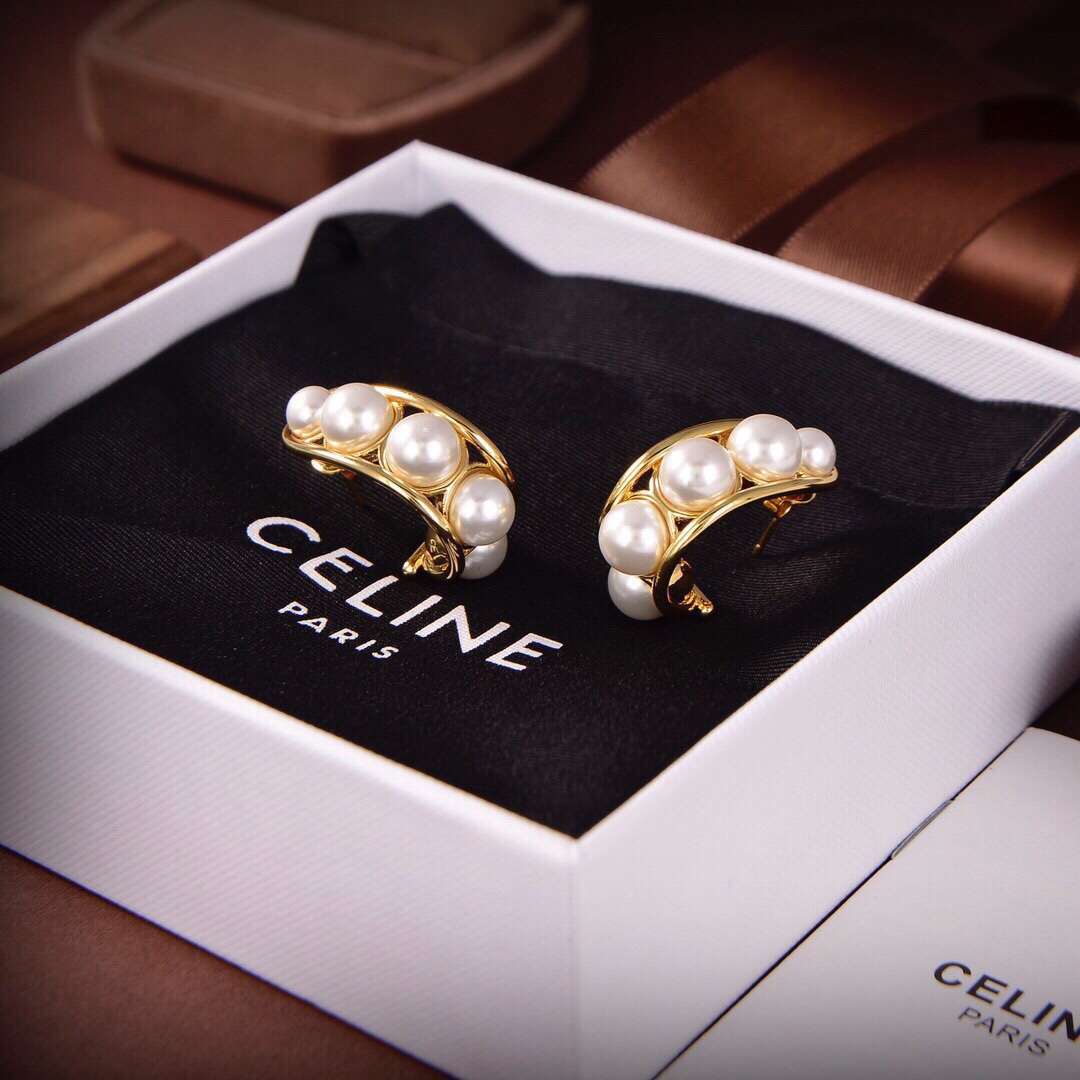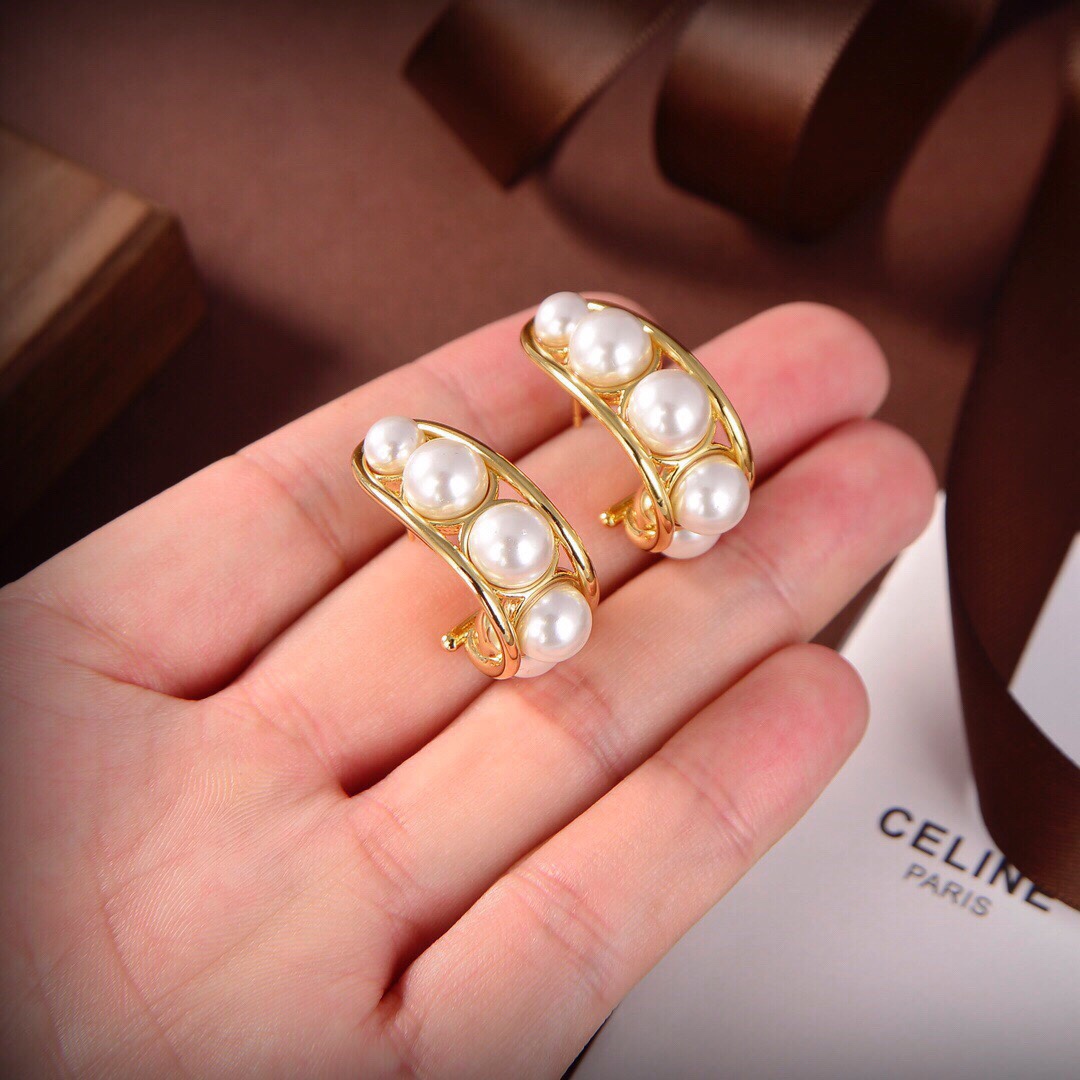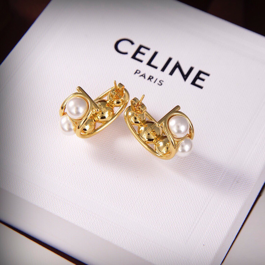 Celine 新款金色珍珠耳環