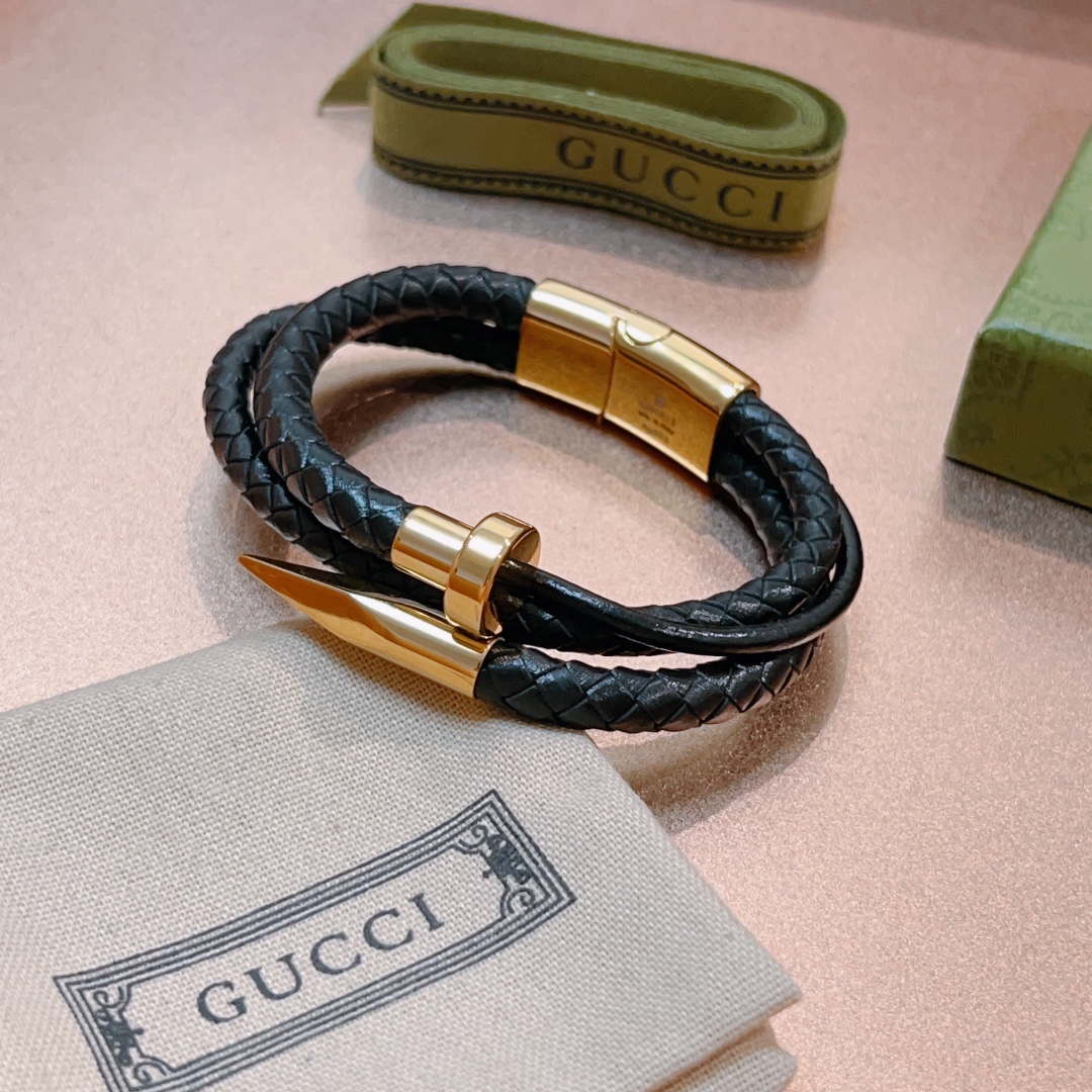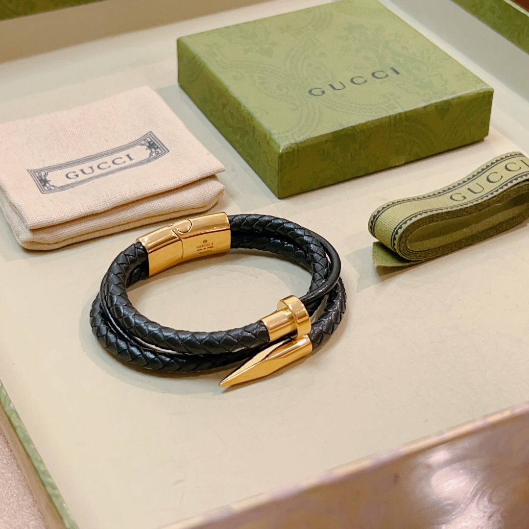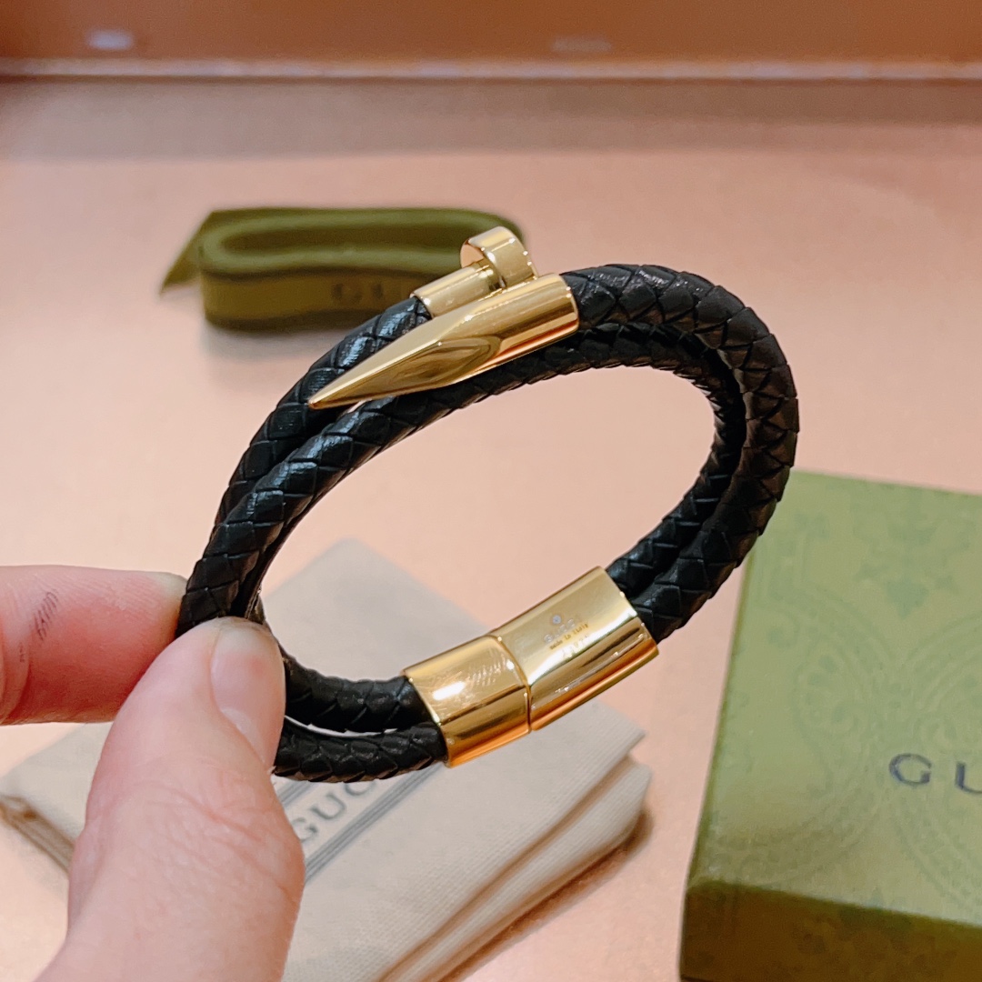 古馳手繩手環最新款釘子純手工頭層牛皮材質檔次更高明星同款Anger Forest系列雙G經典款系列復古銀手鏈