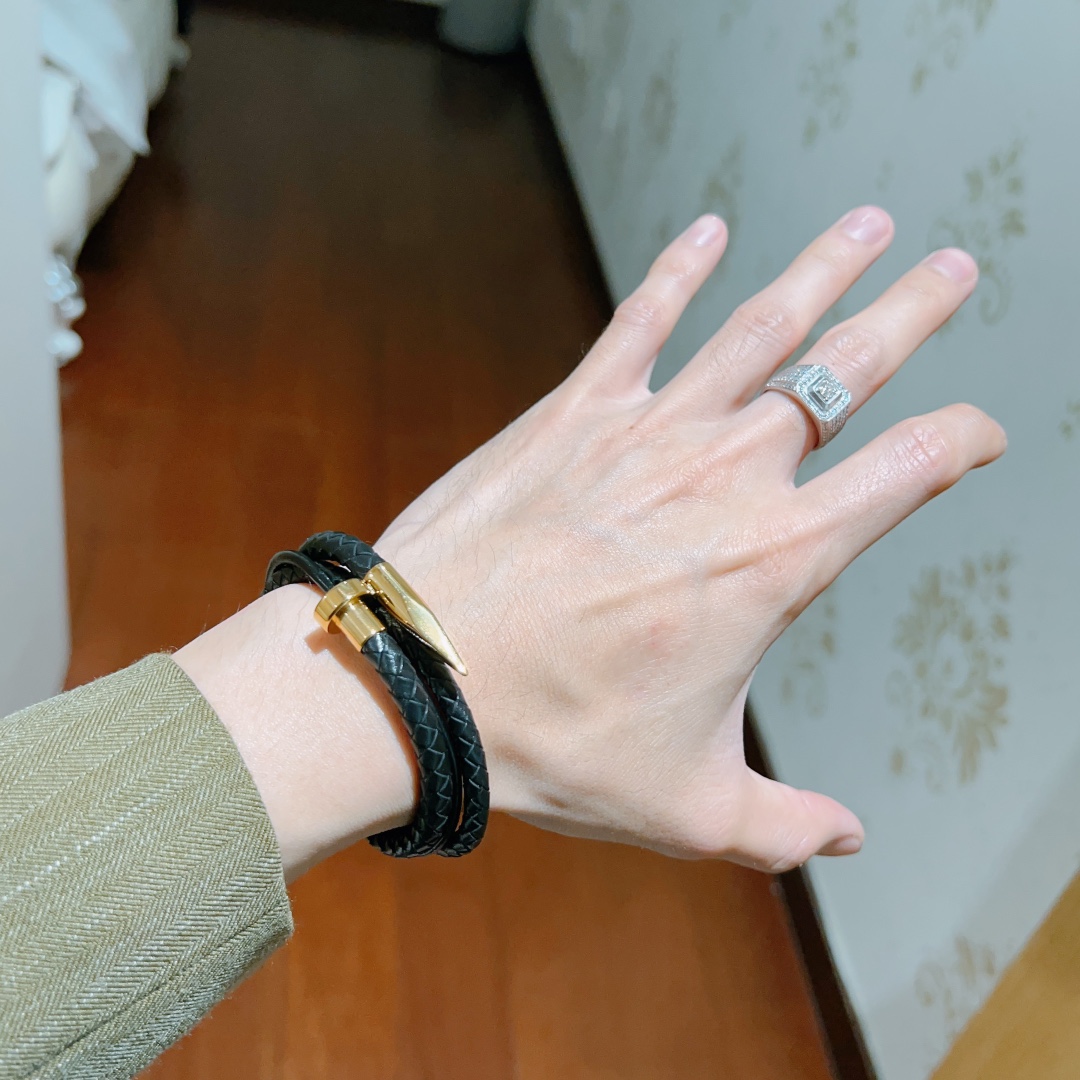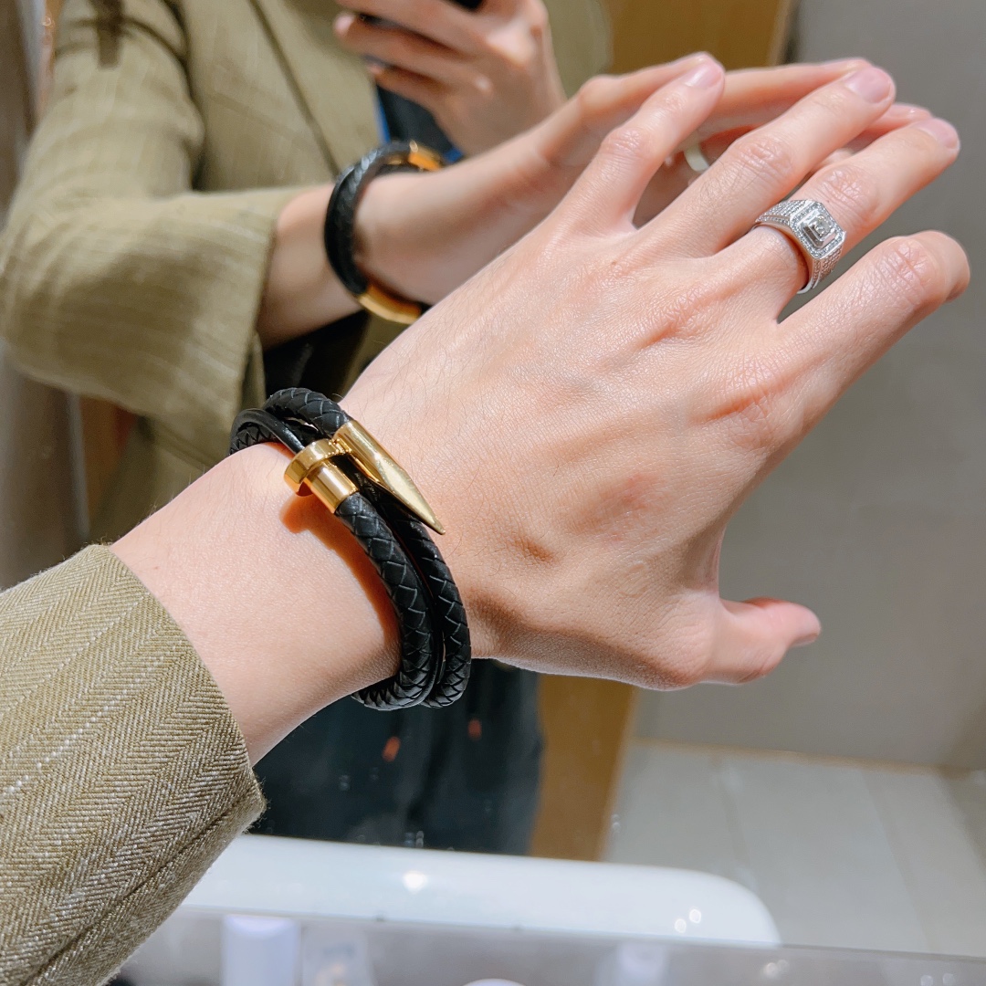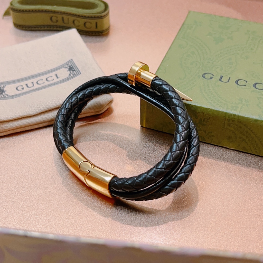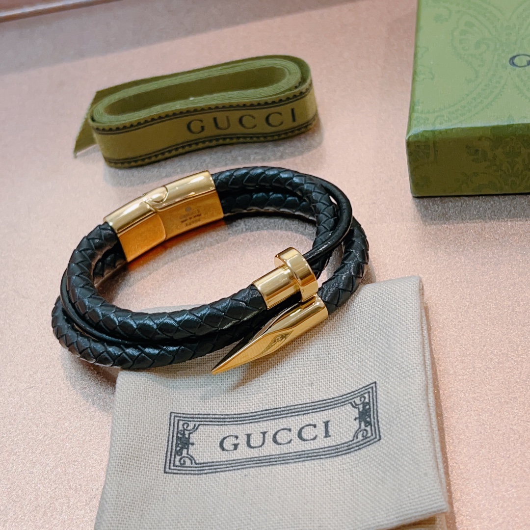 古馳手繩手環最新款釘子純手工頭層牛皮材質檔次更高明星同款Anger Forest系列雙G經典款系列復古銀手鏈