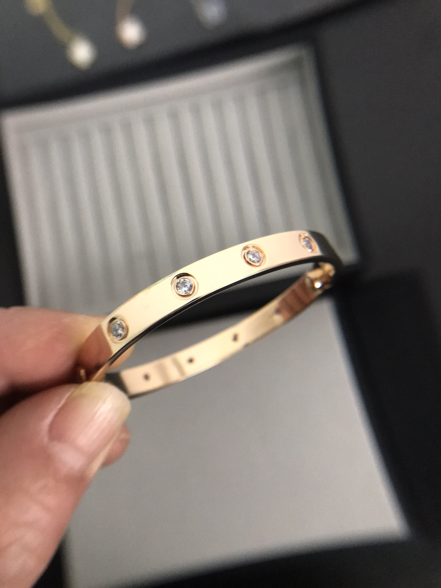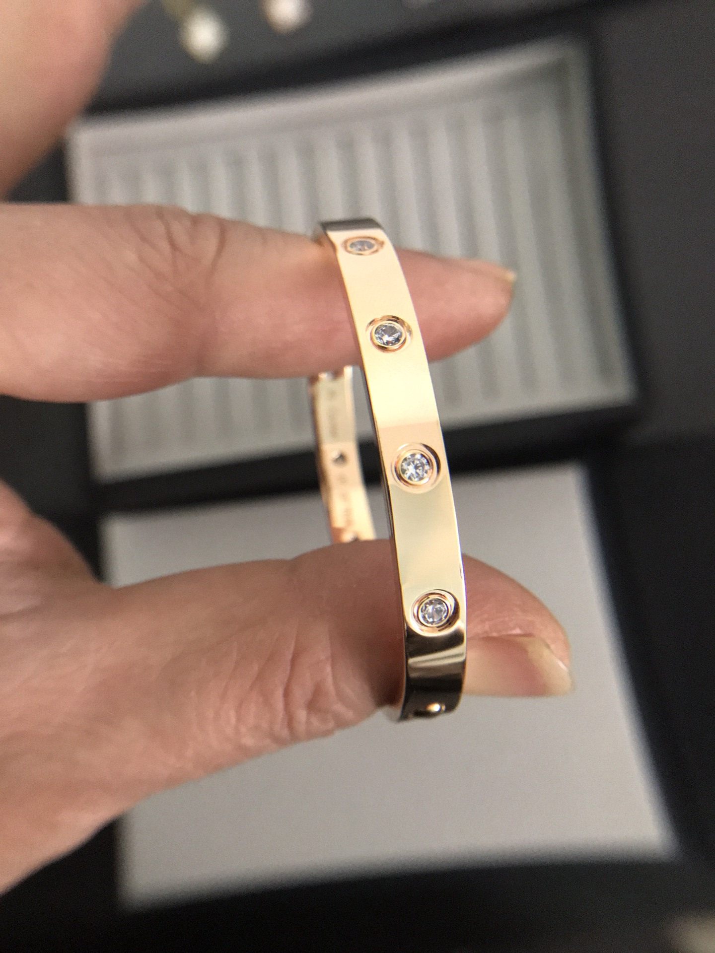 寬版10鑽手鐲[福]沒有正品不開發[強][強][強]我們都是買回來原版做貨的每一個細節都是ZP一致[摳鼻]我這個人有強迫症[捂臉]做不到正品一樣 我都不會出貨的[尷尬]看細節 對比一下官網 1六軸機器精雕鑽位 2純手工鑲嵌6A亮度仿真鑽 3背面方方正正六角4螺絲帶有弧度 凸起且不會高於平面 5和正品一樣顏色沒有色差 每一道工序嚴格把控 每一位師傅都是做了10多年老師傅 每一件珠寶都是老師傅作品 佩戴是請小心呵護 尺寸16—17—18—19—20