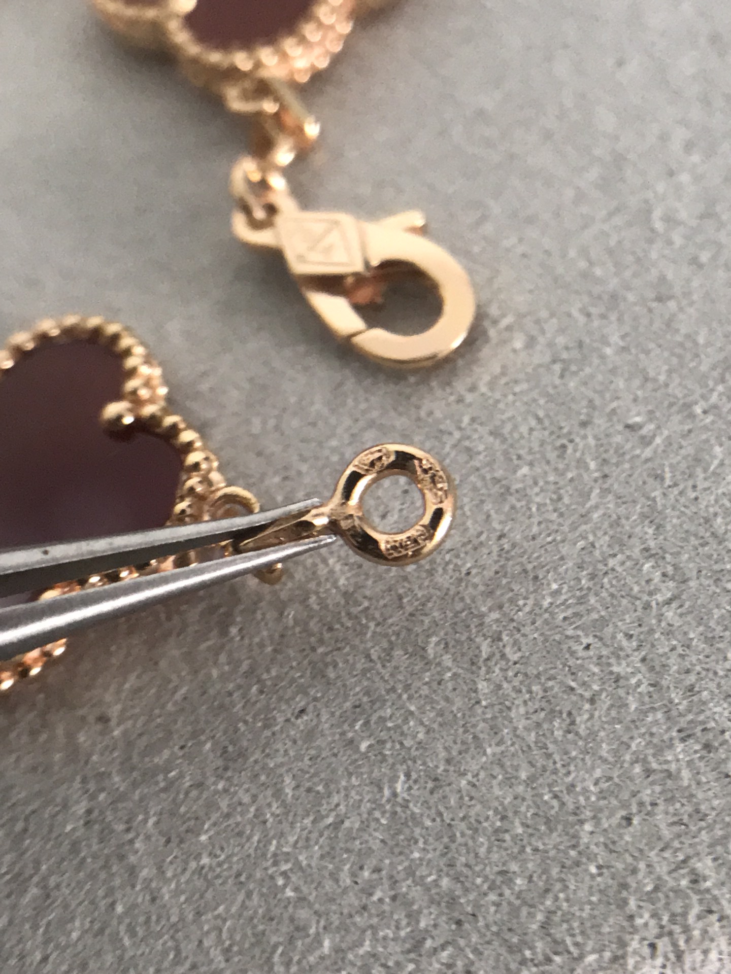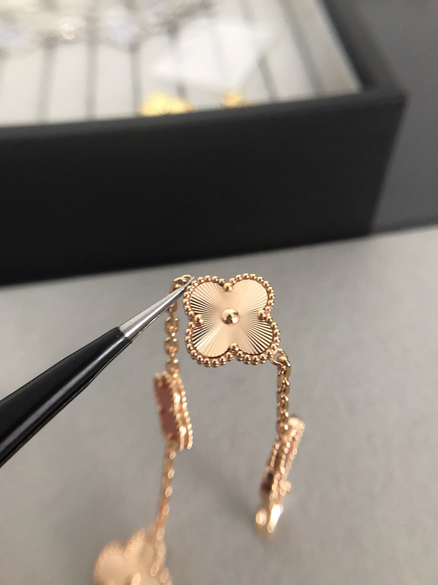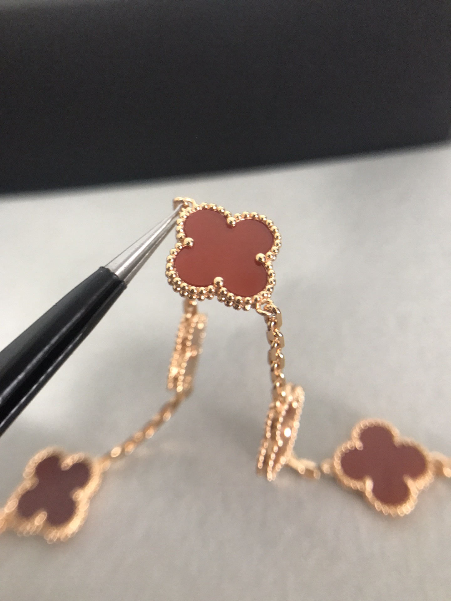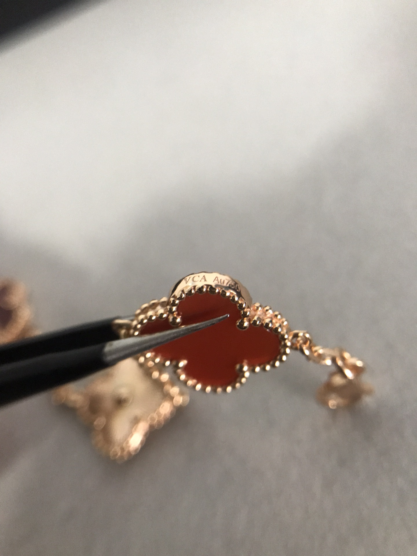 四葉草五花紅玉髓間鐳射手鏈[慶祝]沒有正版不開模[強][強][強]完全按照一比一複刻 按照珠寶工藝流程嚴格出貨歡迎對比你自己的正版和閨蜜的正版[得意][得意][得意] 1扣子是CNC扣別家一個扣子2塊錢我家一個扣子10多塊2鏈條是粗版對版鏈條 整個市面只有銀鏈條對版其他v金 銅 鋼 沒有對版的鏈條3貝母這一塊都是天然的貝母合成貝母便宜2塊錢 天然的幾十不等 3貝母厚度就是2mm 其他尺寸都是不對的 沒有什麼薄版 厚板 只有唯一標準 [破涕為笑]4刻字的話 扣頭有刻字 第一朵花兩邊刻字 尾鏈有防偽標 這些都是標配 5純手工鑲嵌貝母做到無縫鑲嵌 高工藝 6這款鐳射是CNC精雕線條到細 其他細節都可以對比 我就不多說啦 一款無法用言語表達它的美喜歡到最大程度的時候高貴大氣 太絕了 閉眼入吧