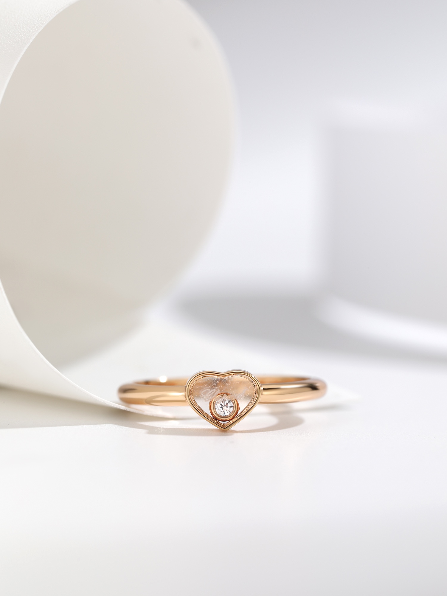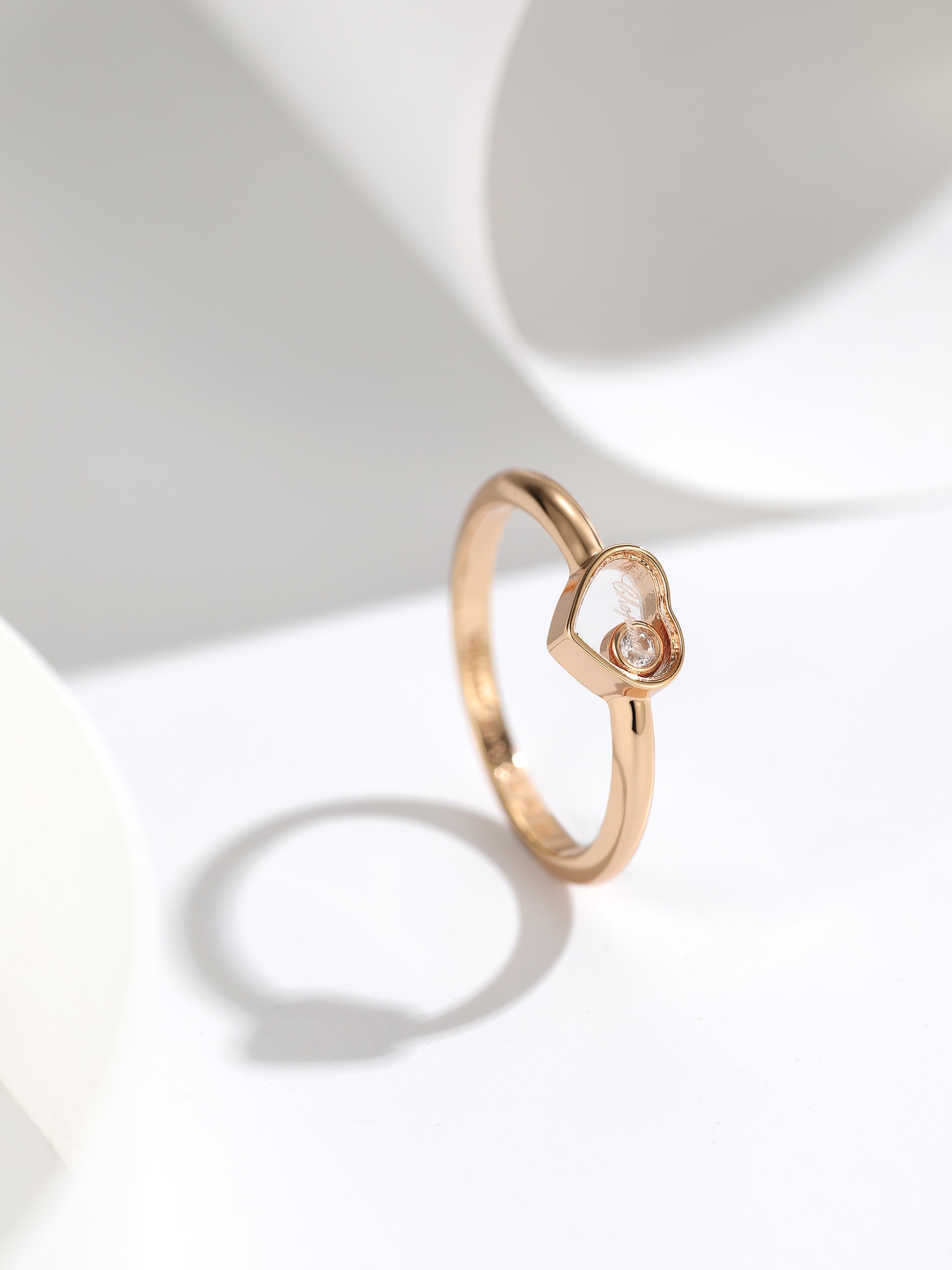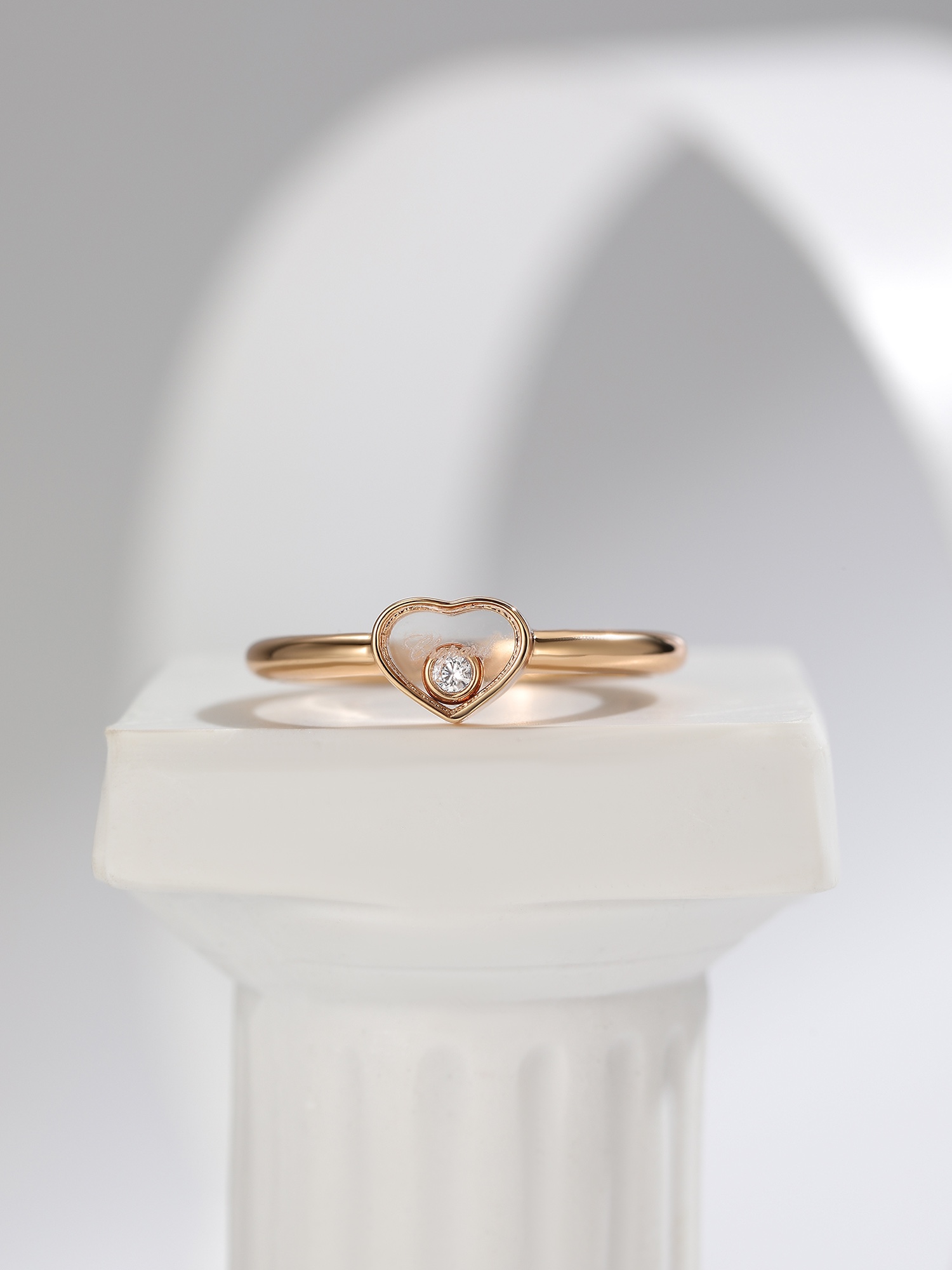 Happy Heart系列戒指設計都比較大方簡單,最喜歡蕭邦的也是在小愛心裏晃來晃去的小鑽blingbling 單圈的看起來簡單,也水超複雜的設計工藝,採用v金製作,超厚電鍍