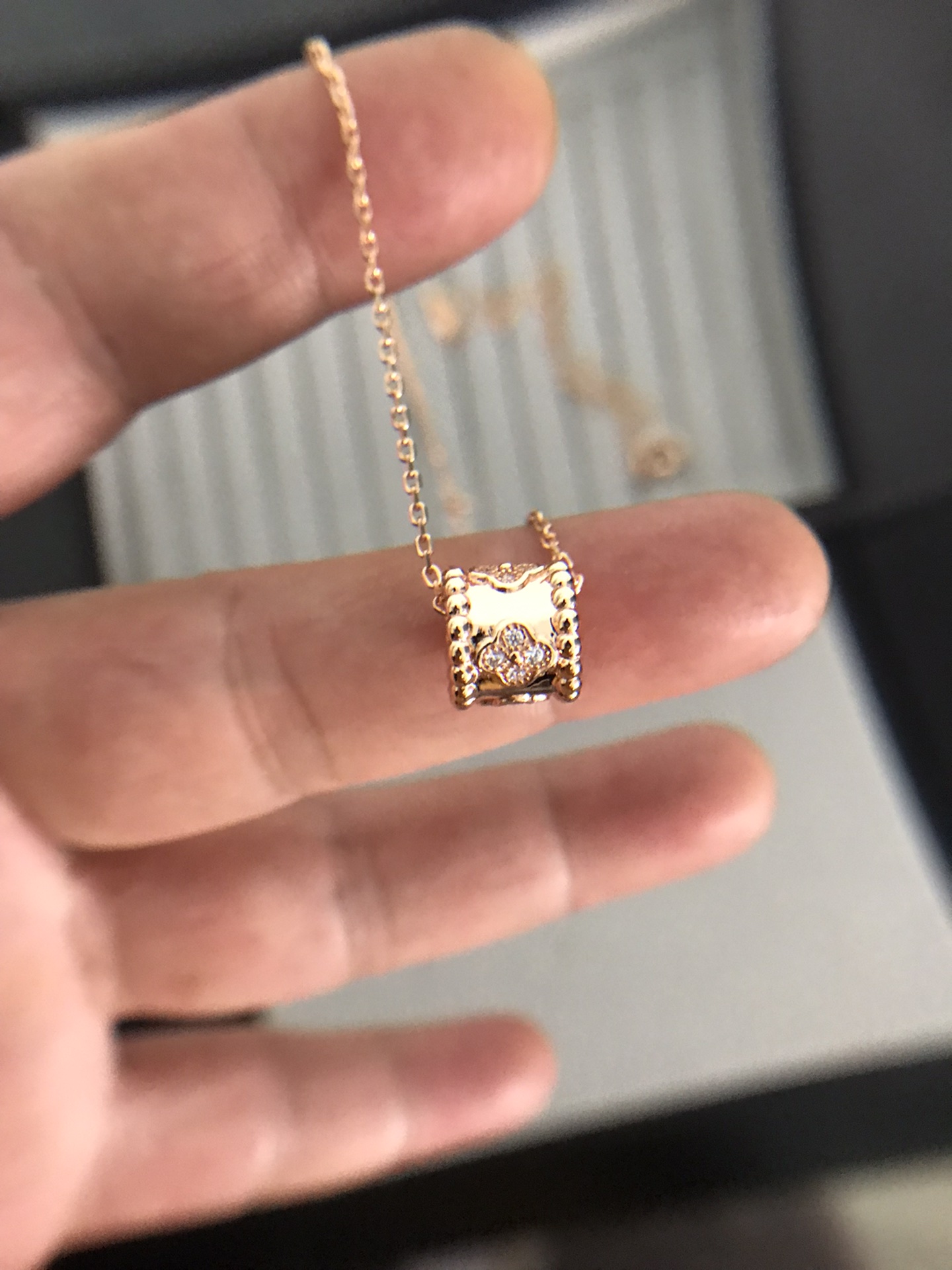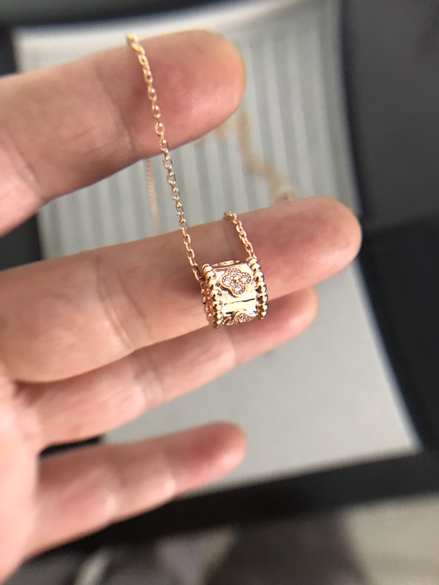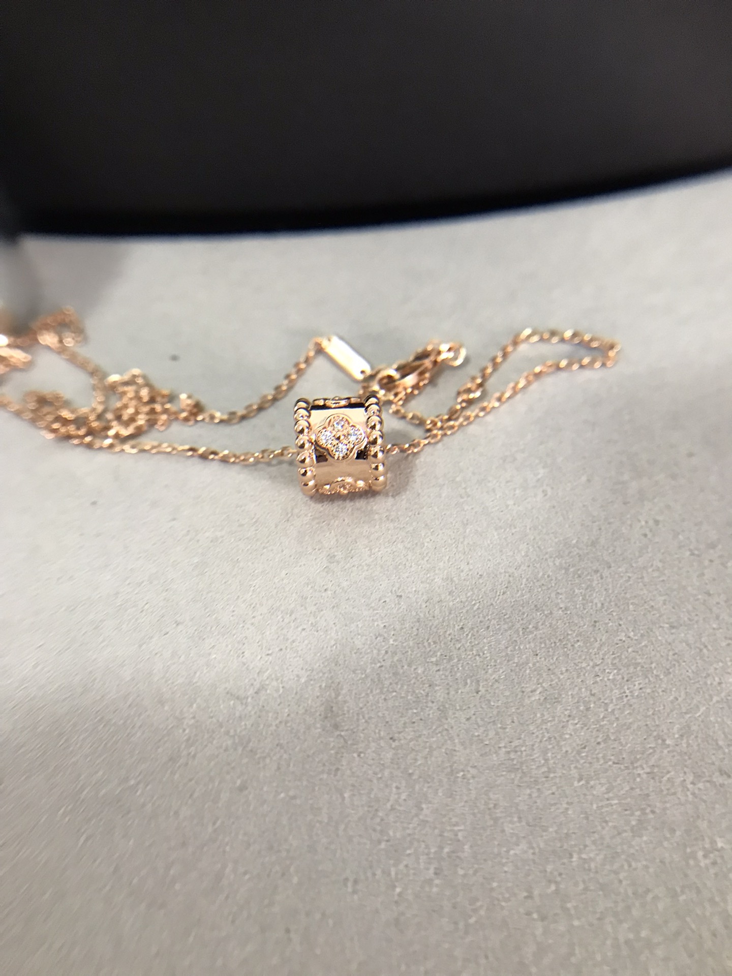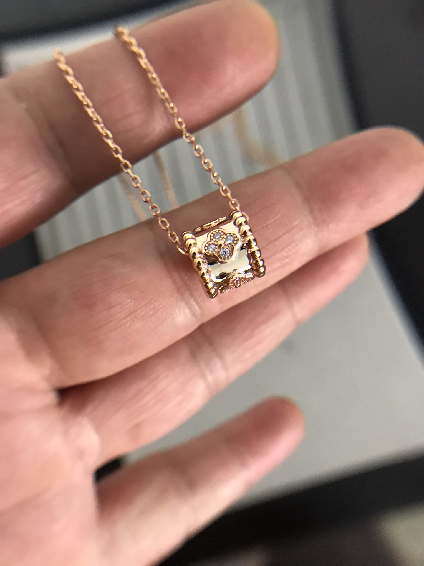 萬花筒項鏈 我們秉承沒有正版 不做貨 要做就做頂版萬花筒項鏈和四葉草有異曲同工之處 但是吊墜是不同的四葉草是固定的萬花筒是可以移動的萬花筒有五朵四葉草 每朵花都有4顆鑽 20顆鑽石 測面打磨光滑 四葉草中間圓珠飽滿立體卡扣是CNC精雕扣子字印和圖案清晰明顯每一個雕花都狠精緻 做工都是10多年老師傅工藝採用浮雕工藝 立體感十足質感超級棒戴上狠顯氣質 而且搭配衣服也是百搭寓意*——————財運滾滾來———————————
