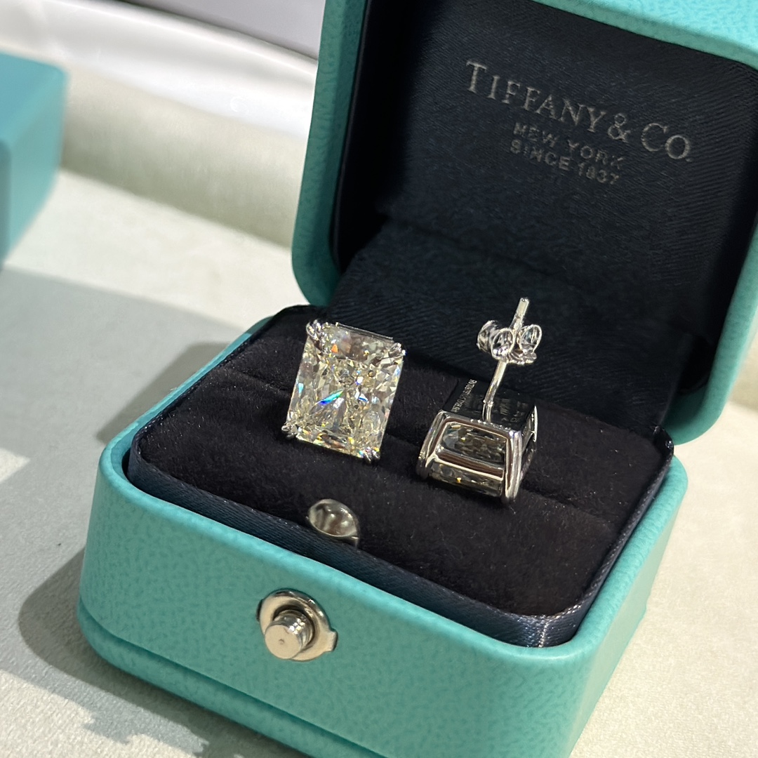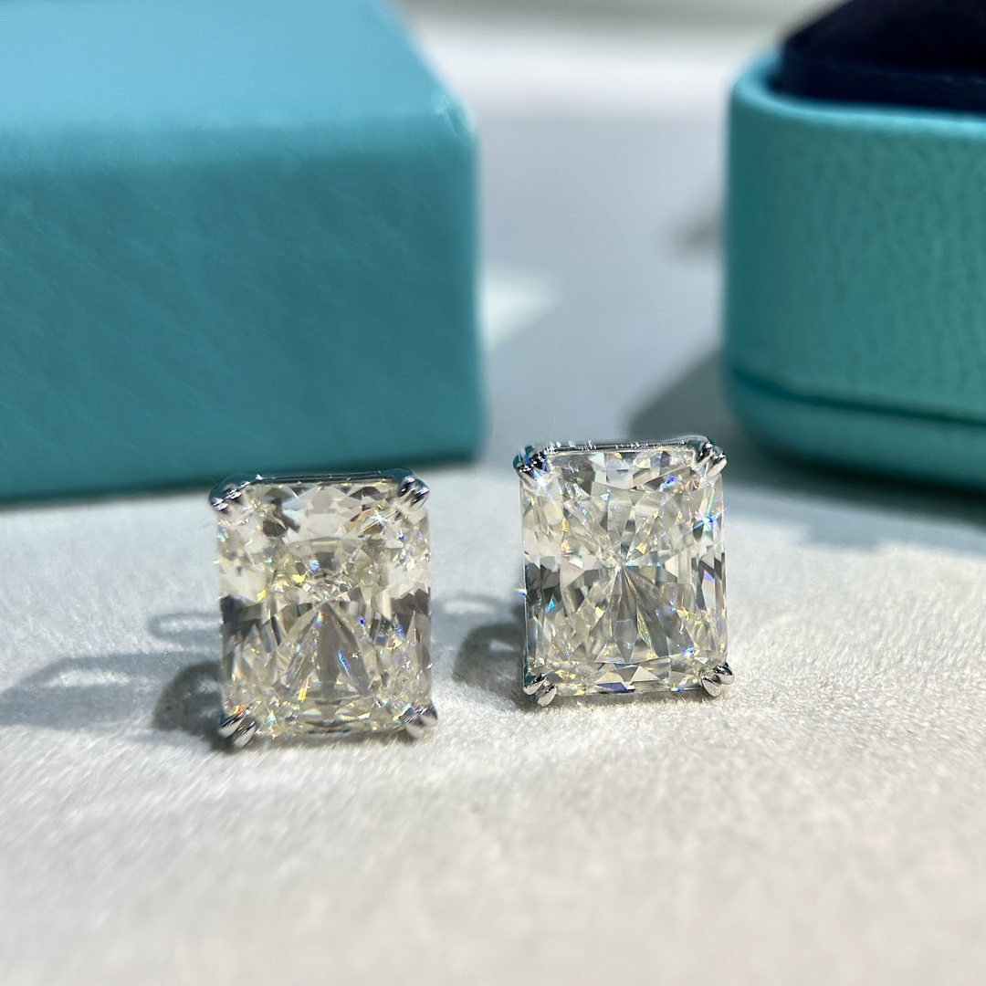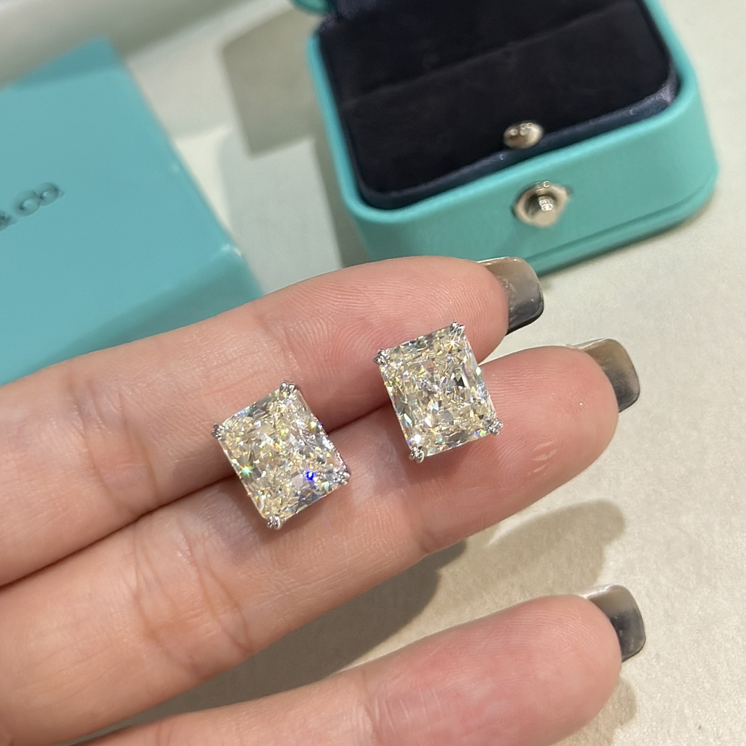 C476 【仿真鑽】T家 True 四爪 五克拉 方糖鑽石 耳釘 原單頂級S925純銀鑲嵌 採用四爪鑲嵌結構鑲座的位置更低,從而貼近肌膚,戒壁打磨為立體的坡面造型。超級逼真 效果超過真鑽 耳釘