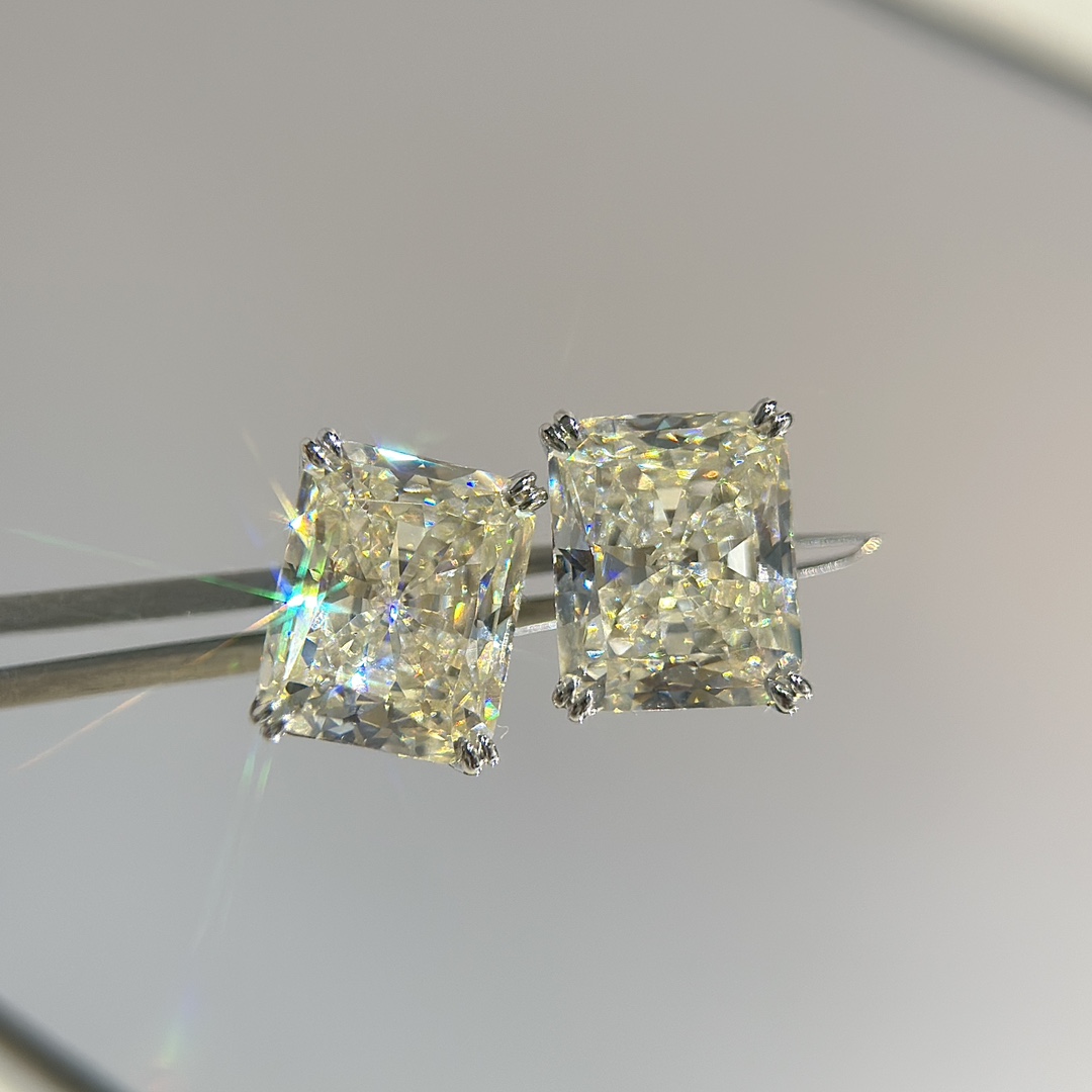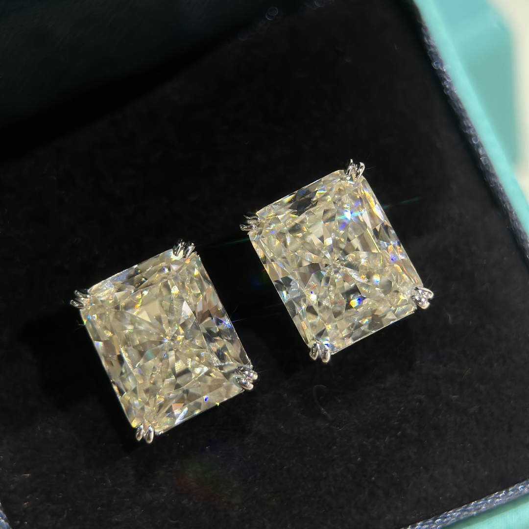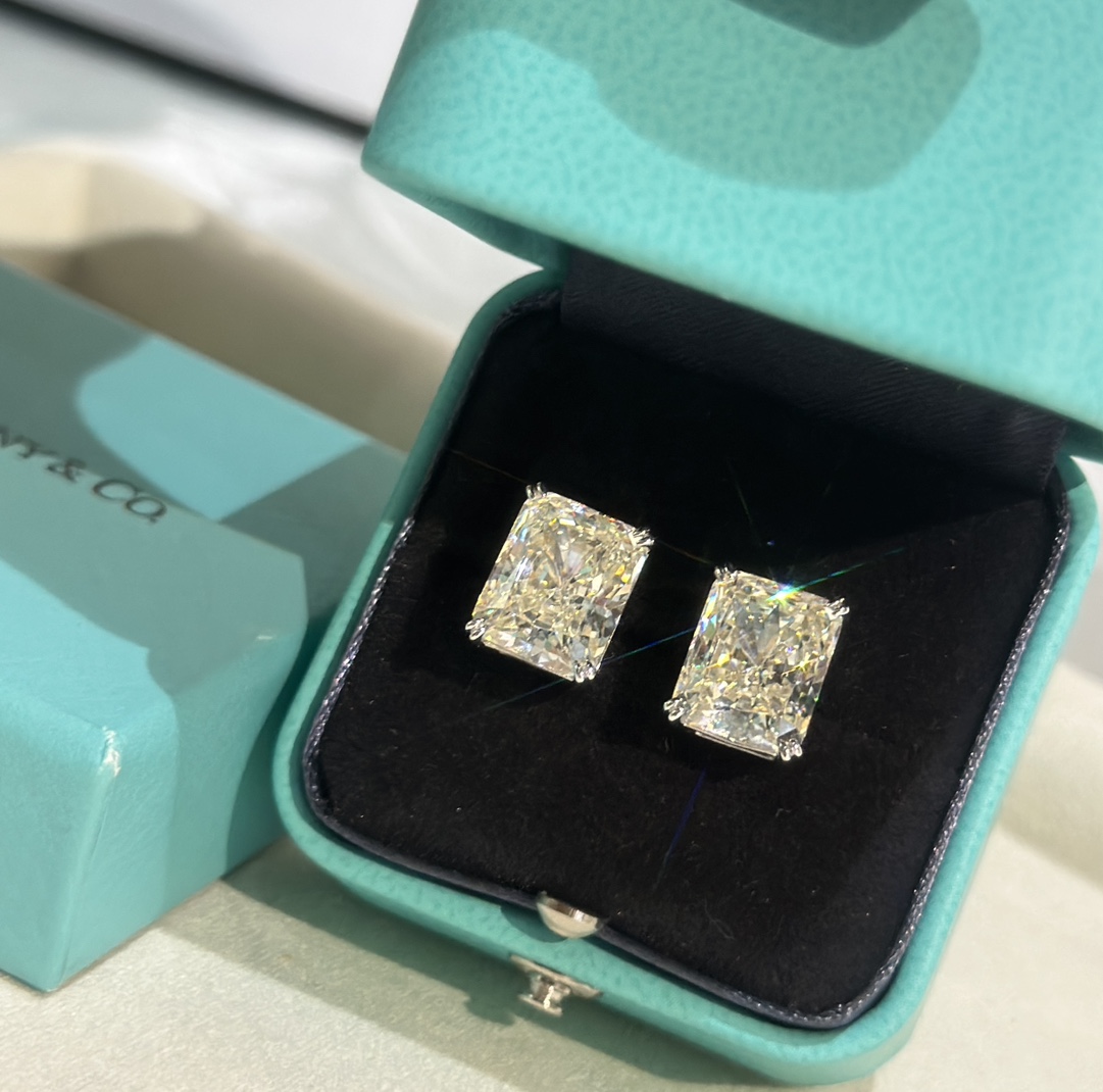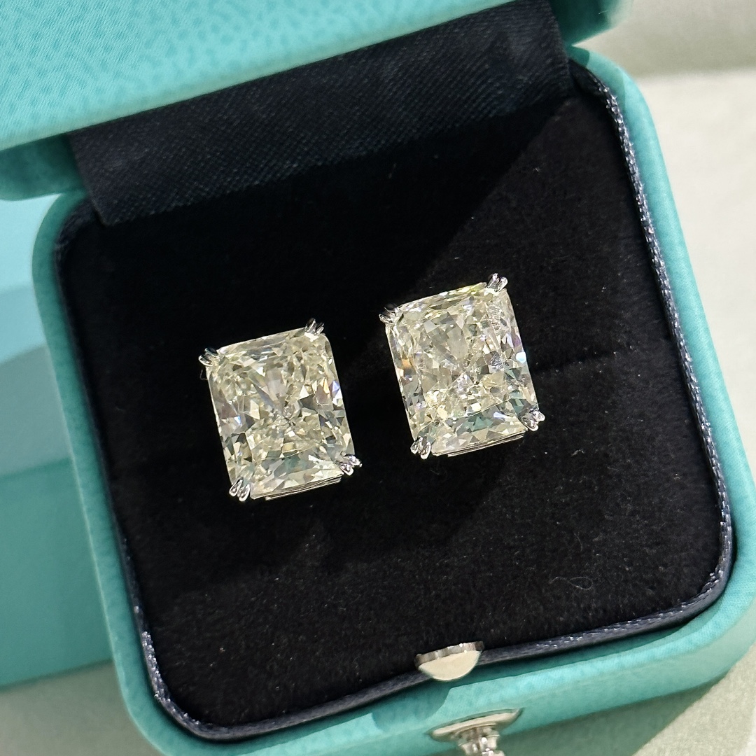 C476 【仿真鑽】T家 True 四爪 五克拉 方糖鑽石 耳釘 原單頂級S925純銀鑲嵌 採用四爪鑲嵌結構鑲座的位置更低,從而貼近肌膚,戒壁打磨為立體的坡面造型。超級逼真 效果超過真鑽 耳釘
