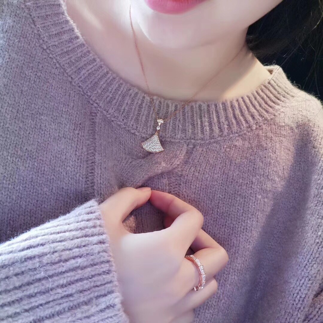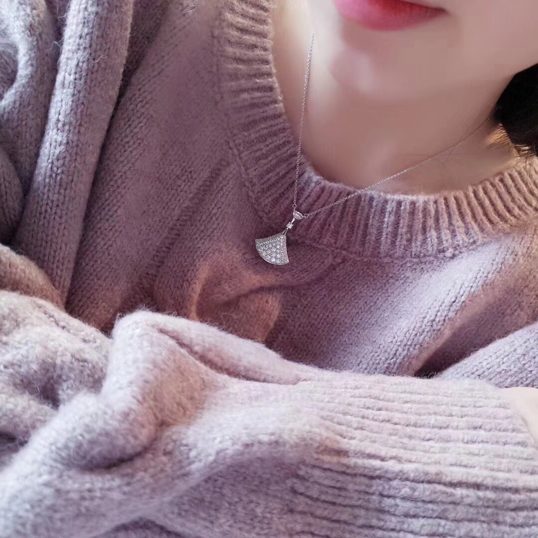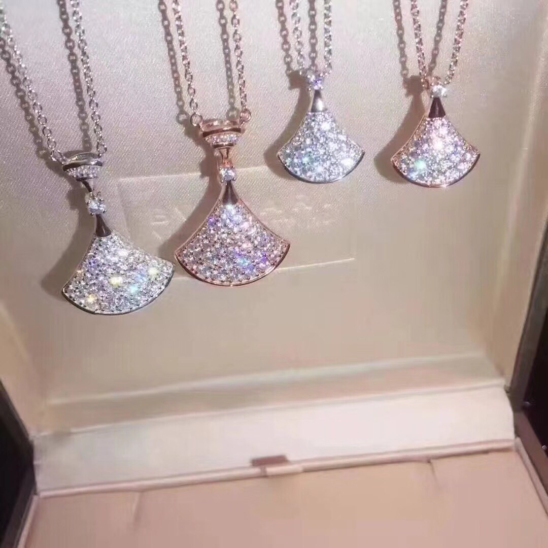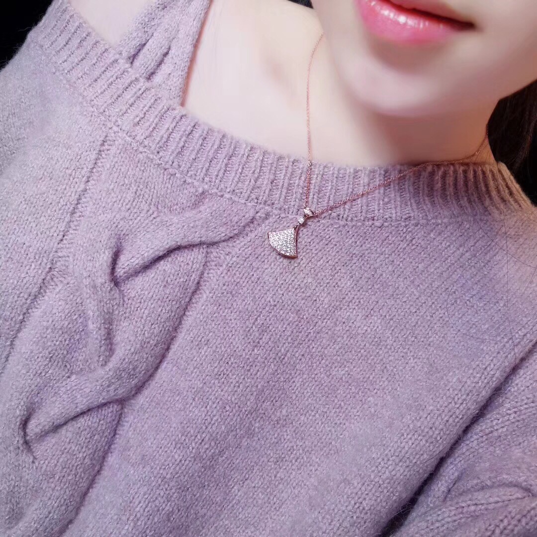 B599 寶家 火爆 經典diva系列 高端定制火爆專櫃項鏈 進口925純銀18k金鑲鑽扇形裙子 鑽項鏈 奢侈美麗晚宴必備價格漂亮高尚大氣原版logo好美膩百搭款鉑金 玫瑰金兩色 大號 純銀項鏈