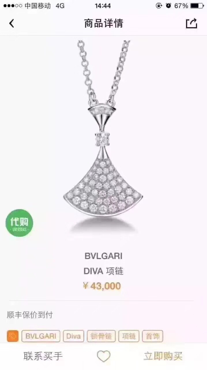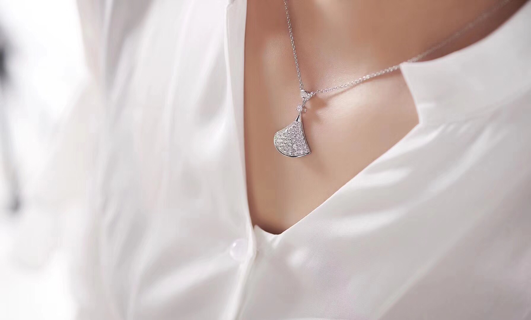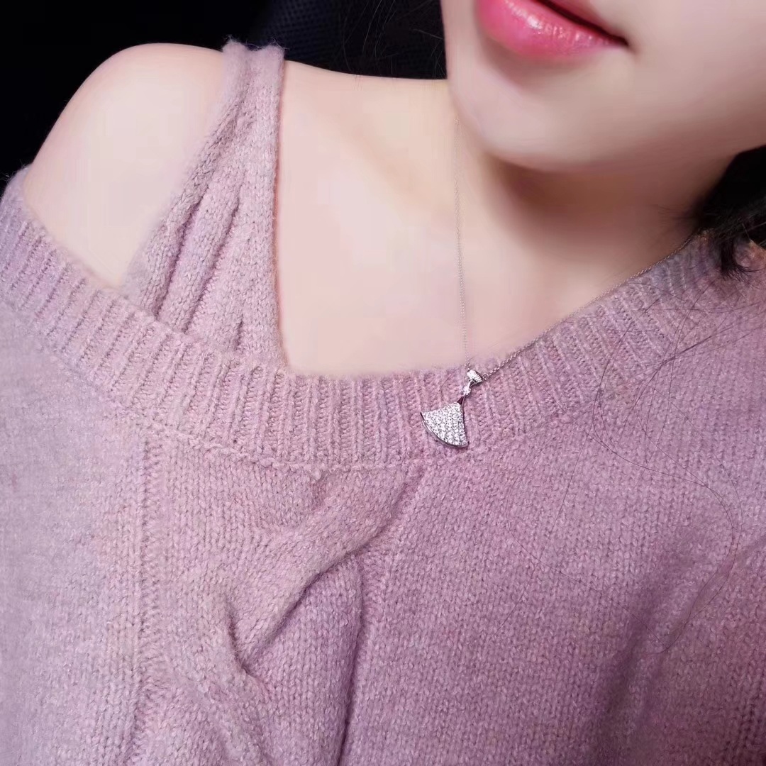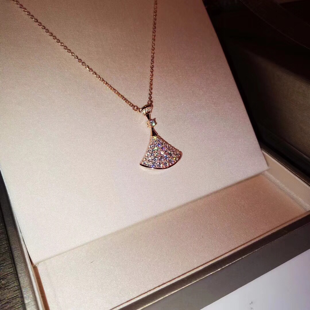 B599 寶家 火爆 經典diva系列 高端定制火爆專櫃項鏈 進口925純銀18k金鑲鑽扇形裙子 鑽項鏈 奢侈美麗晚宴必備價格漂亮高尚大氣原版logo好美膩百搭款鉑金 玫瑰金兩色 大號 純銀項鏈