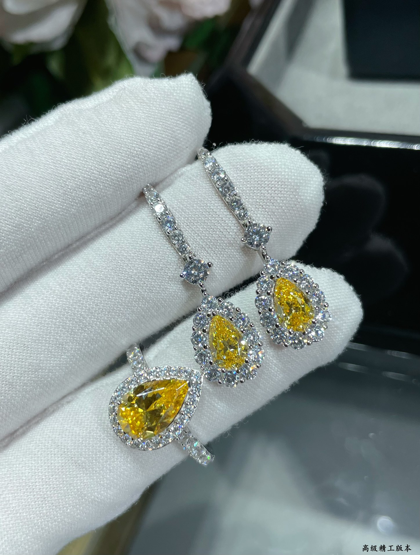 925180 碼數:678。全手鑲鑽,進口鋯石。格拉夫水滴形黃鑽戒指,實物超閃,女神的選擇,水滴型享有“愛神的眼淚”美譽,優美的弧線,修長飽滿的線條,更好的整體修飾手形,適合拒絕平庸、別具一格的你。