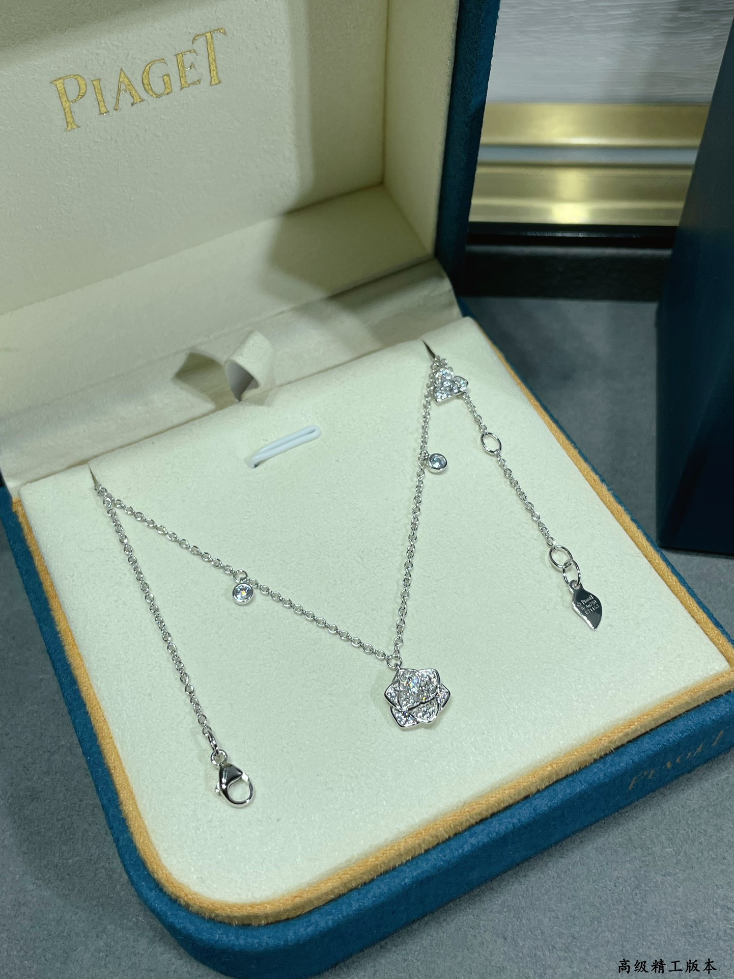 V金鍍咪金 好看的飾品不少,讓人怦然心動的款式不多一見傾心的伯爵滿鑽花朵項鏈,美的不可方物層層疊加,美到窒息!生活 需要一點點亮眼的色彩,整個人馬上出彩!佩戴方便舒適