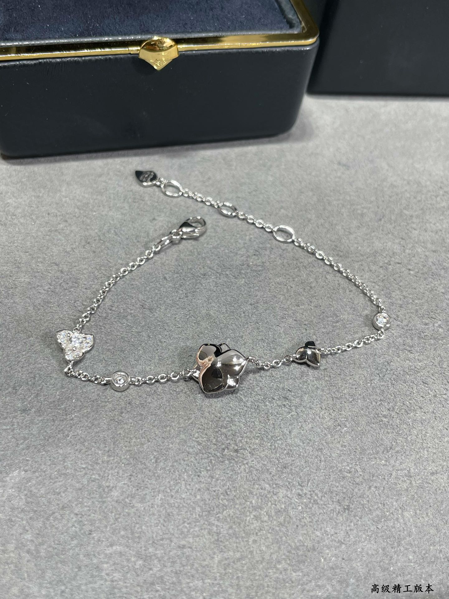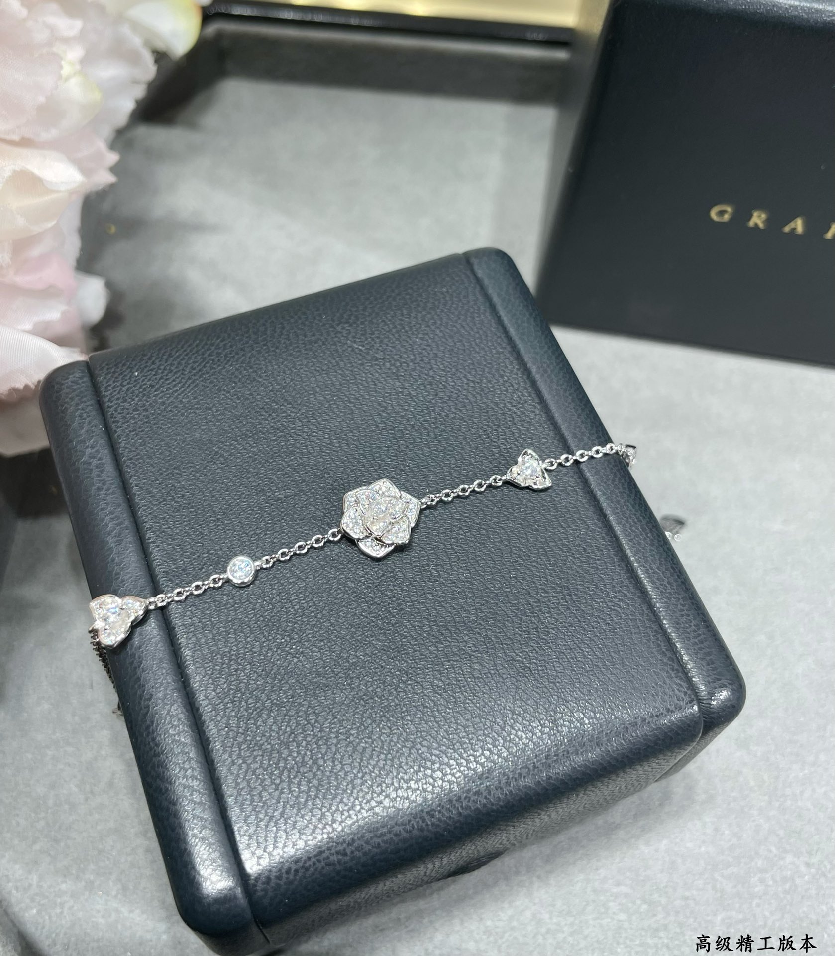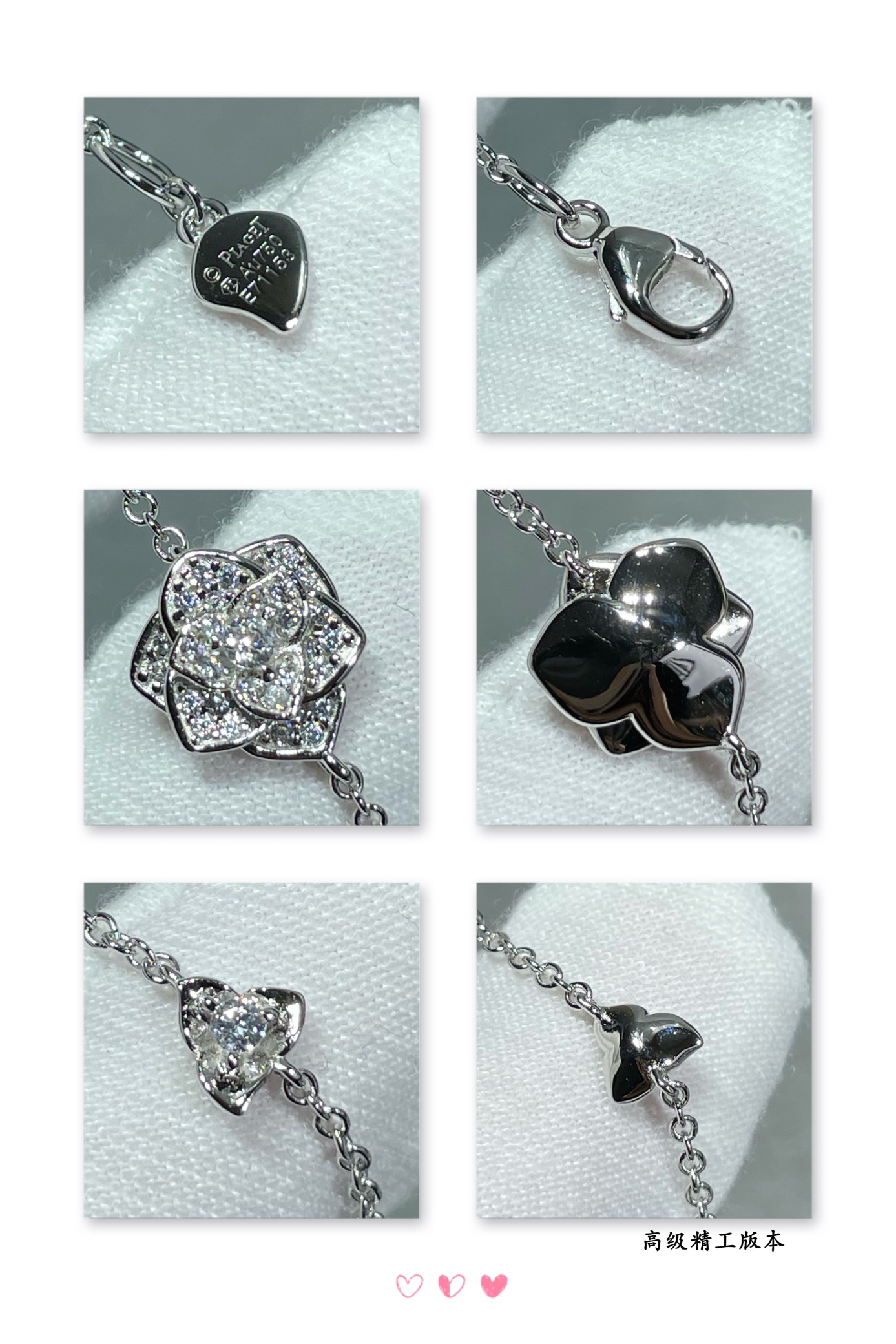 V金鍍咪金 好看的飾品不少,讓人怦然心動的款式不多一見傾心的伯爵滿鑽花朵手鏈,美的不可方物層層疊加,美到窒息!生活 需要一點點亮眼的色彩,整個人馬上出彩!佩戴方便舒適