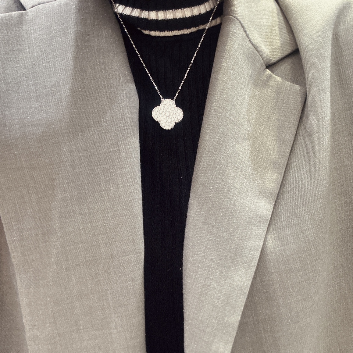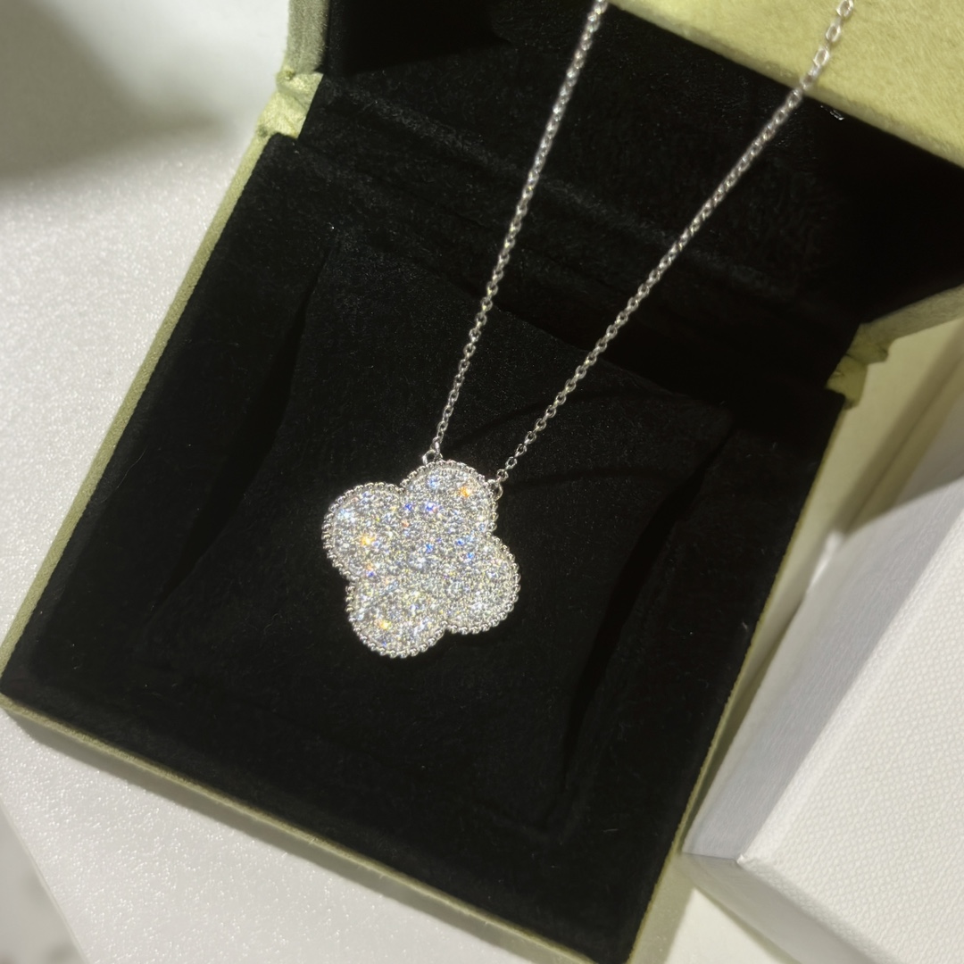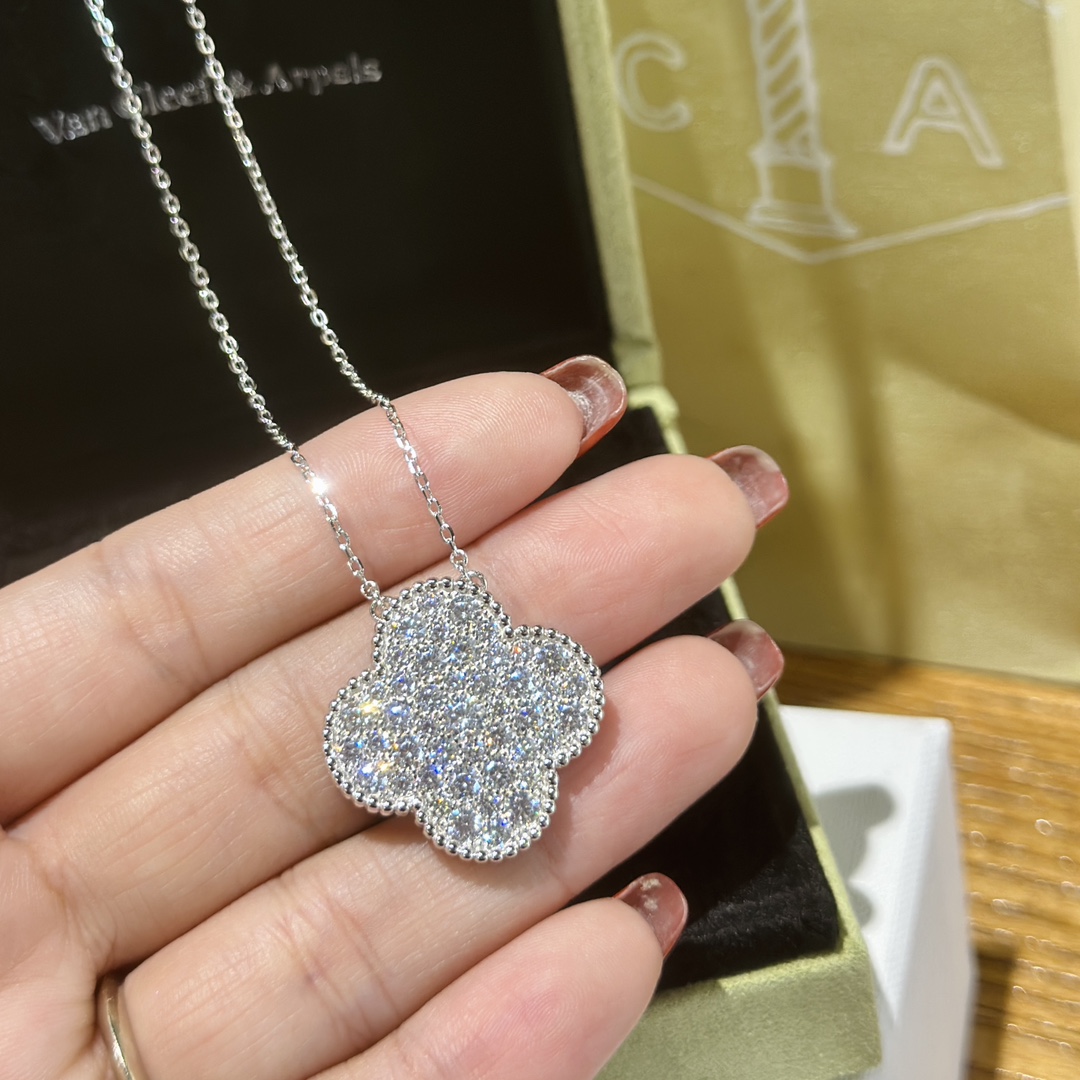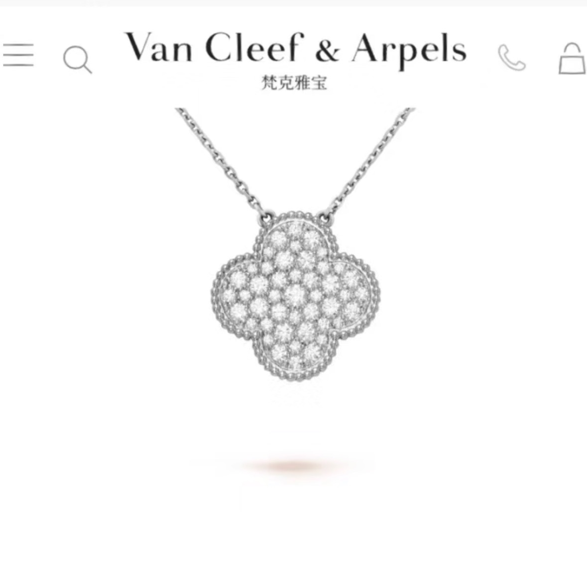 C384 VCA 梵克雅寶 新款 滿鑽 四葉草 大號 短款項鏈 足夠分量,足夠重工,足夠精細!通體925純銀鍍金。永久保色 珠邊渾圓飽滿,大小鑽錯落鑲嵌,背面蜂窩結構 單條克重14g+渾身的賣點,銀版最強版本,歡迎比貨! 40cm純銀項鏈