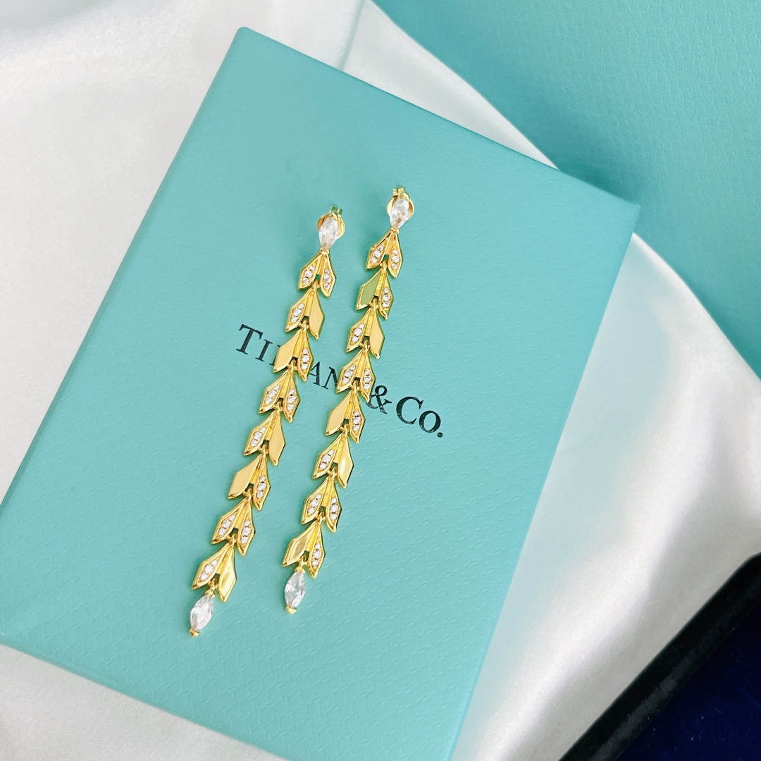 B804 Tiffany 蒂芙尼 新款Paper Flowers花韻系列 葉子 流蘇 耳環 專櫃購入打版 一比一定制 超精工打造完美極了 採用德國進口 V金材質電鍍厚金 不褪色不過敏鉑金 黃金兩色 耳環 100