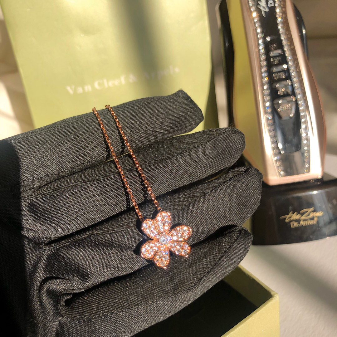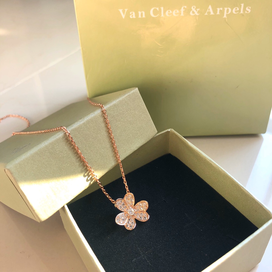 - 梵克雅寶VCA三葉花光面滿鑽項鏈