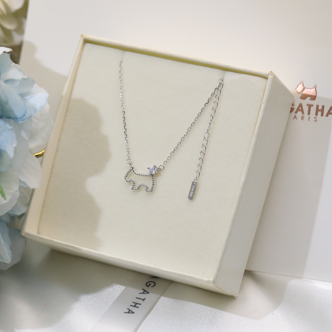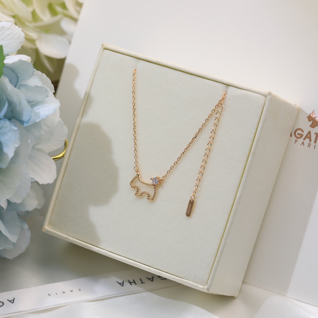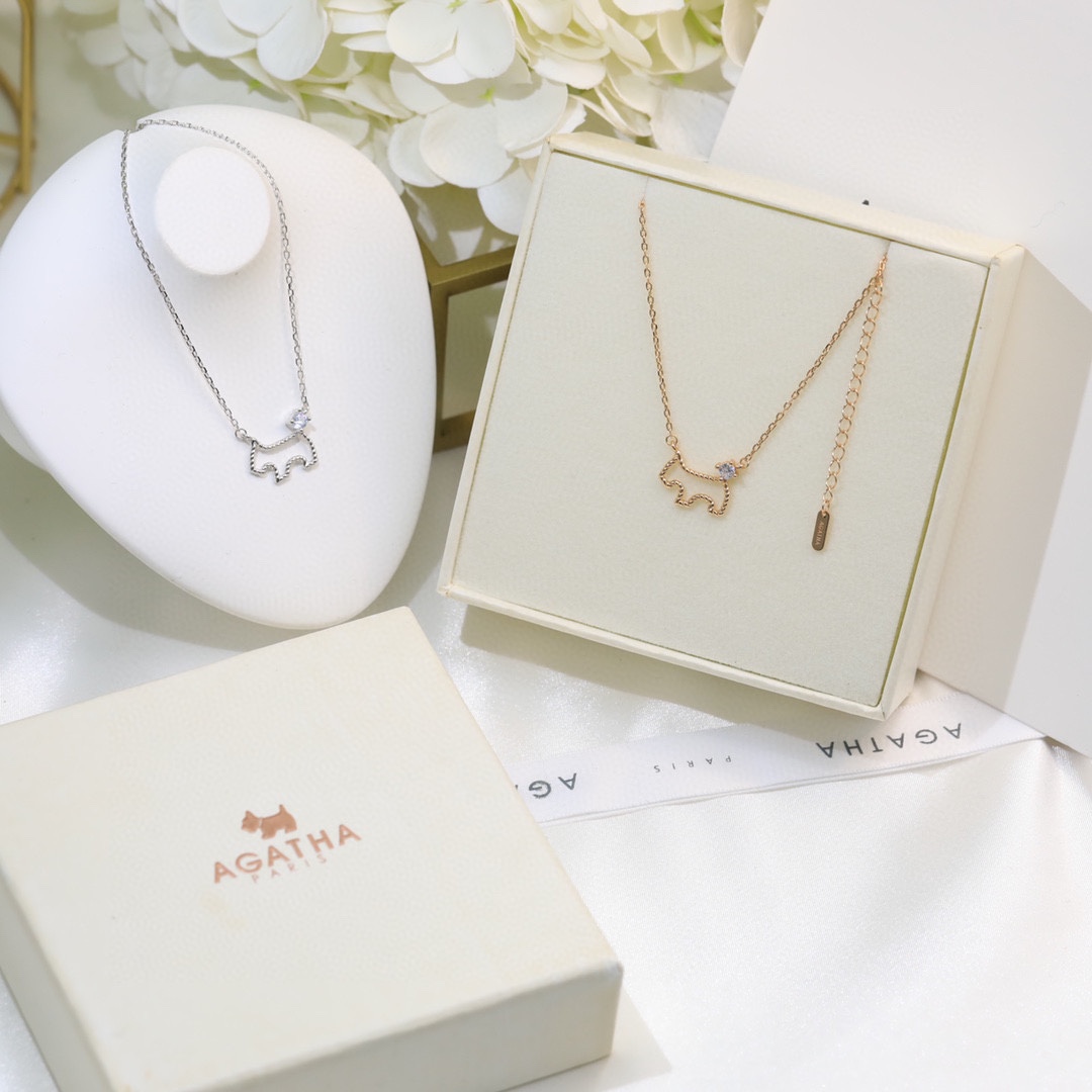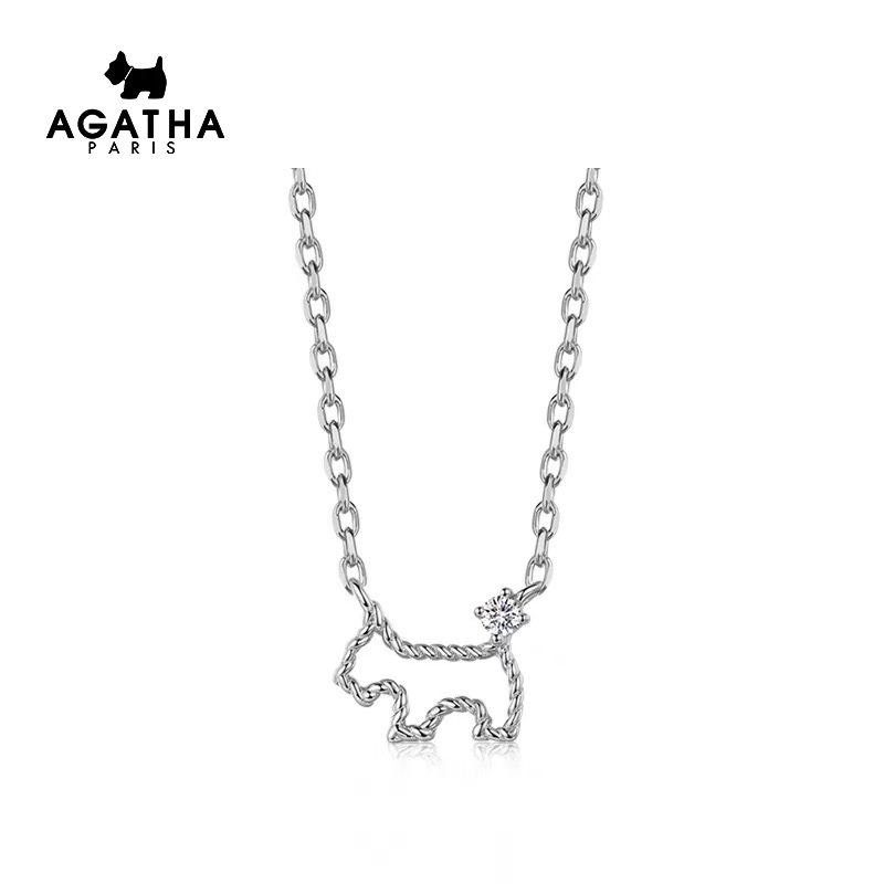 小狗狗項鏈 鏤空小狗項鏈 “璦嘉莎”它是來自巴黎的AGATHA, AGATHA的品牌其中一個系列的標誌是一只很可愛的蘇格蘭爹利犬!原版尾牌扣!採用進口s925純銀材質 電鍍厚金,持久保色!鏈長45cm 帶logo 香檳色白金色可選!