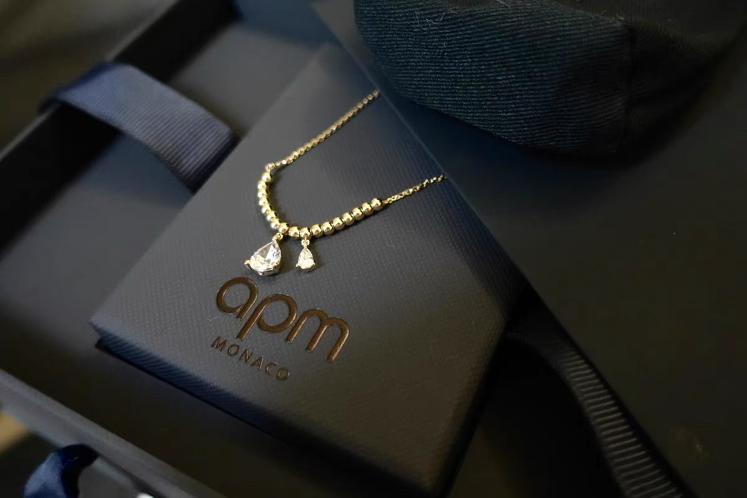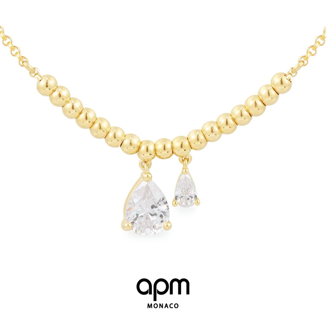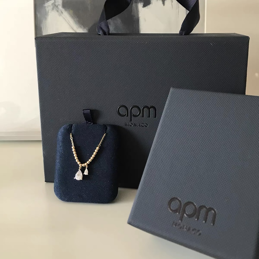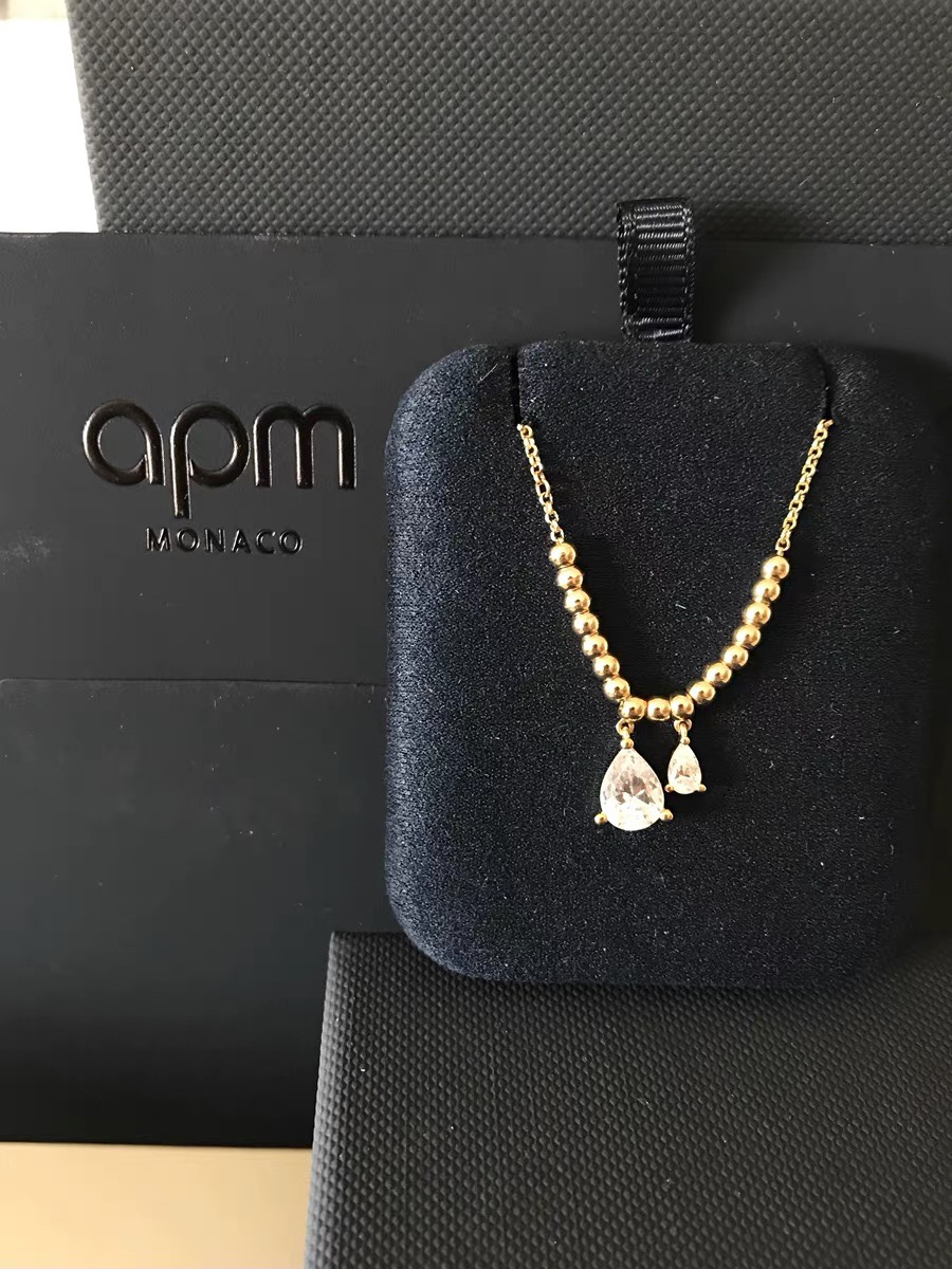 精工版本APM 金色水滴項鏈 個性簡約!亞金材質 微鑲精工版、電鍍18k金色!新品上市!微鑲5A鋯鑽!原版logo apm項鏈