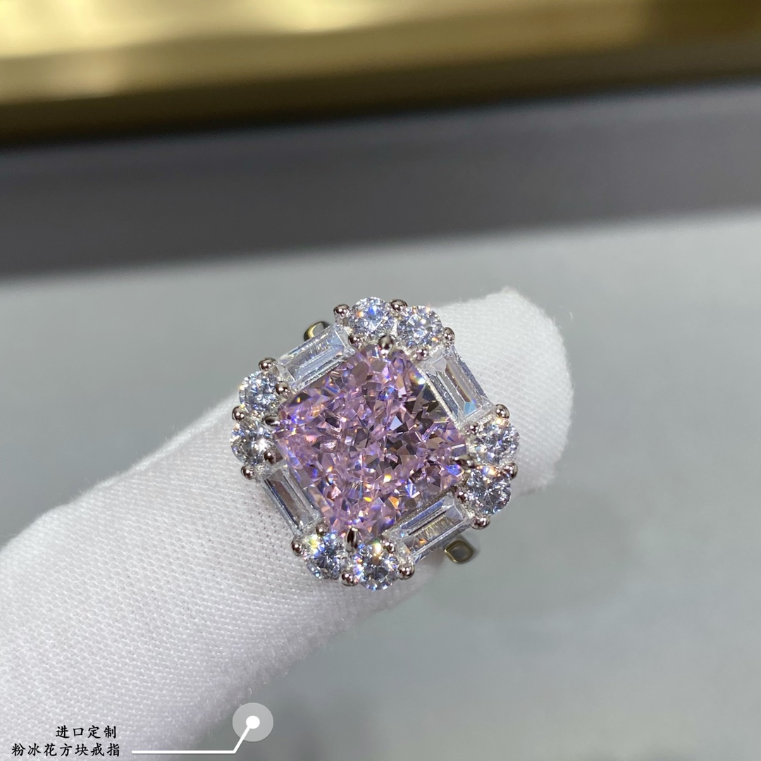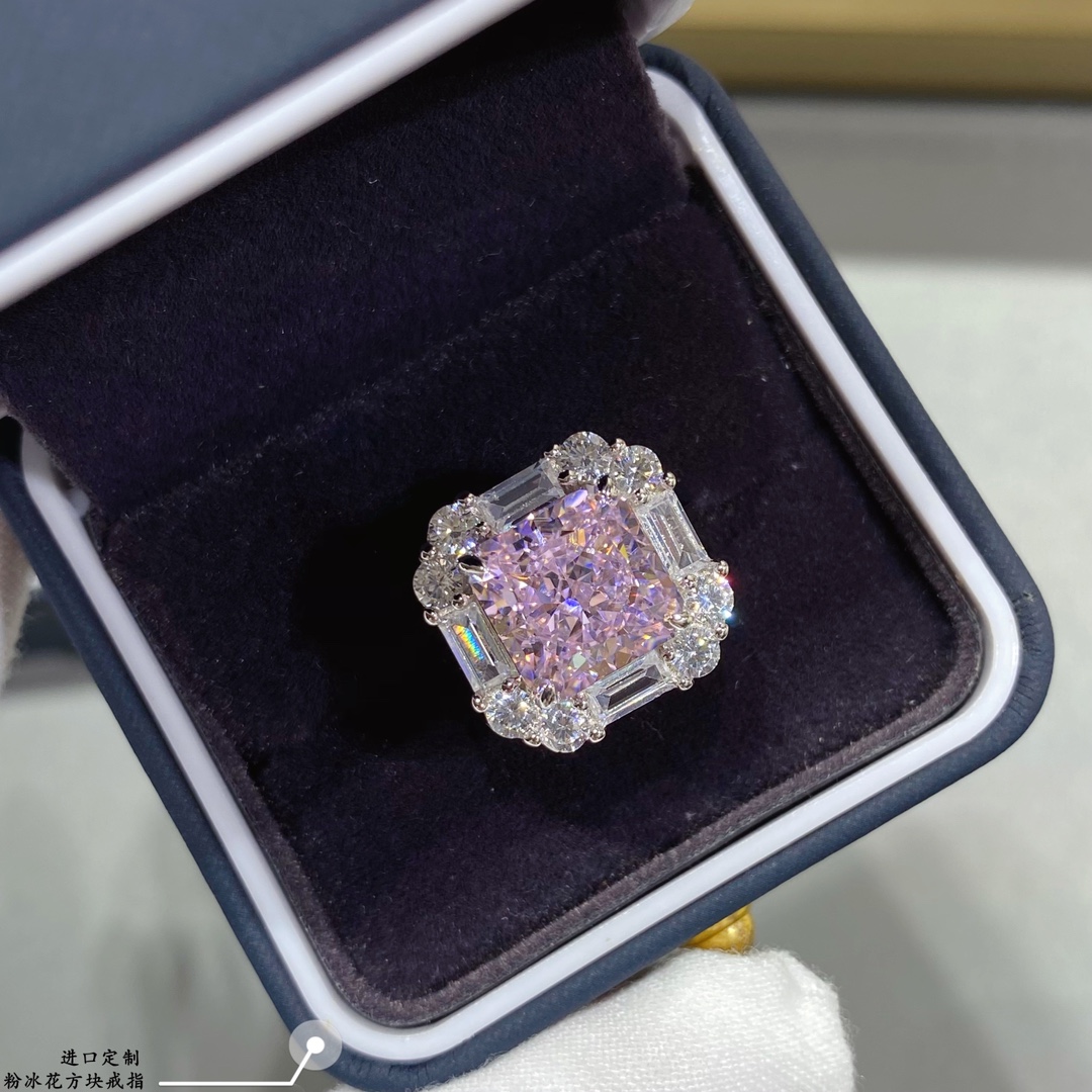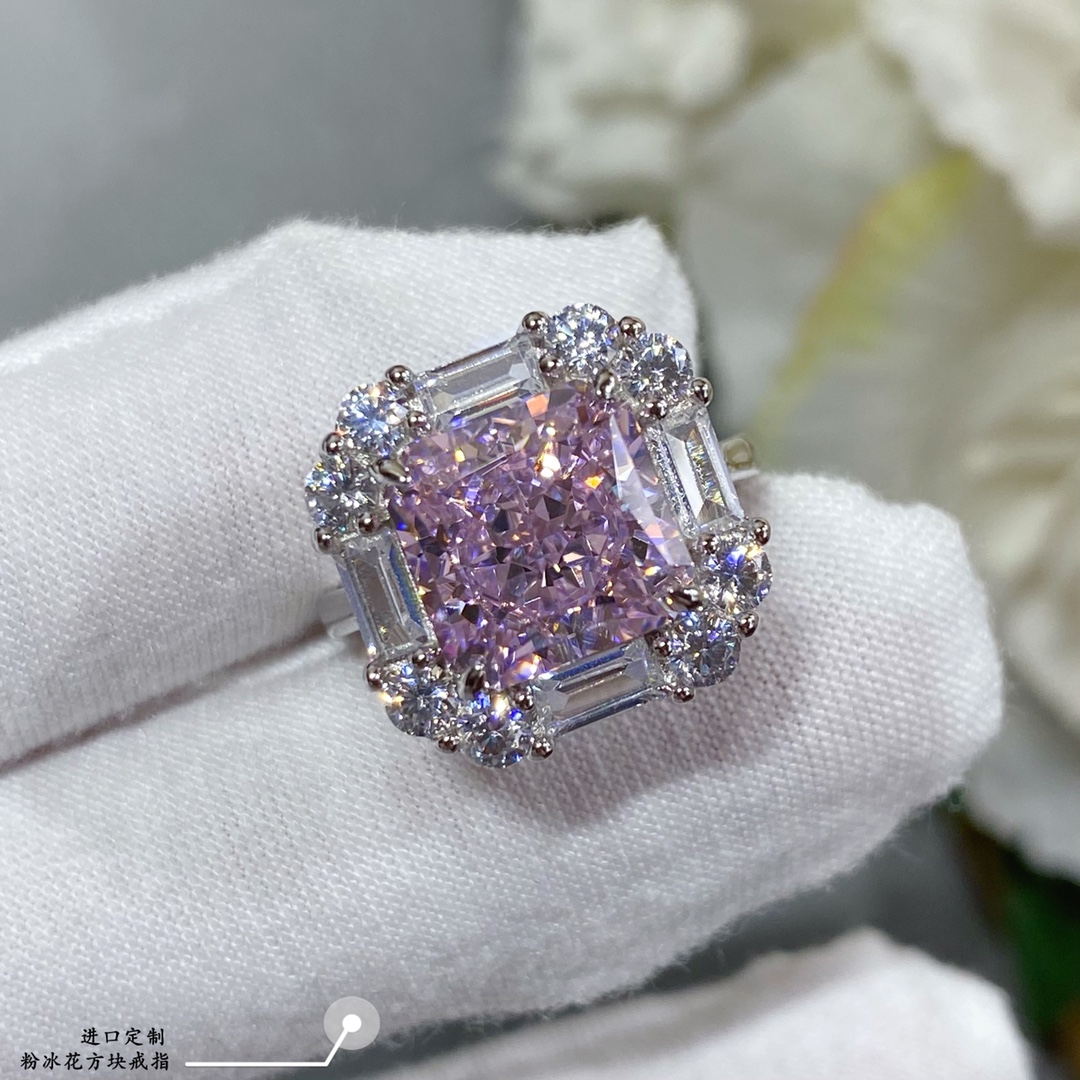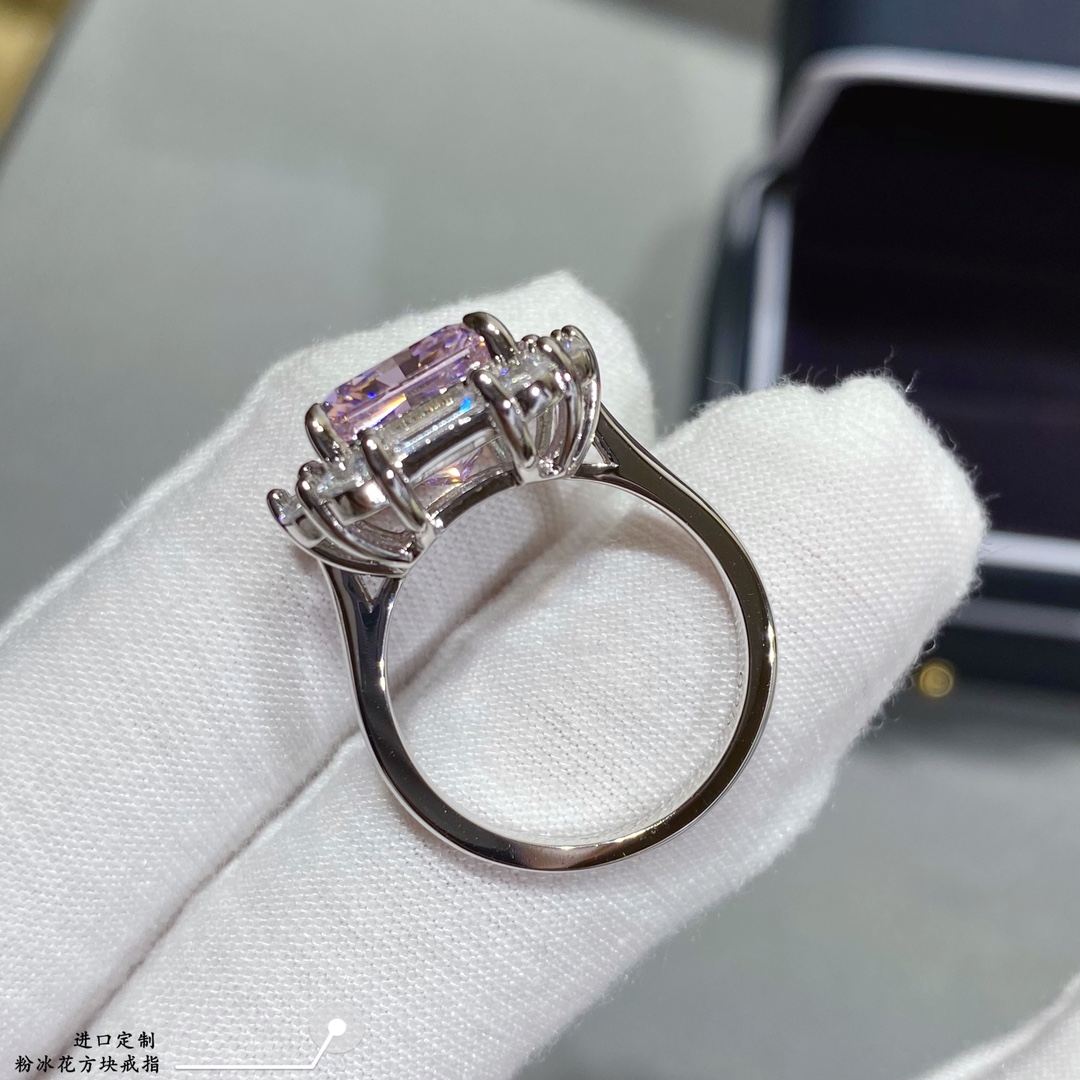 - 進口定制,粉冰花方塊戒指