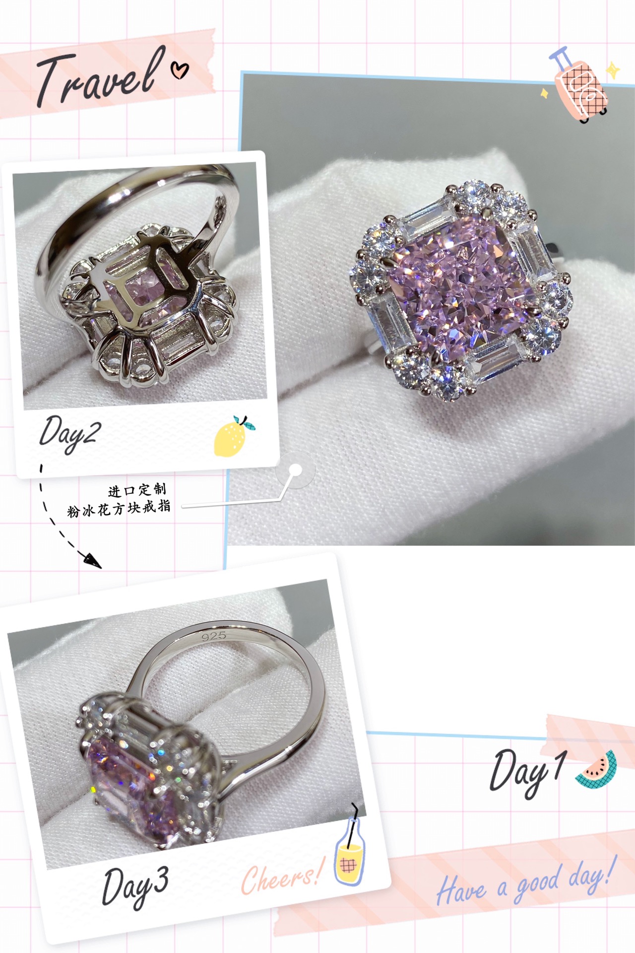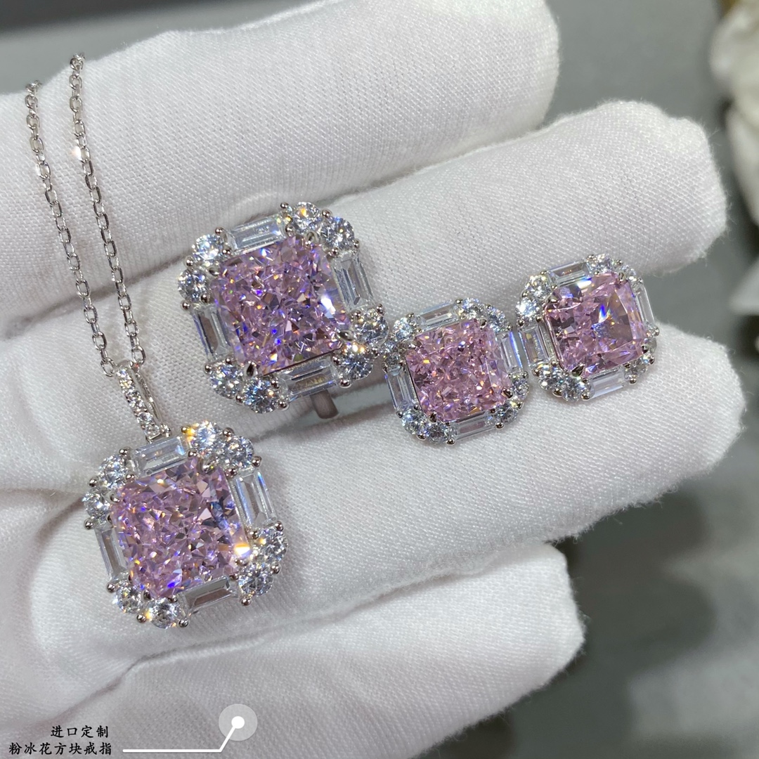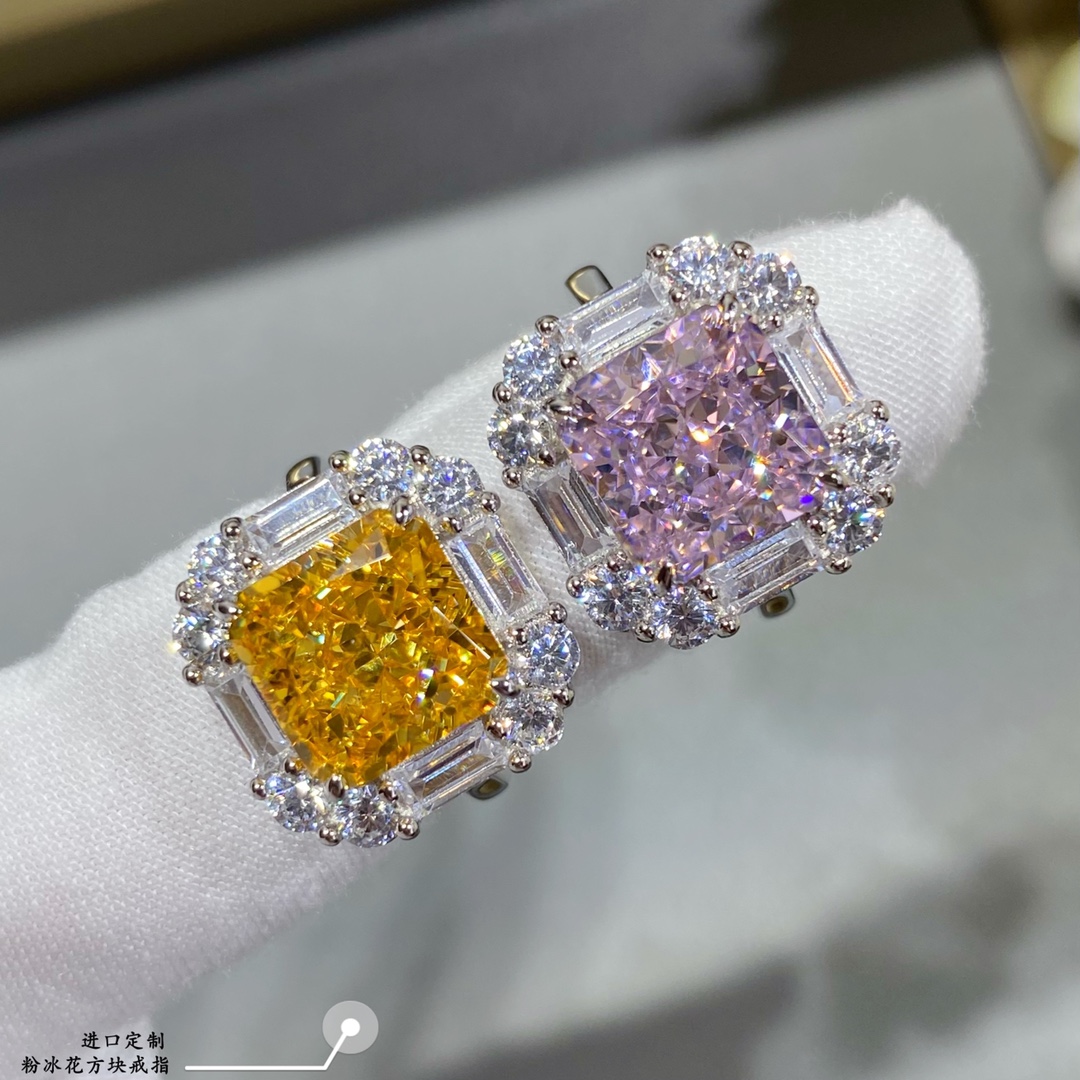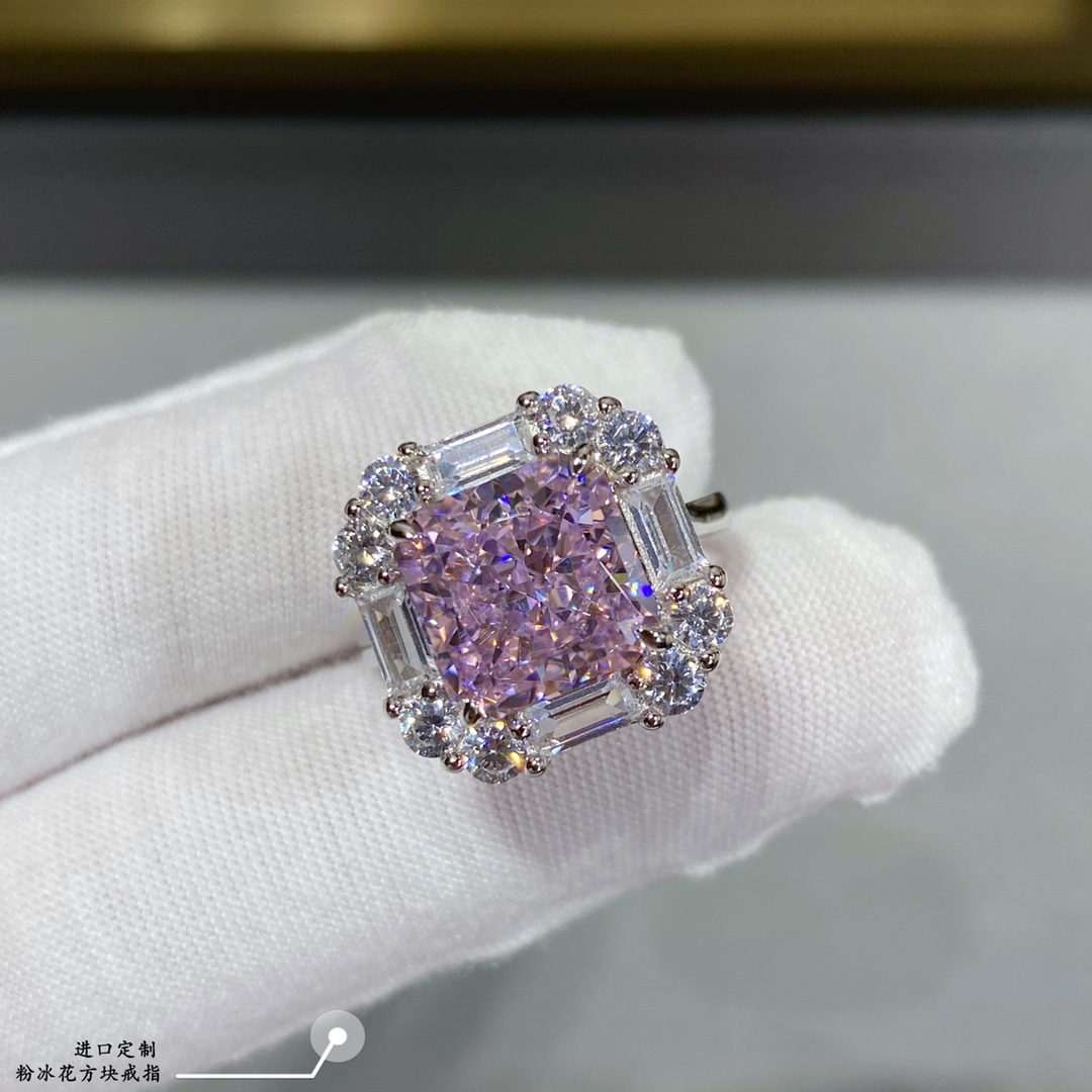 - 進口定制,粉冰花方塊戒指