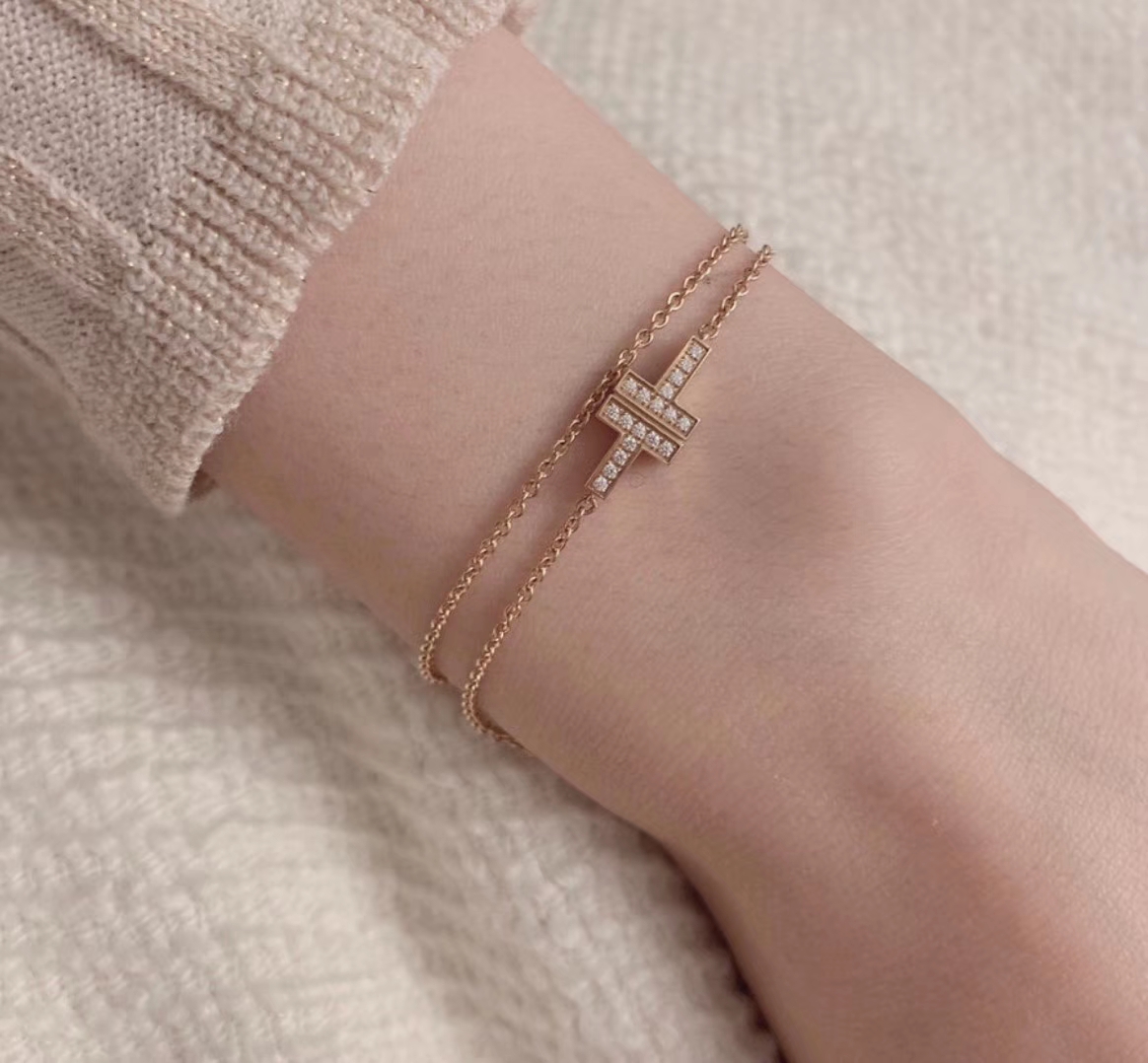 B231 【代購級別】tiff 蒂芙尼 笑臉 雙T 雙層 手鏈 可當項鏈 多種佩戴 方法 精緻優雅款無敵好看的款式 高端定制原版925純銀鑲嵌打造 簡單 超級nice 現貨白金 玫瑰金黃金三色 純銀手鏈