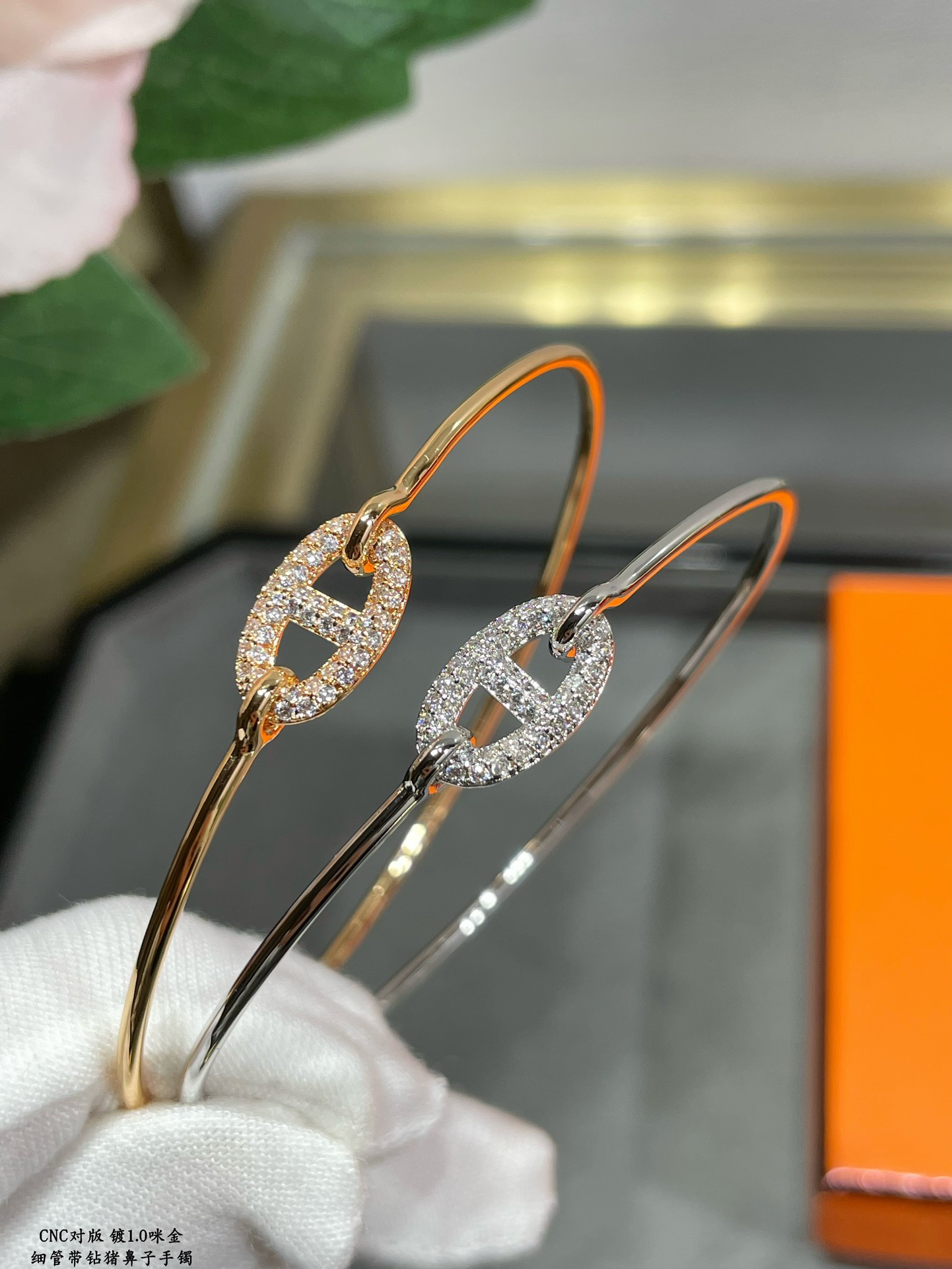 - 愛馬仕細管帶鑽豬鼻子手鐲