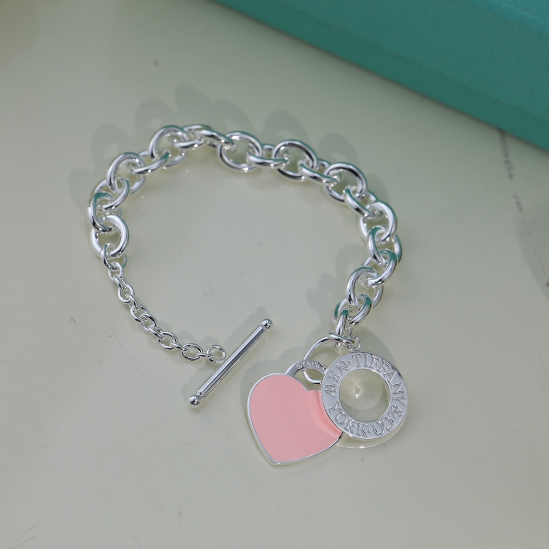 Tiffany手鏈 愛心手鏈 亞金材質蒂芙尼/Tiffany & Co./蒂芙尼櫻花粉藍色雙心琺瑯手鏈 Tiffany以愛與美、羅曼蒂克與夢想為題