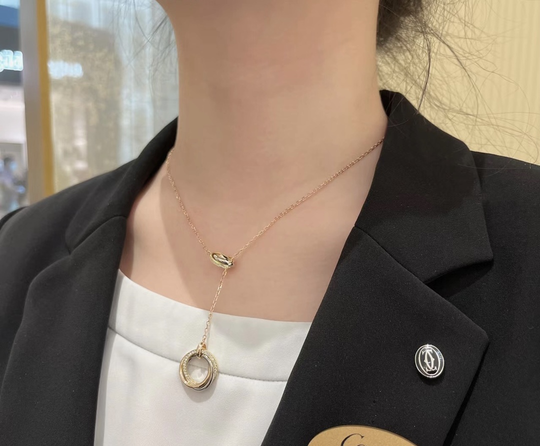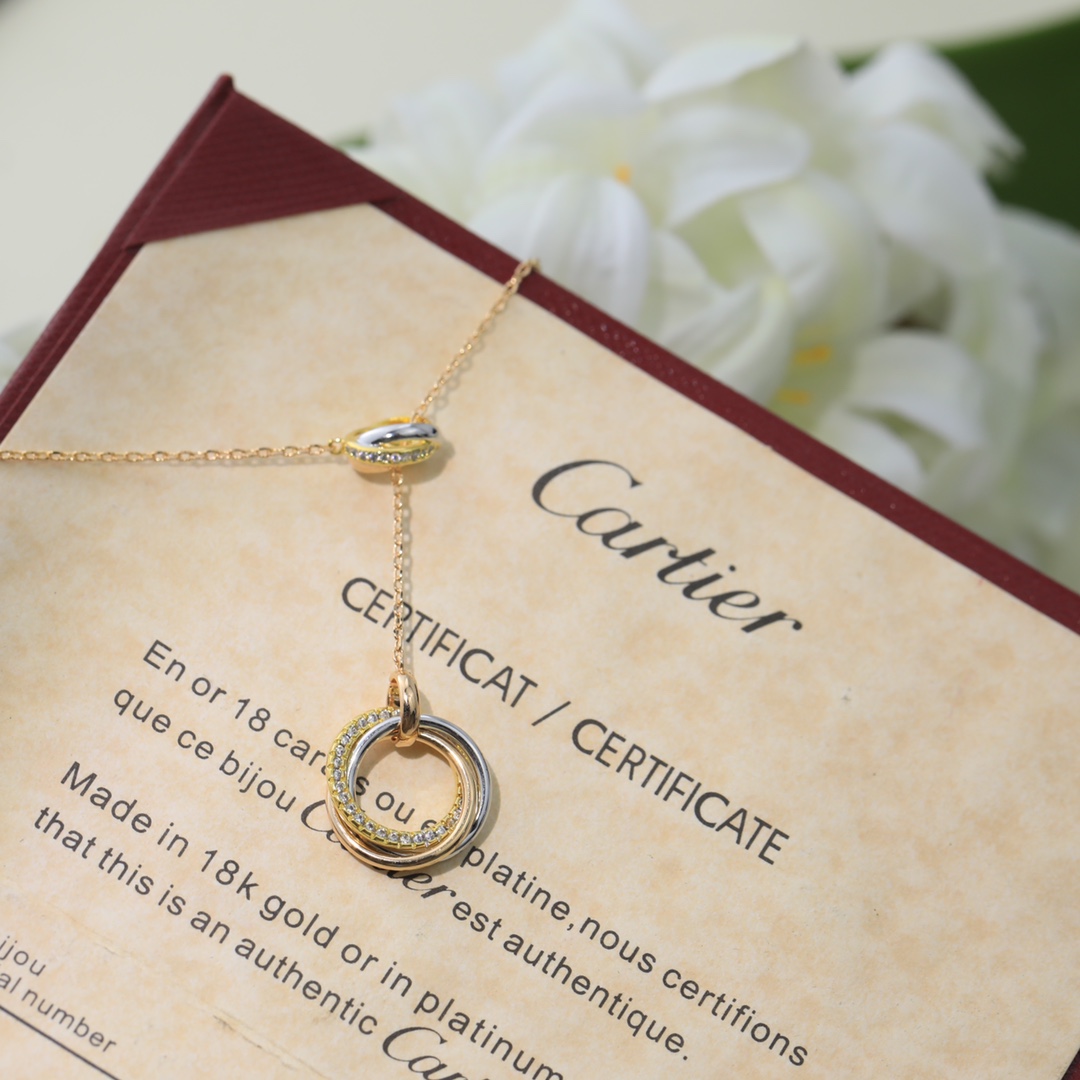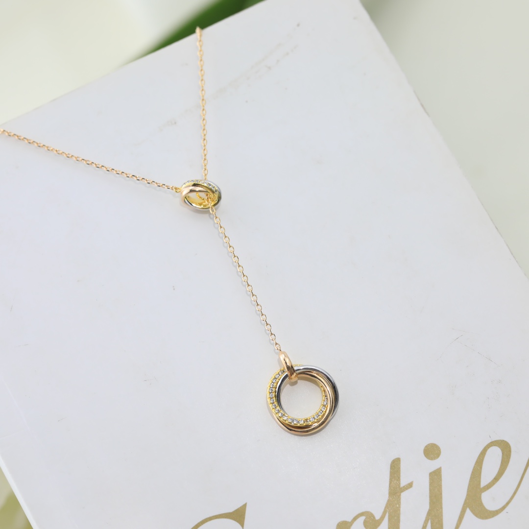 卡地亞 三色三環項鏈出貨 亞金材質 精工版本 帶logo 鏈長45cm可調節 卡地亞項鏈 三環項鏈 流蘇項鏈