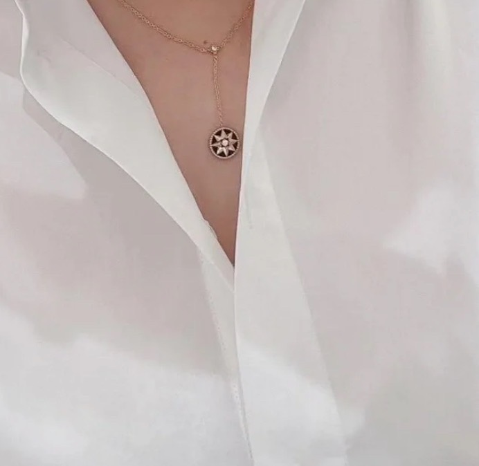 B858 D家22年新款八芒星 黑瑪瑙 羅盤 流蘇 項鏈高端對版超級美的款式要配上超級精緻的工藝才完美版型正,S925純銀厚金電鍍,八芒星的拋光工藝是難點,我們做的非常平整哦!放大看細節!另外特有的扣環焊接方式,仔細對比,秒殺市場貨 玫瑰金色 項鏈