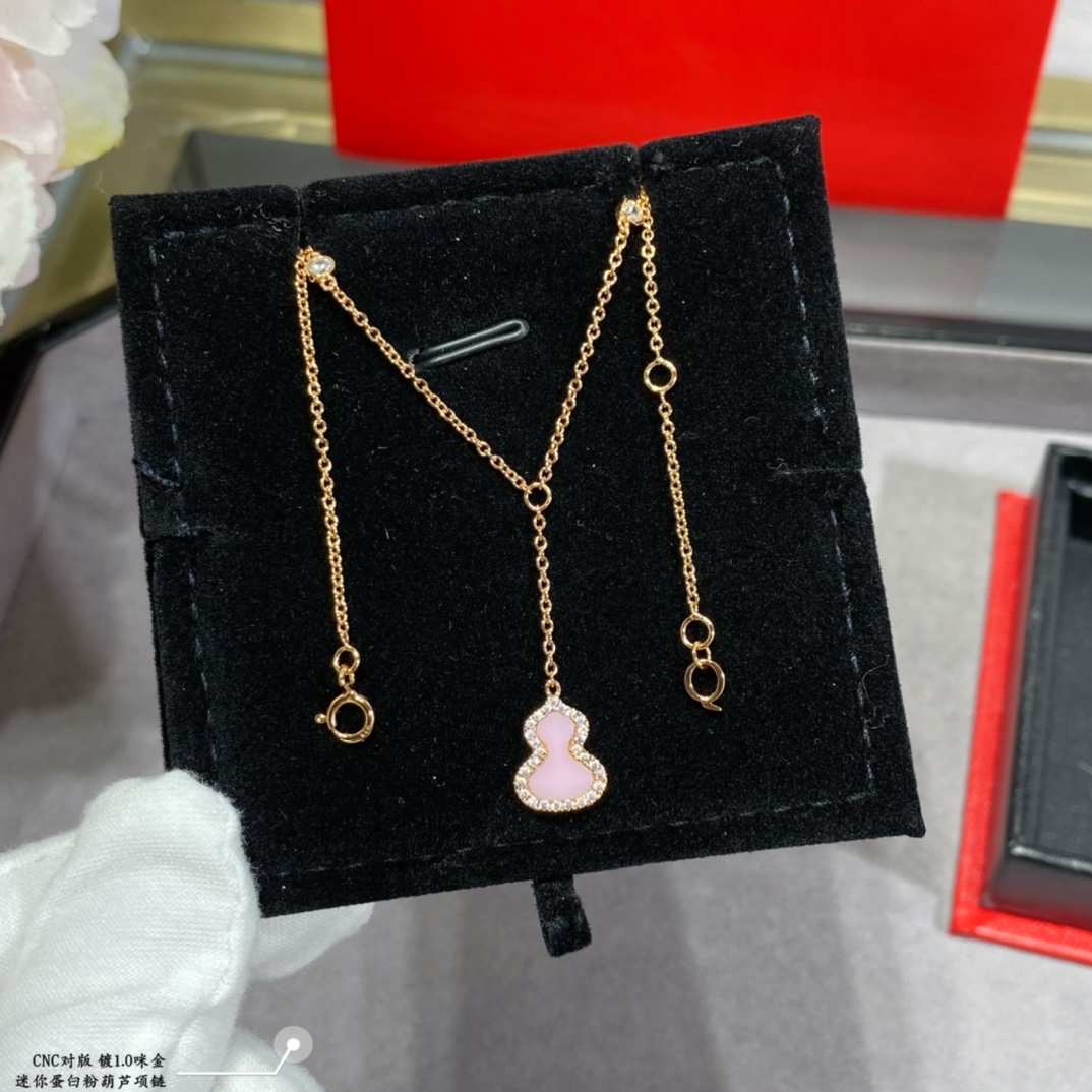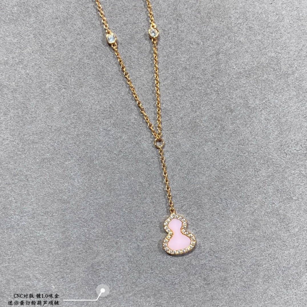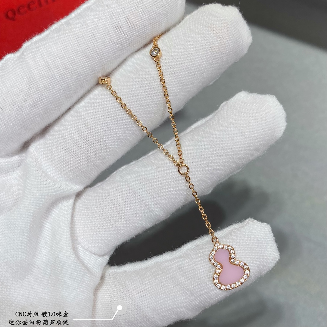V金材質 qeelin麒麟迷你蛋白粉葫蘆項鏈,簡約的線條刻畫Wulu優美的形態,珍貴的粉寶石化為腕間的優雅,Qeelin x 黎貝卡獨家發售限量版Wulu項鏈,如何用它搭出冬日的氣息。