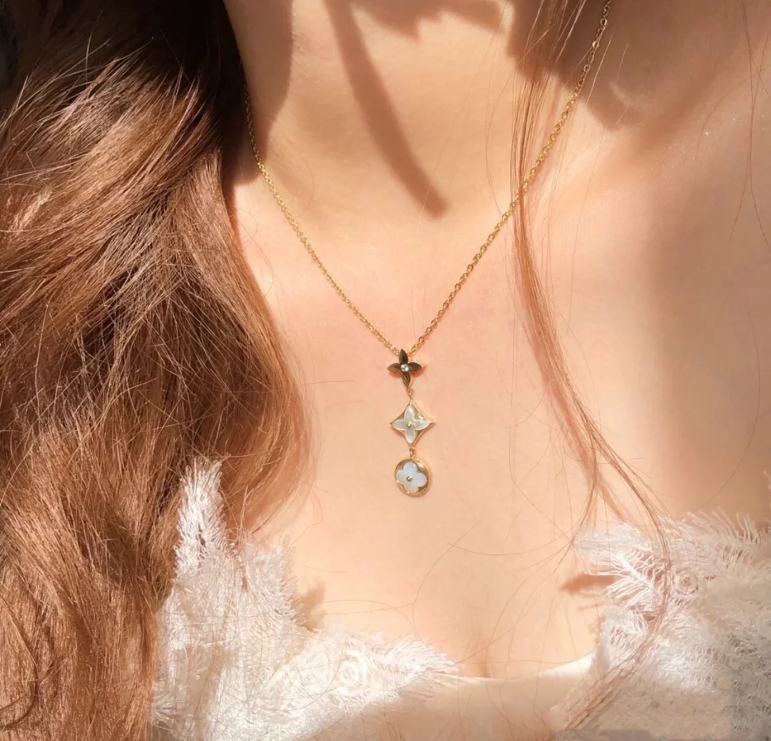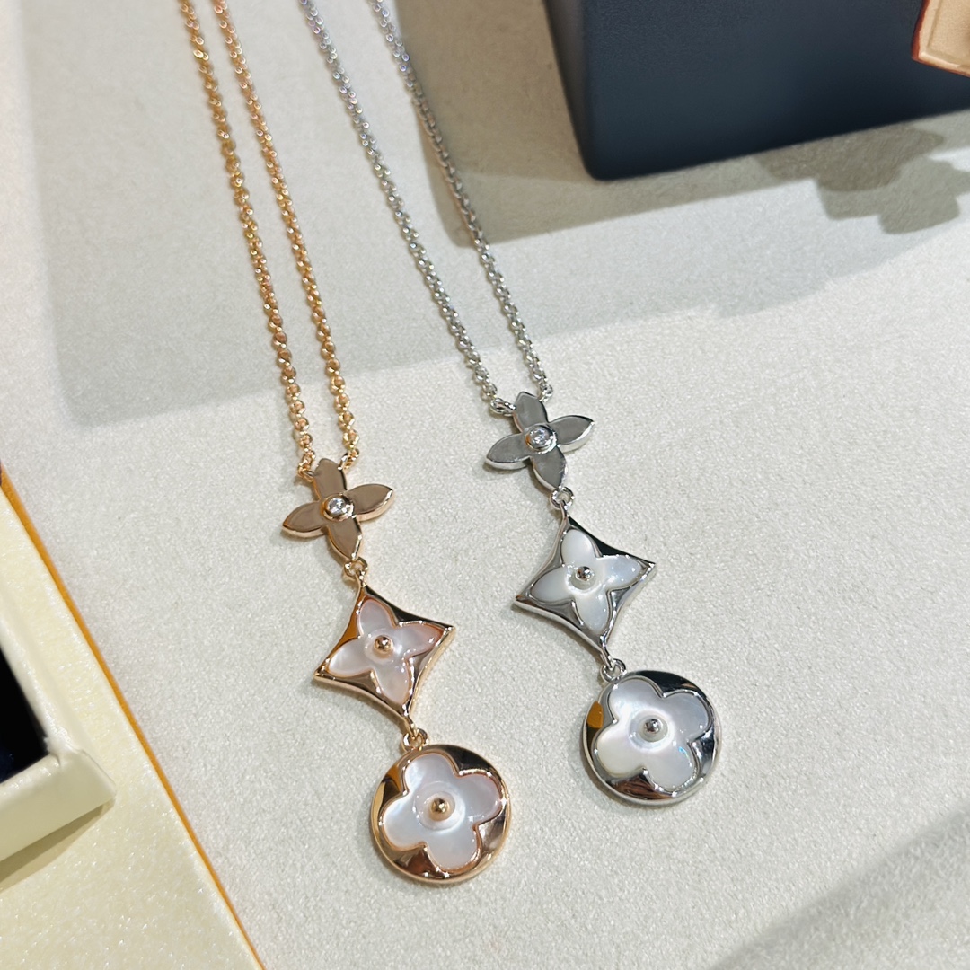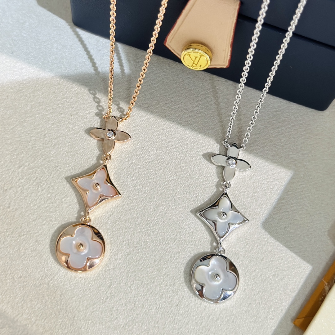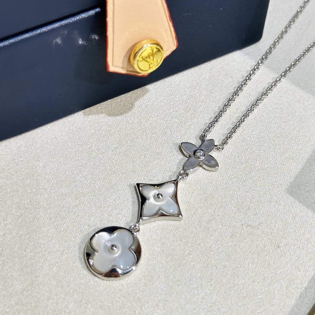 C040 Lv 路易威登 經典 三花 白貝 項鏈 上身超美膩呀呀呀 經典老花系列 人手必備單品 精選德國進口s925純銀材質電鍍14k金 玫瑰金 鉑金 兩色可選 升級為粗鏈條 純銀項鏈