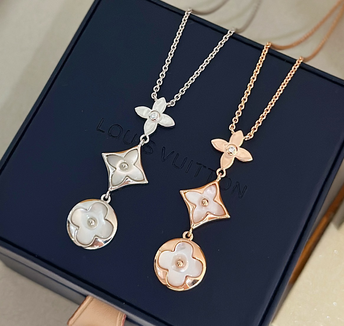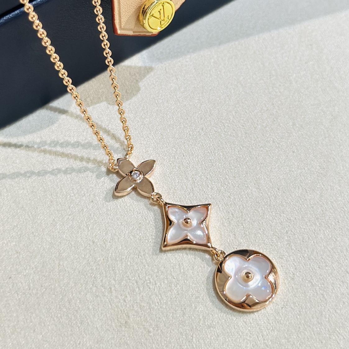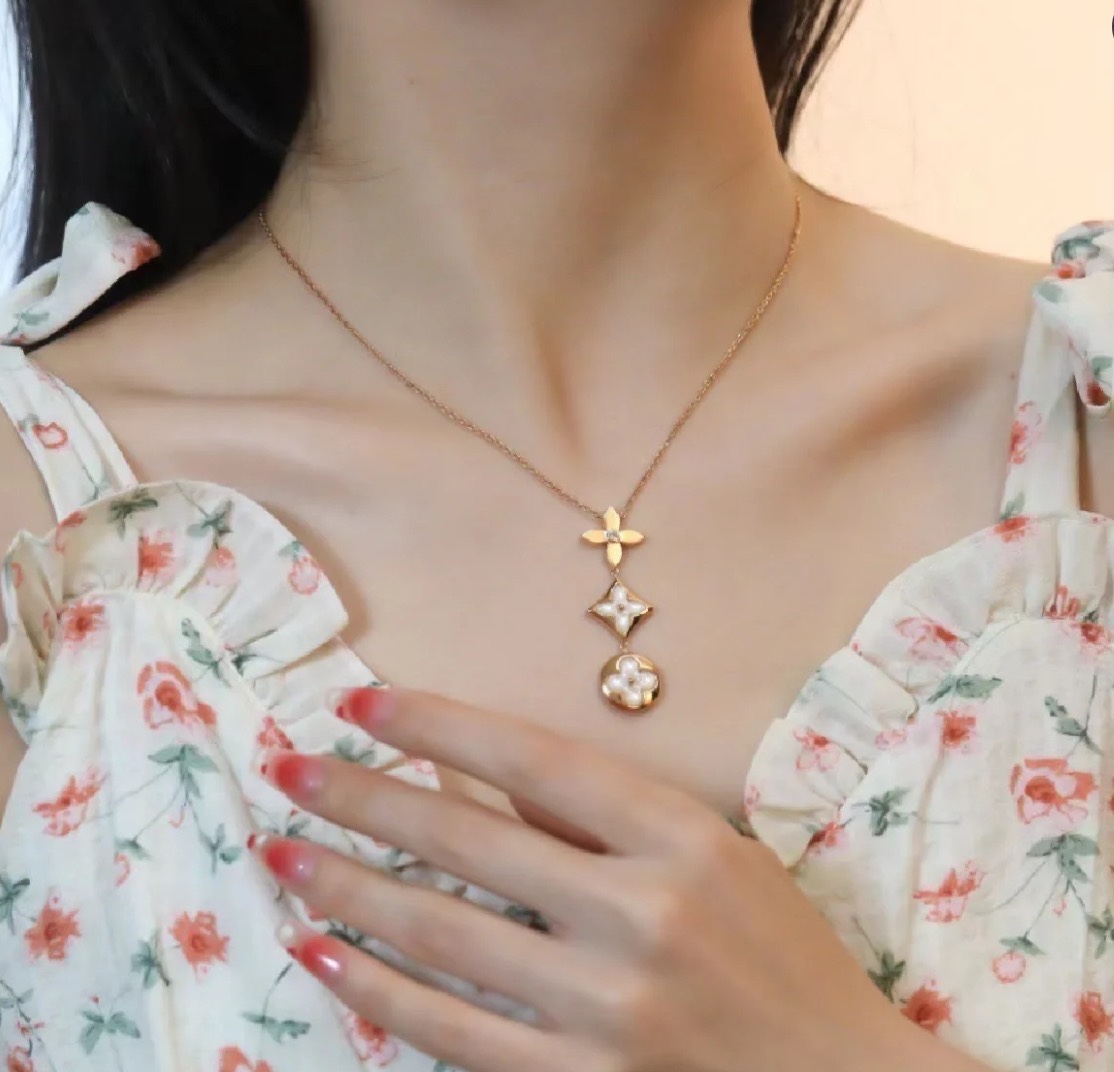 C040 Lv 路易威登 經典 三花 白貝 項鏈 上身超美膩呀呀呀 經典老花系列 人手必備單品 精選德國進口s925純銀材質電鍍14k金 玫瑰金 鉑金 兩色可選 升級為粗鏈條 純銀項鏈