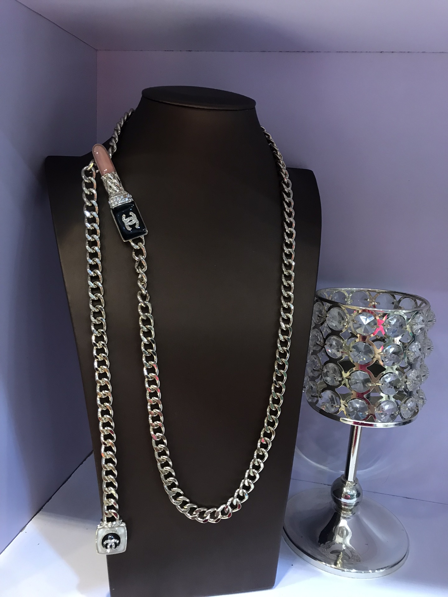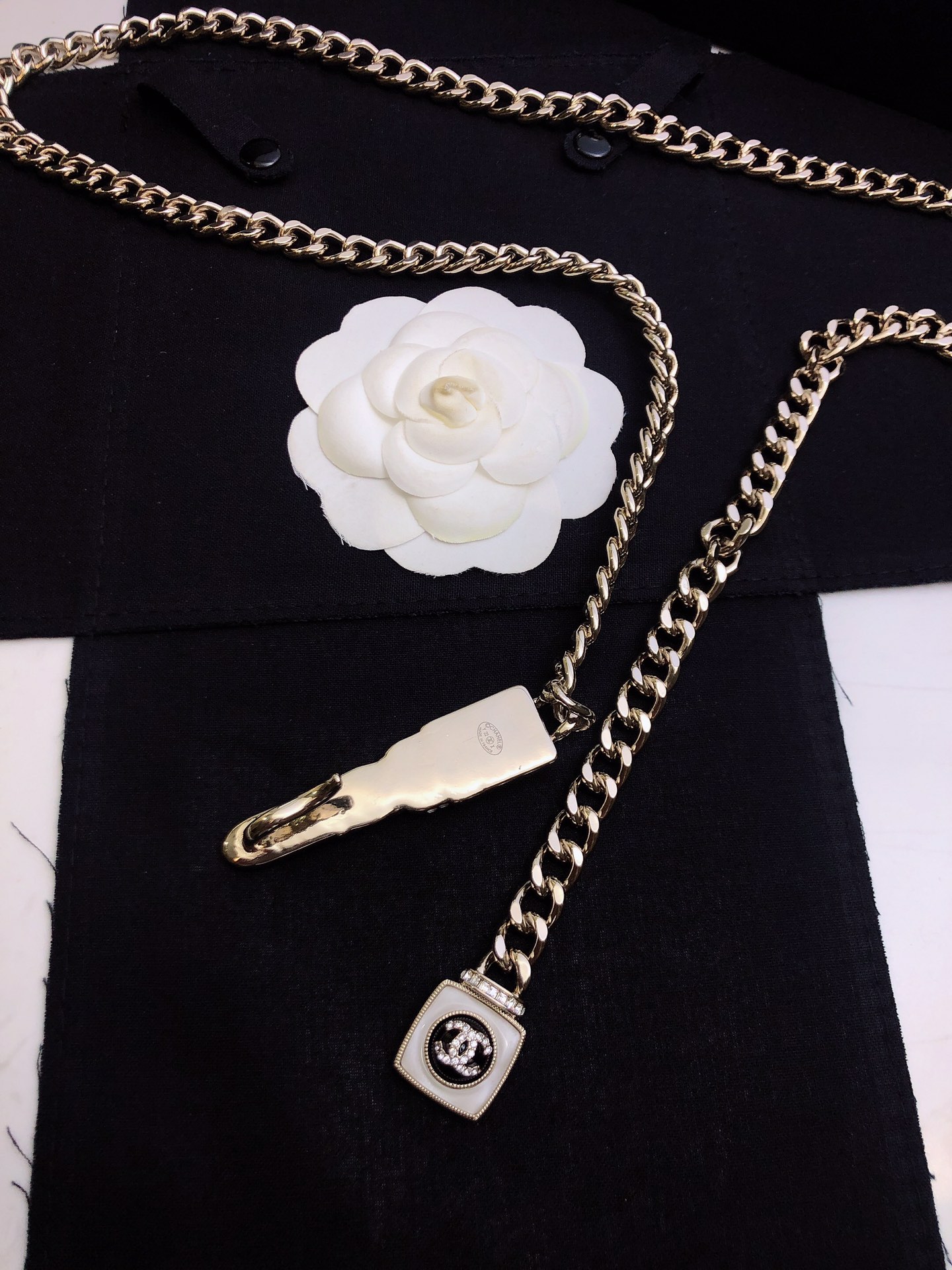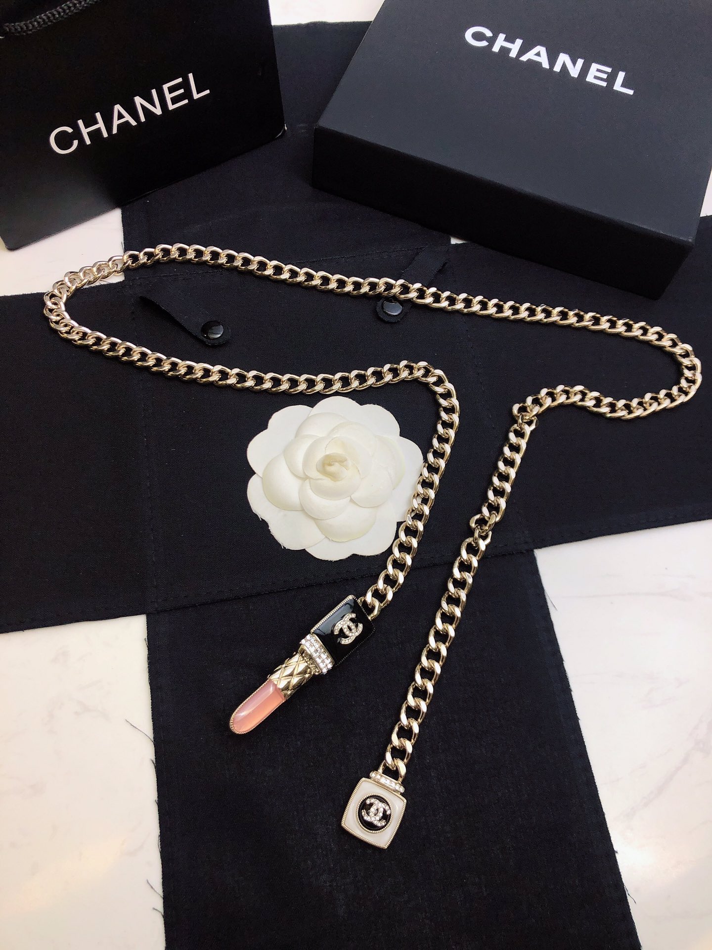 Chanel 新款鏈條腰鏈以金色黃銅材質的鏈條搭配口紅圖案,方塊與口紅有規律的點綴其間。簡約又顯優雅,時尚又顯個性!