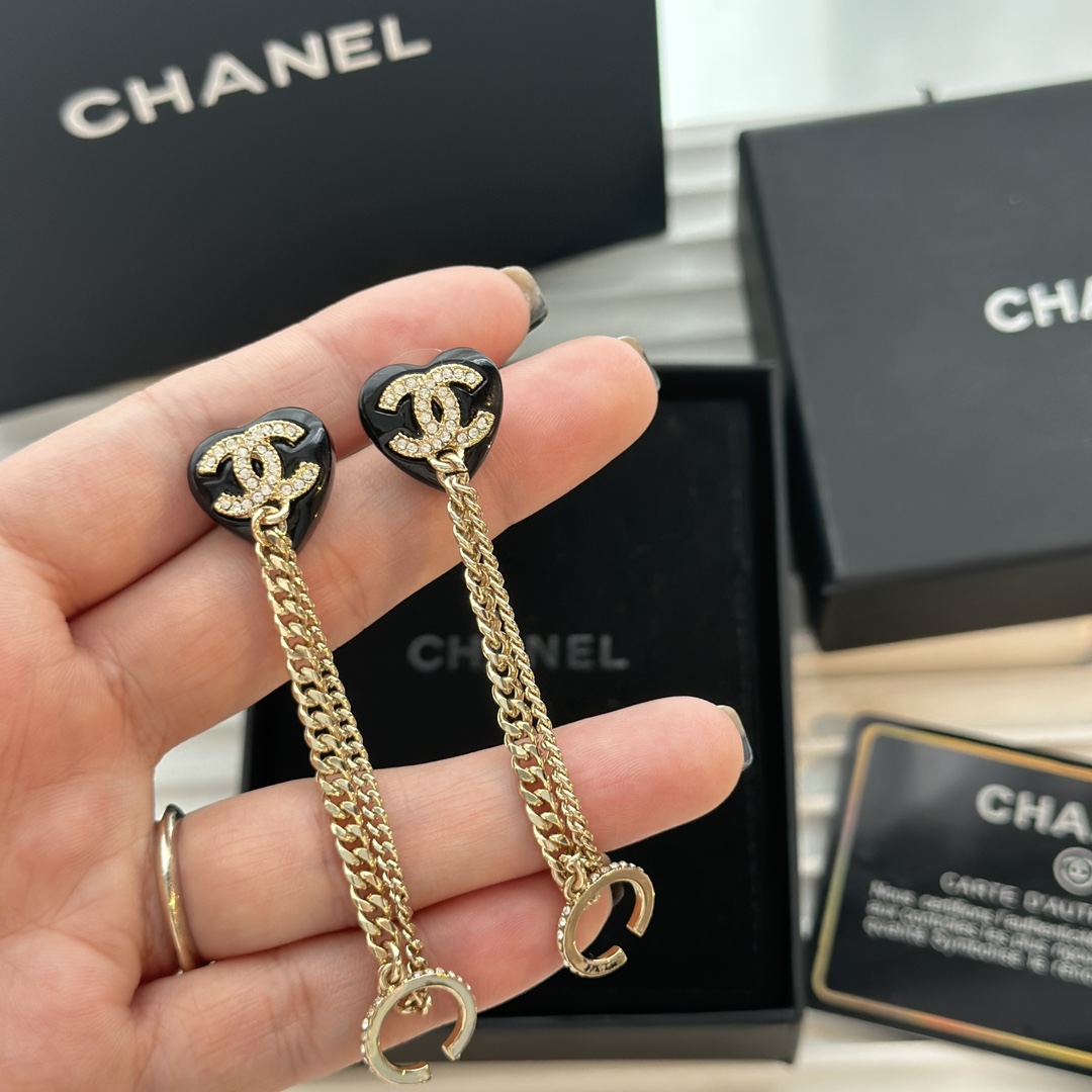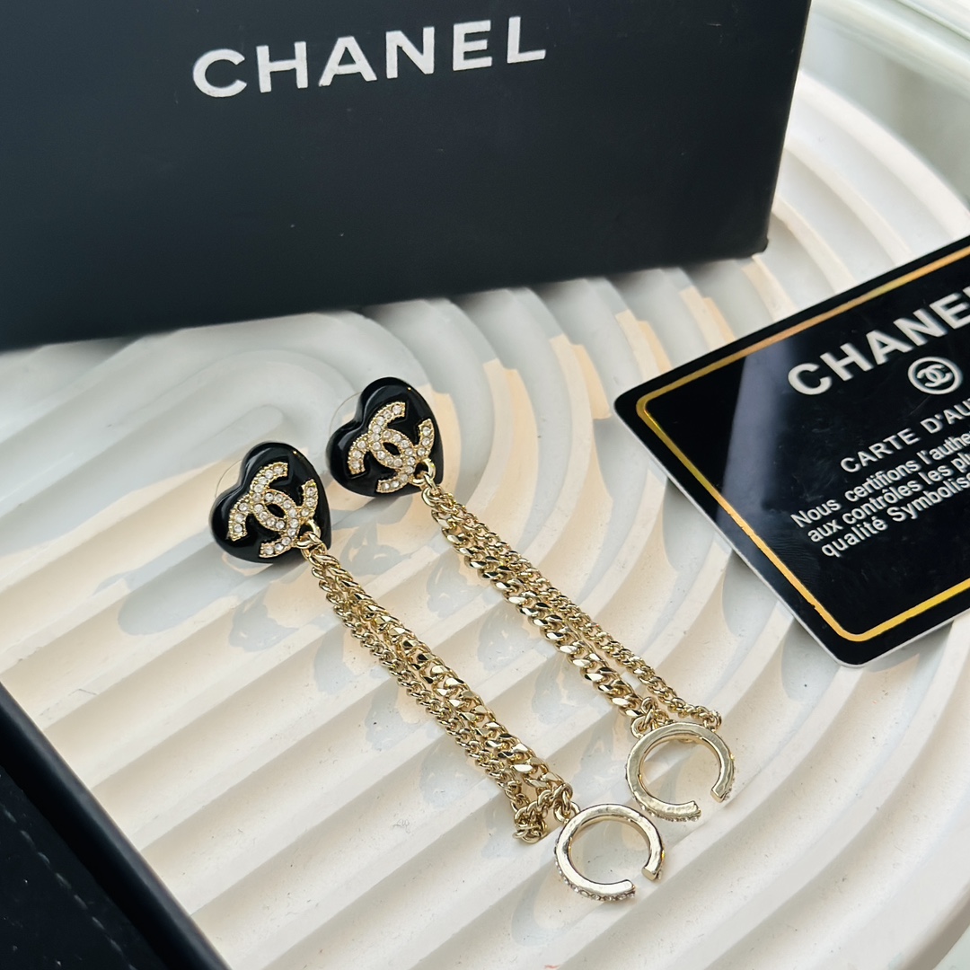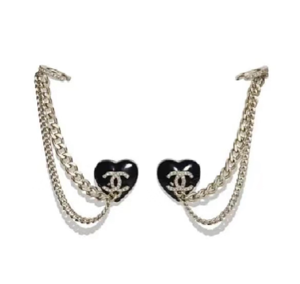 c409 Chanel 小香 新款 23C新品 黑色愛心 耳骨夾 流蘇 耳釘 超美膩 唯美小清新 甜美氣質 必入款 精選原版一致黃銅材質搭配s925純銀針 實物美到 耳骨夾耳環