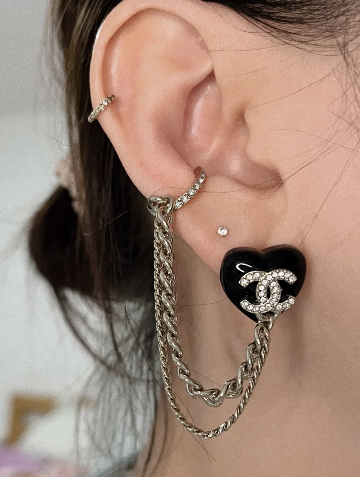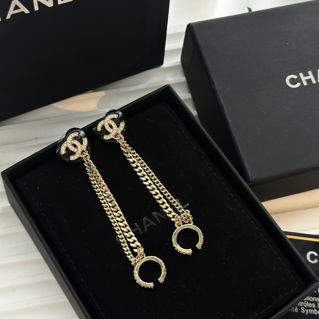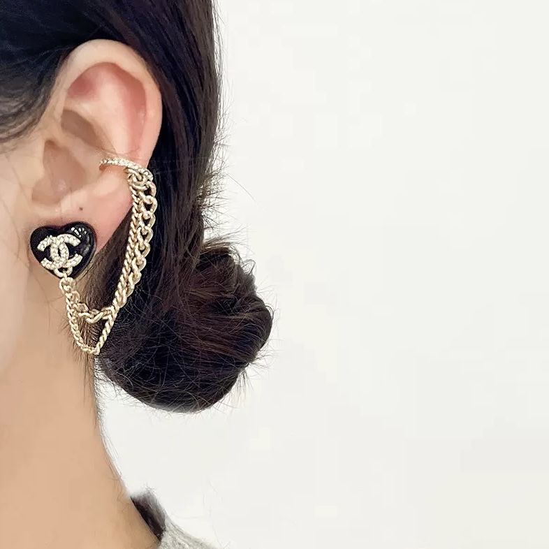 c409 Chanel 小香 新款 23C新品 黑色愛心 耳骨夾 流蘇 耳釘 超美膩 唯美小清新 甜美氣質 必入款 精選原版一致黃銅材質搭配s925純銀針 實物美到 耳骨夾耳環