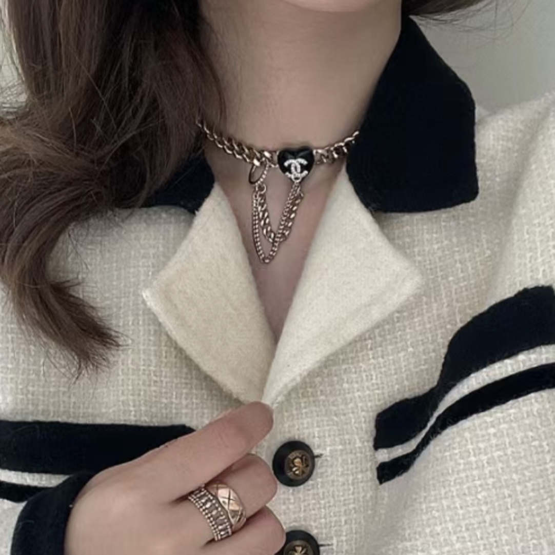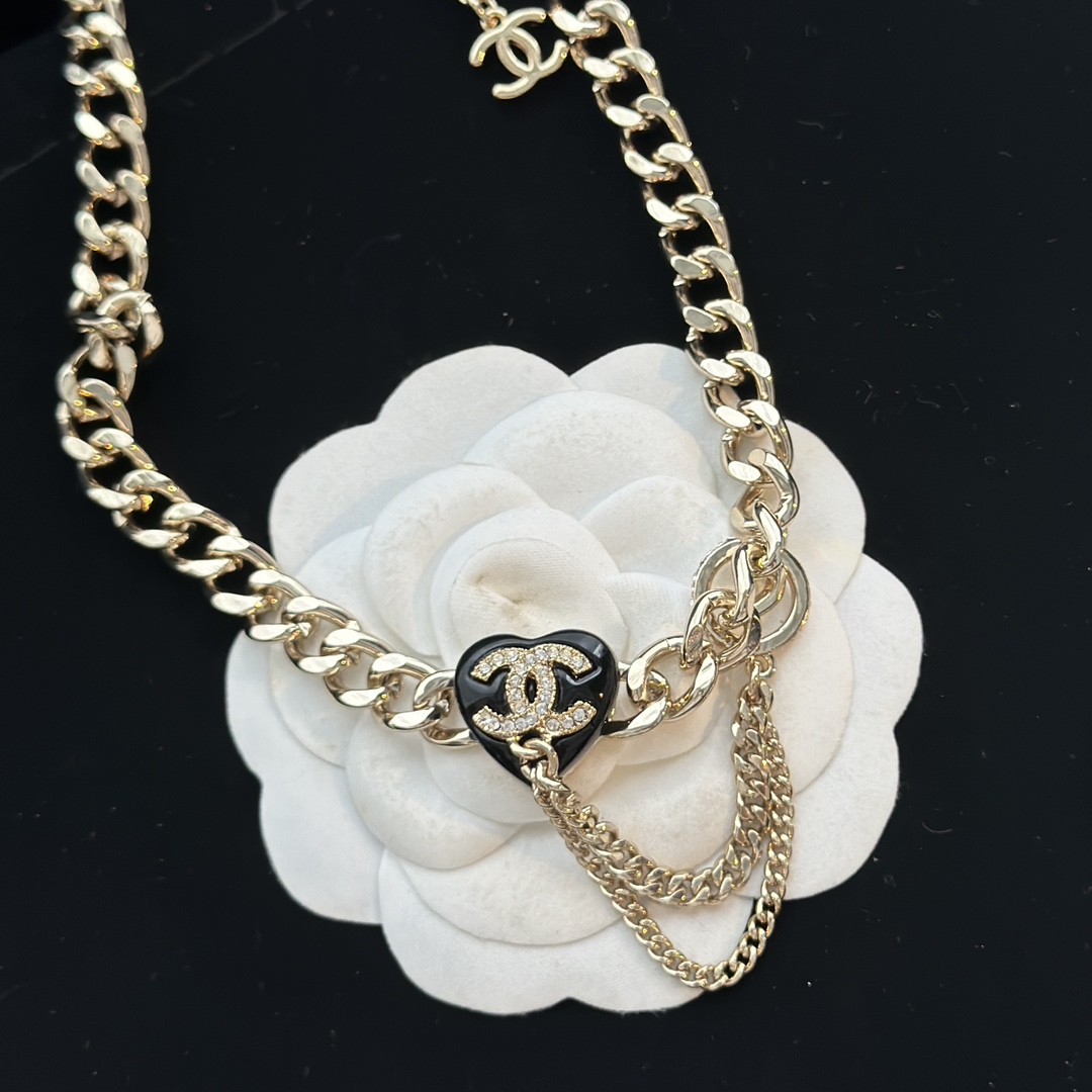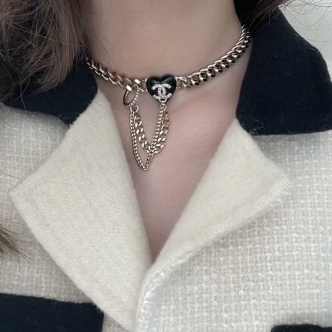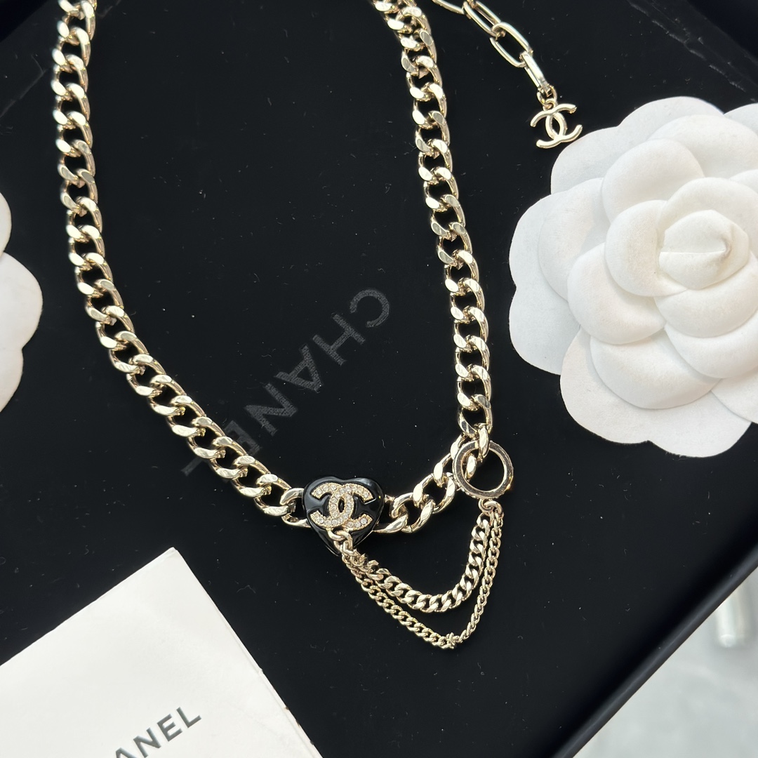 c410 Chanel 小香 新款 23C新品 黑色愛心 流蘇 項鏈 超美膩 唯美小清新 甜美氣質 必入款 精選原版一致黃銅材質 實物美到 項鏈