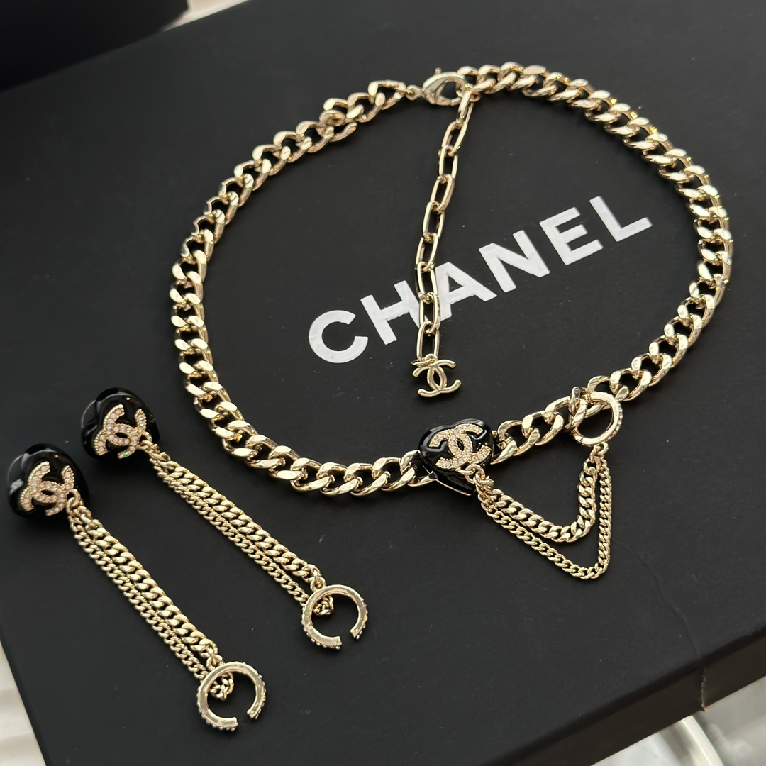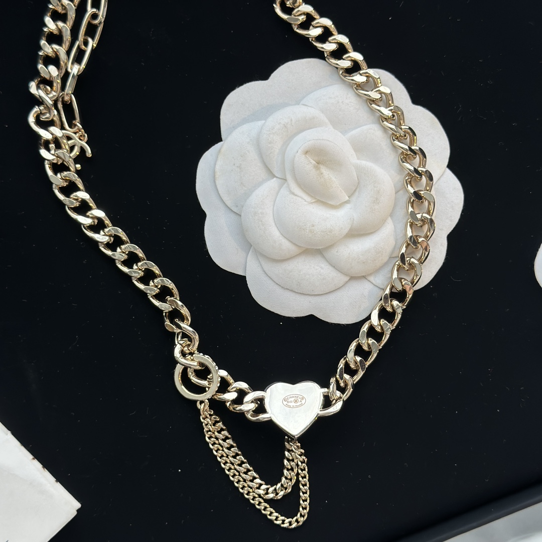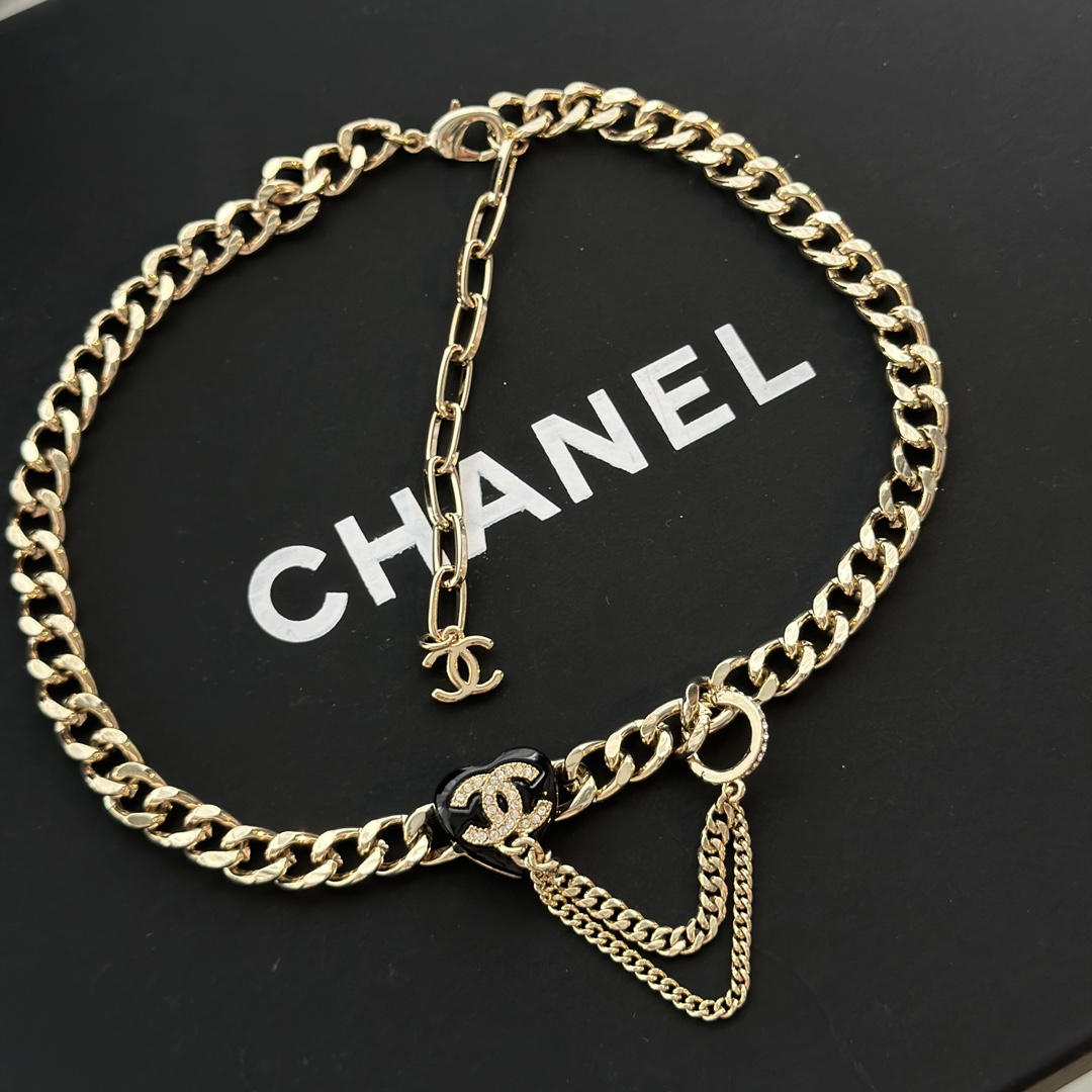 c410 Chanel 小香 新款 23C新品 黑色愛心 流蘇 項鏈 超美膩 唯美小清新 甜美氣質 必入款 精選原版一致黃銅材質 實物美到 項鏈