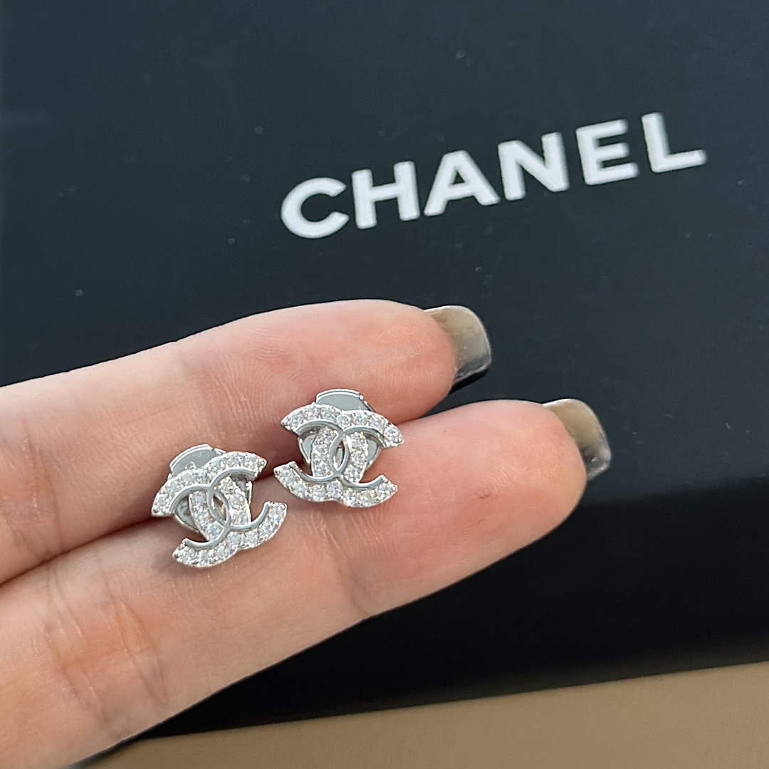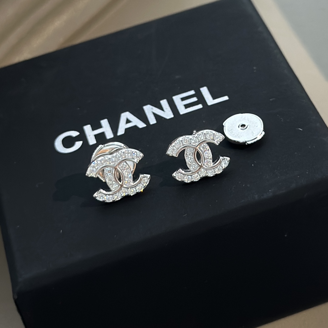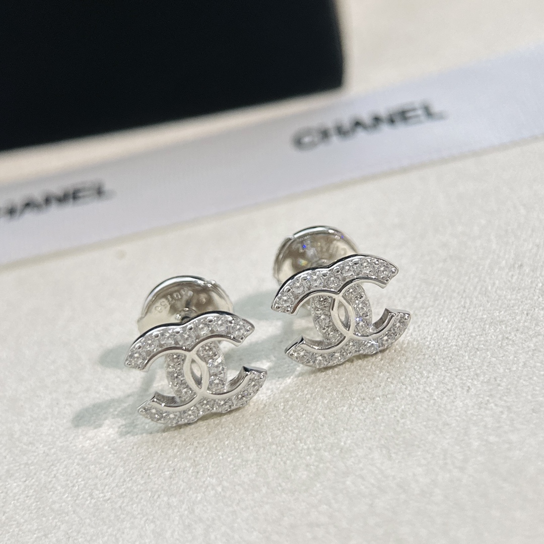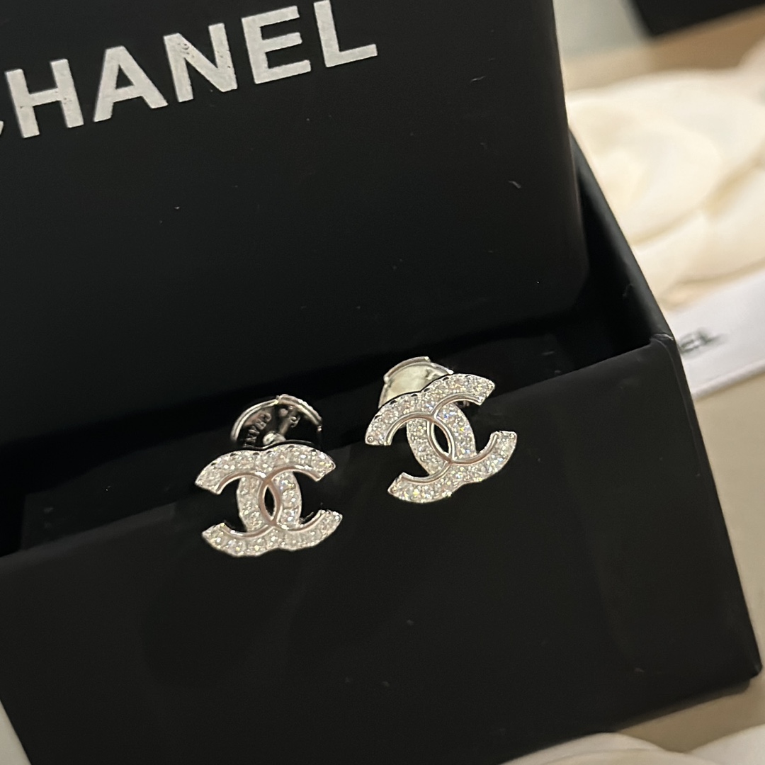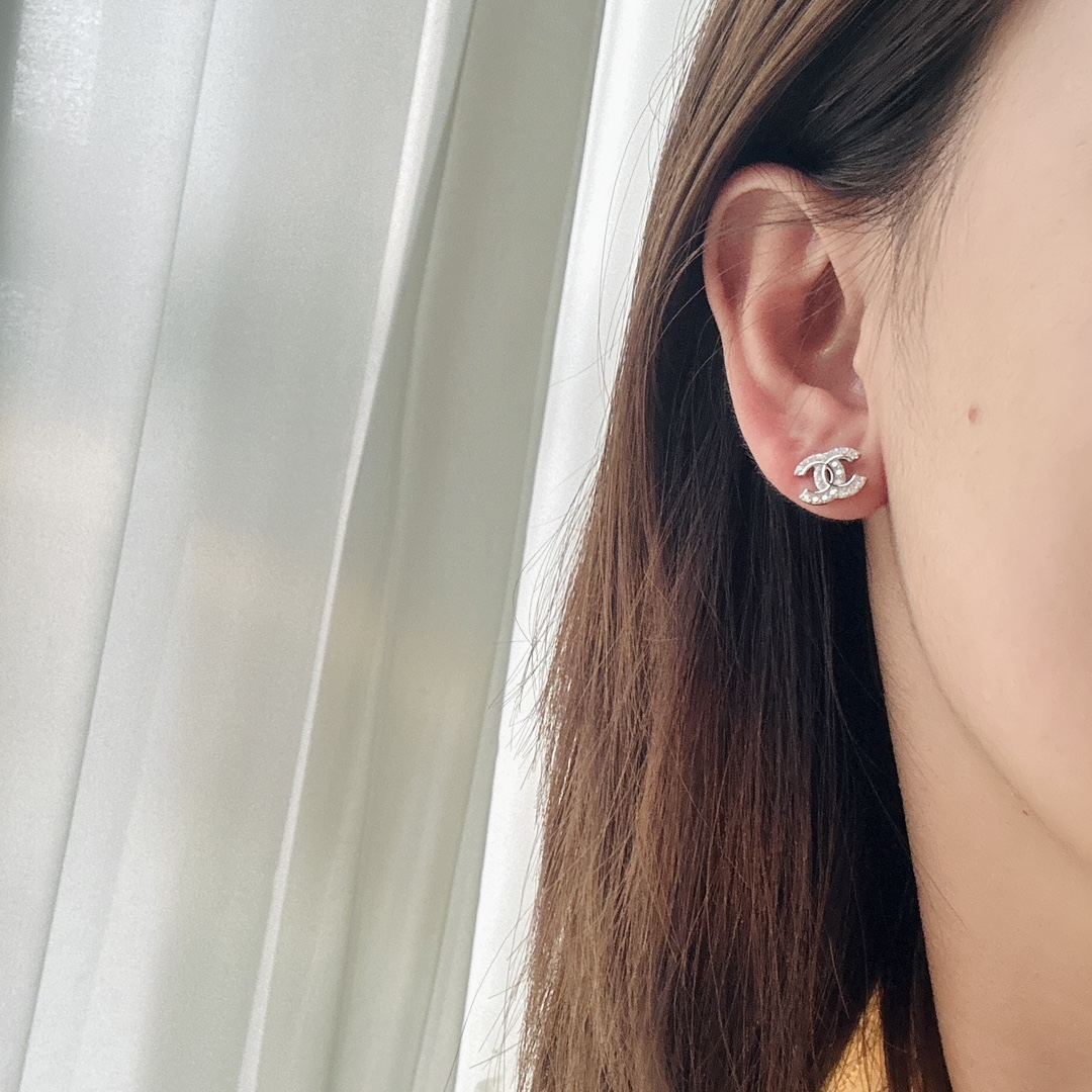 Chanel 小香 23c早春新款 雙C 半鑽 小耳釘