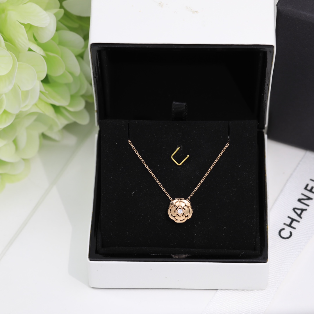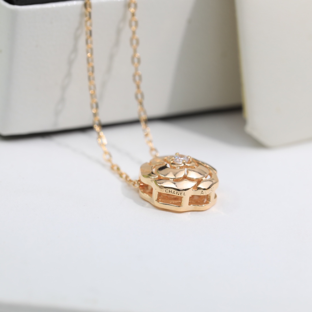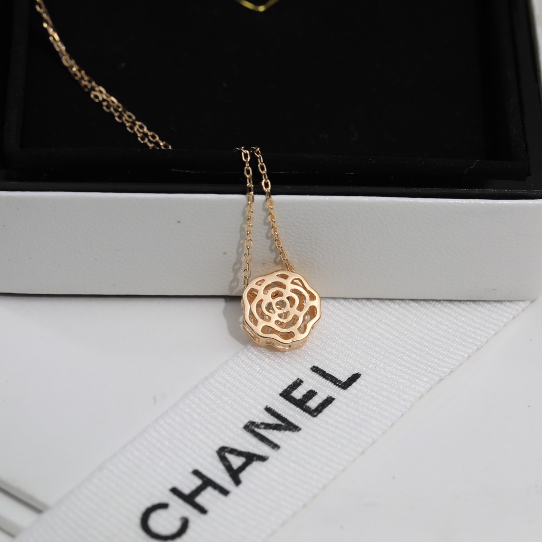 香奈兒 CHANEL鏤空茶花項鏈 光金版 S925純銀材質 高版本 電鍍18k香檳金 原版logo 鏈長45cm可調節