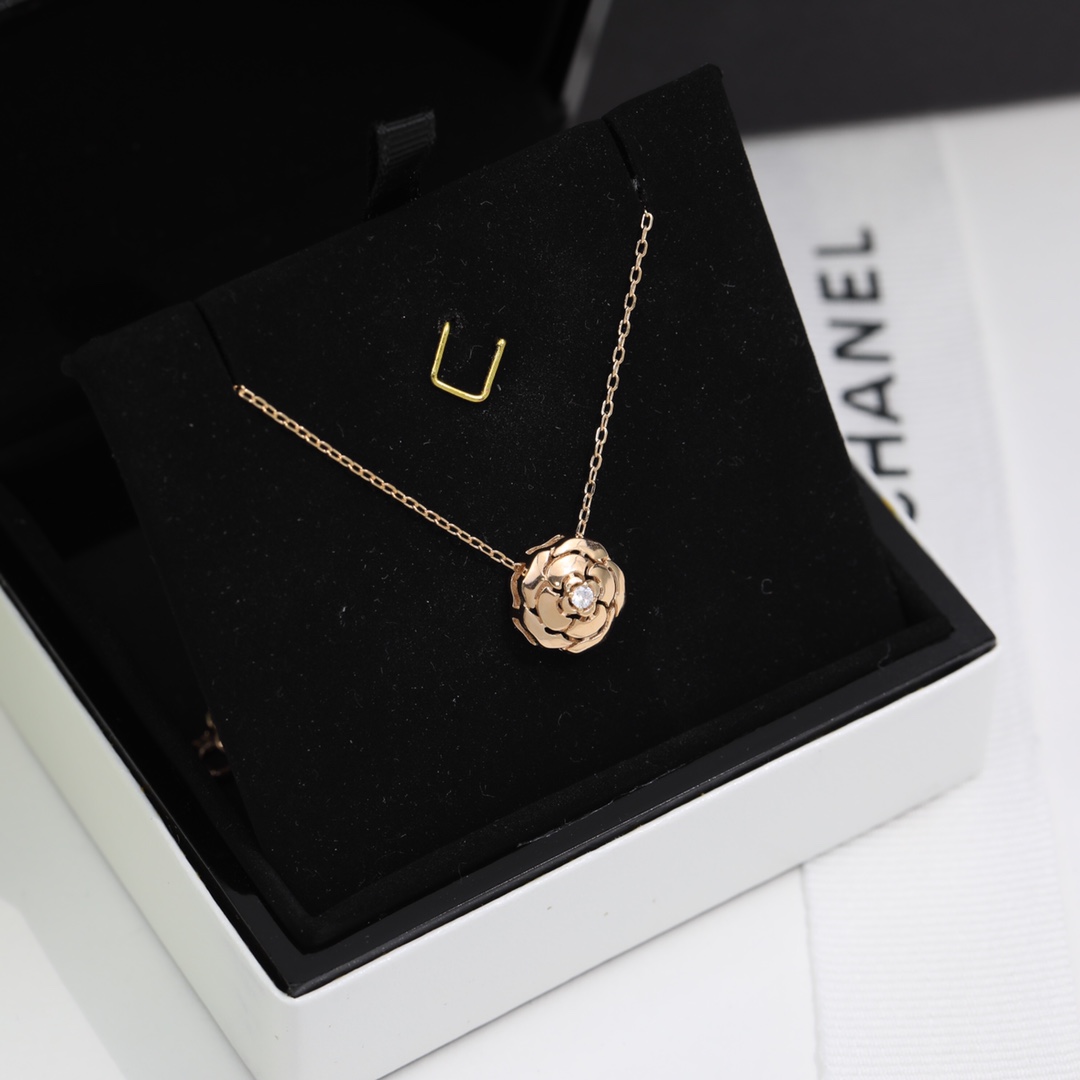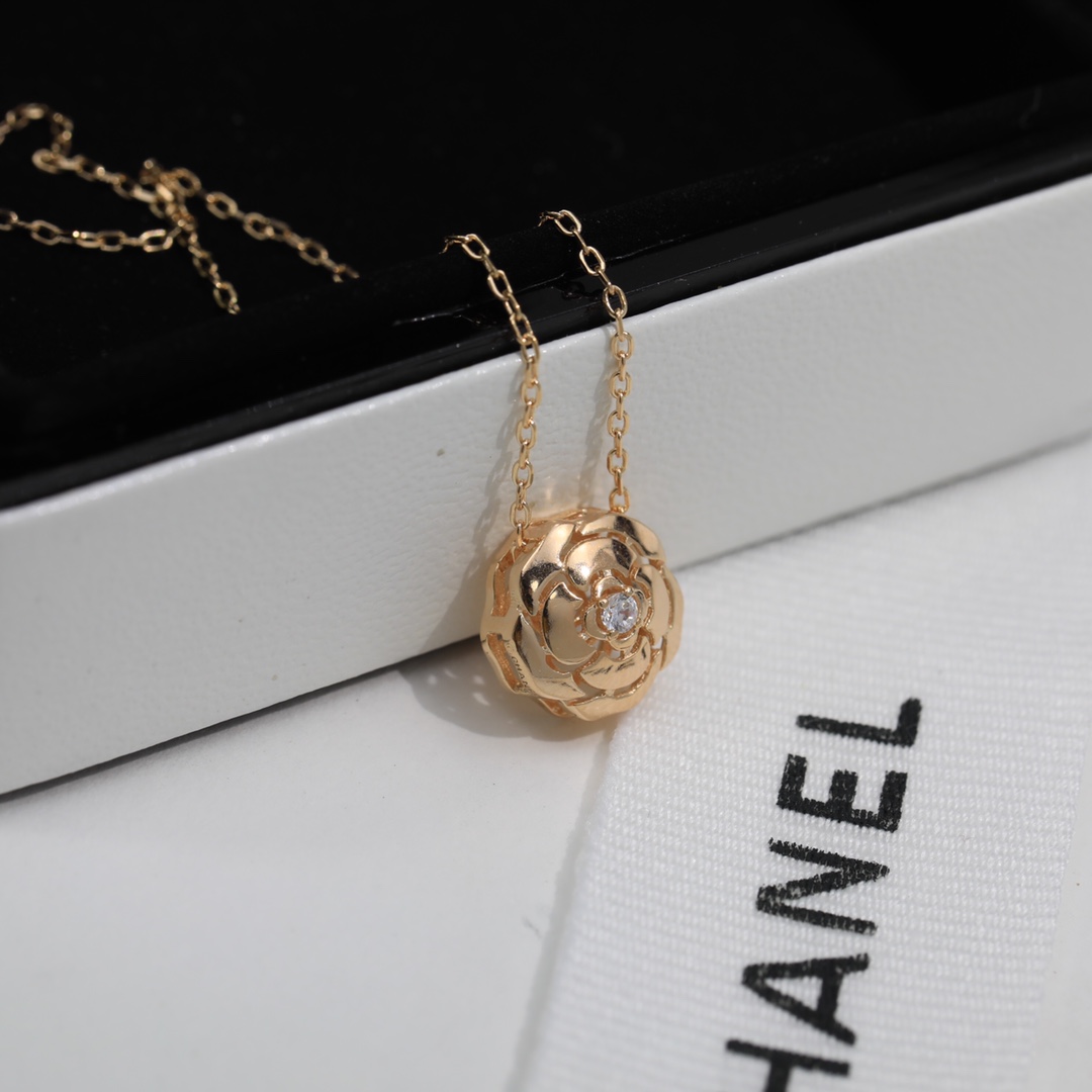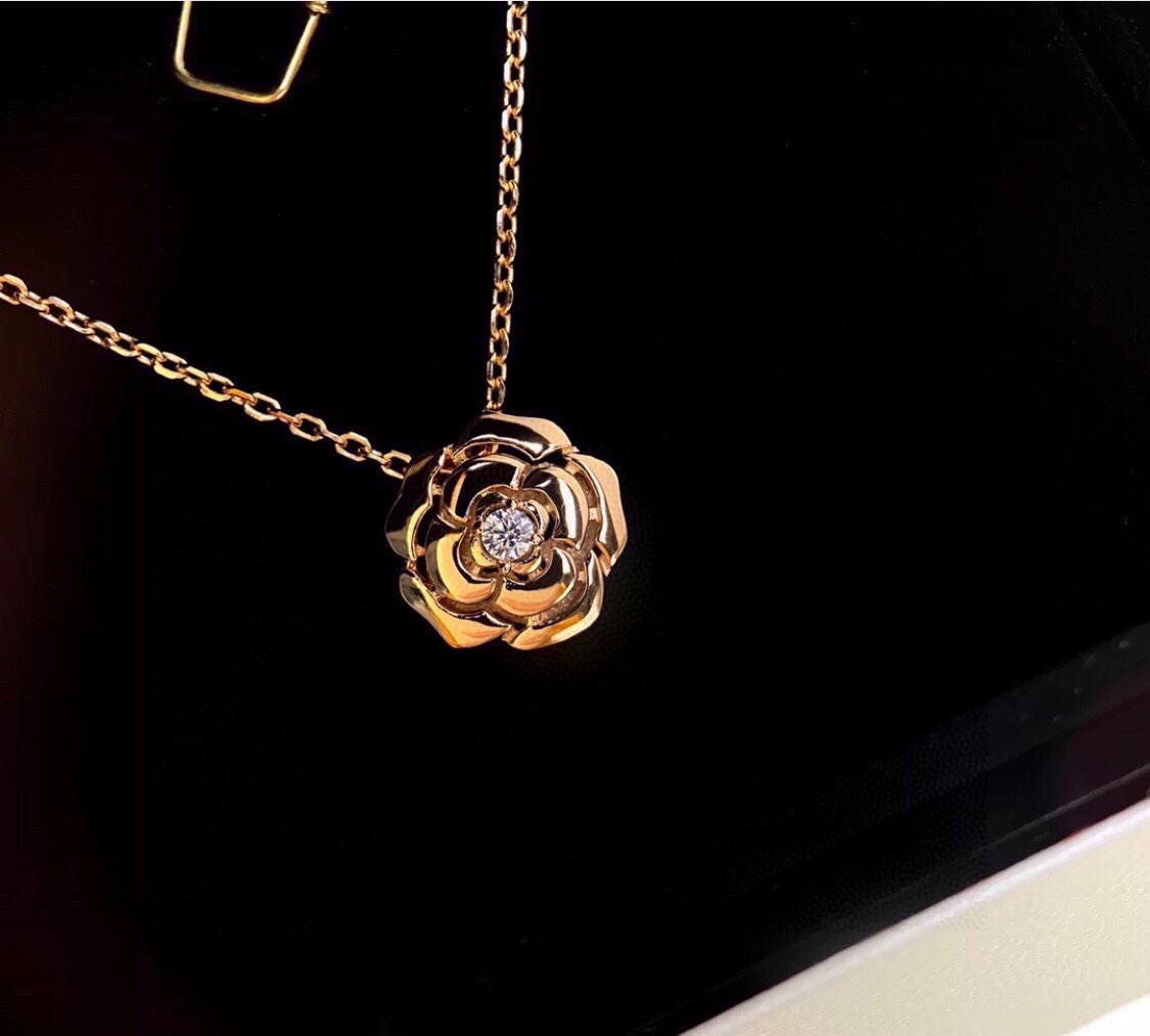 香奈兒 CHANEL鏤空茶花項鏈 光金版 S925純銀材質 高版本 電鍍18k香檳金 原版logo 鏈長45cm可調節